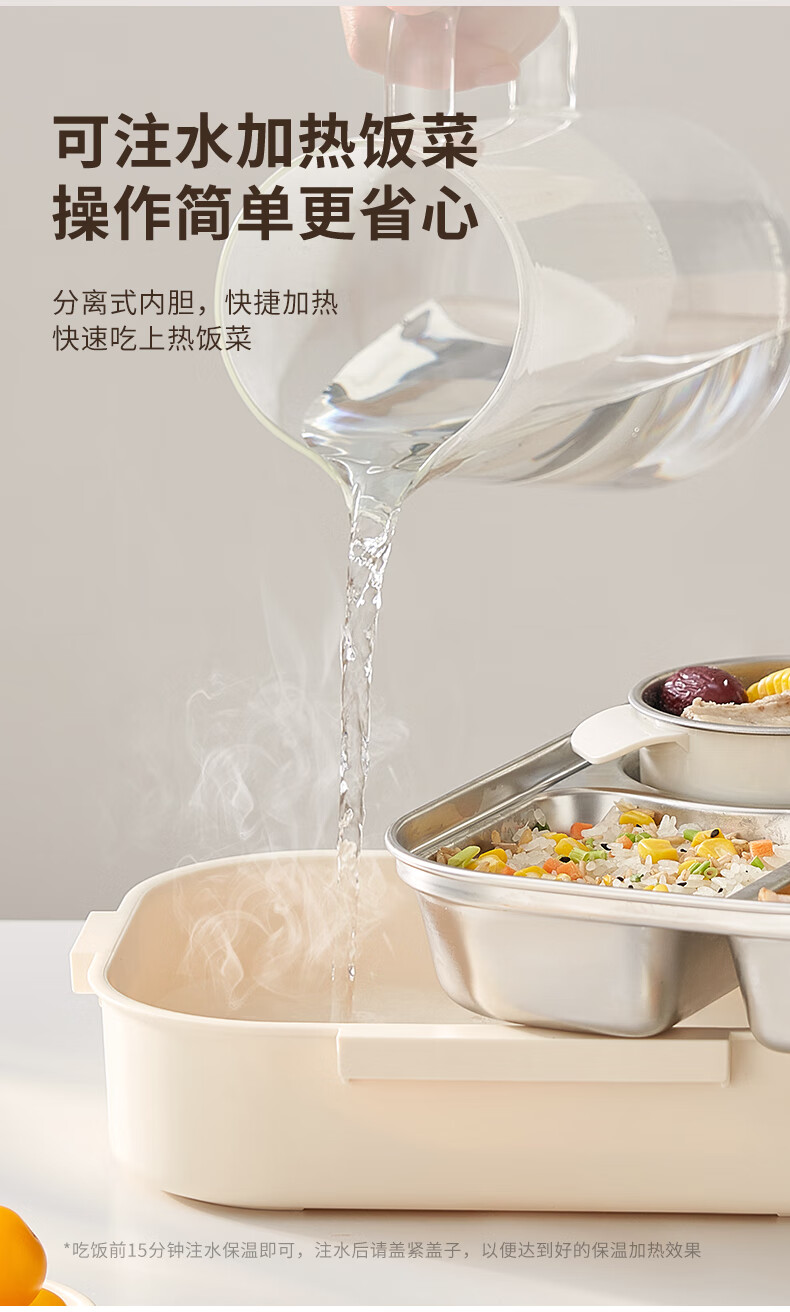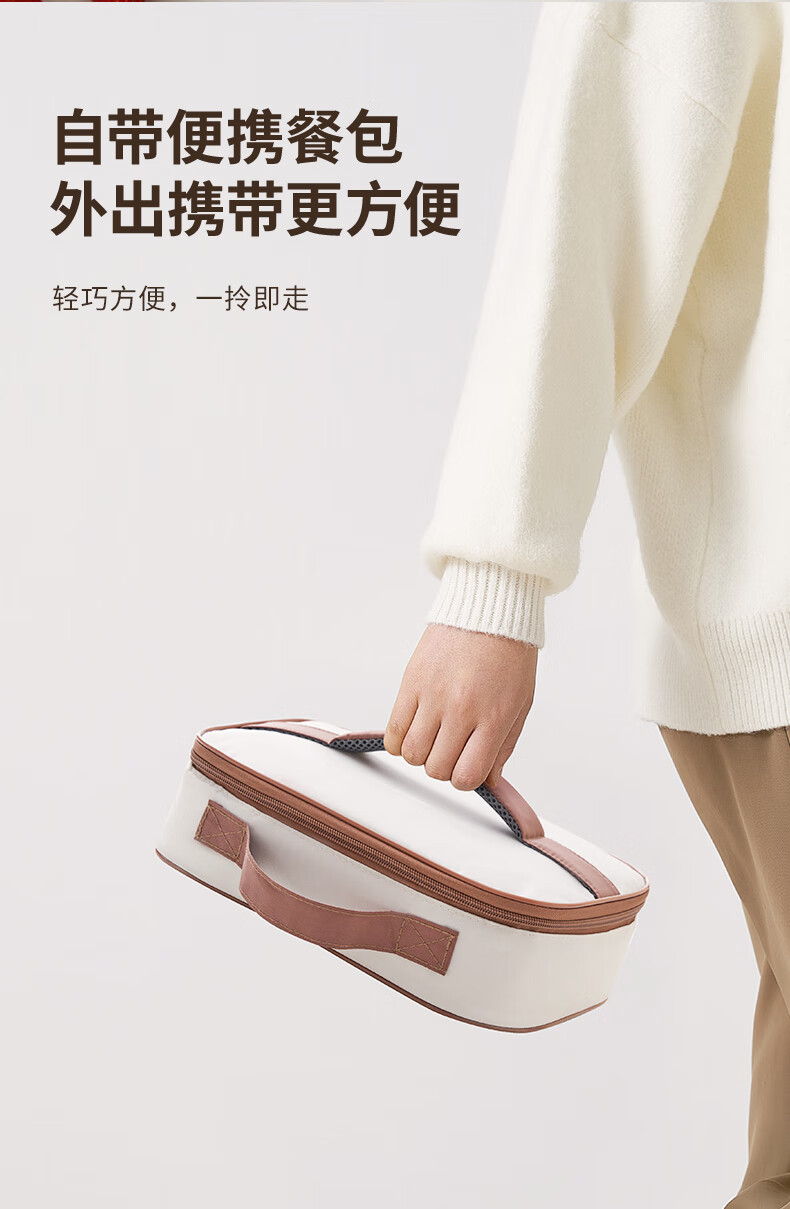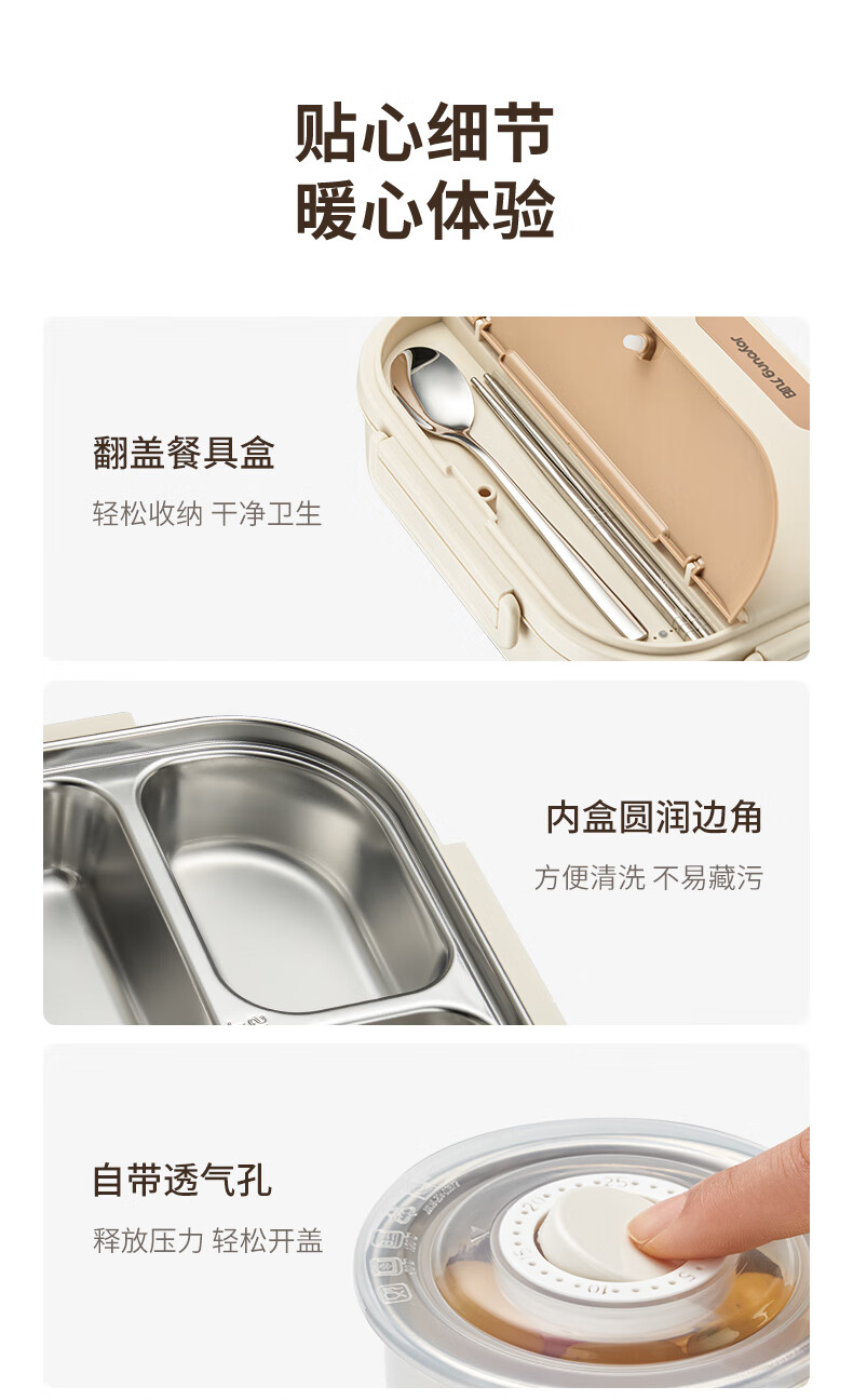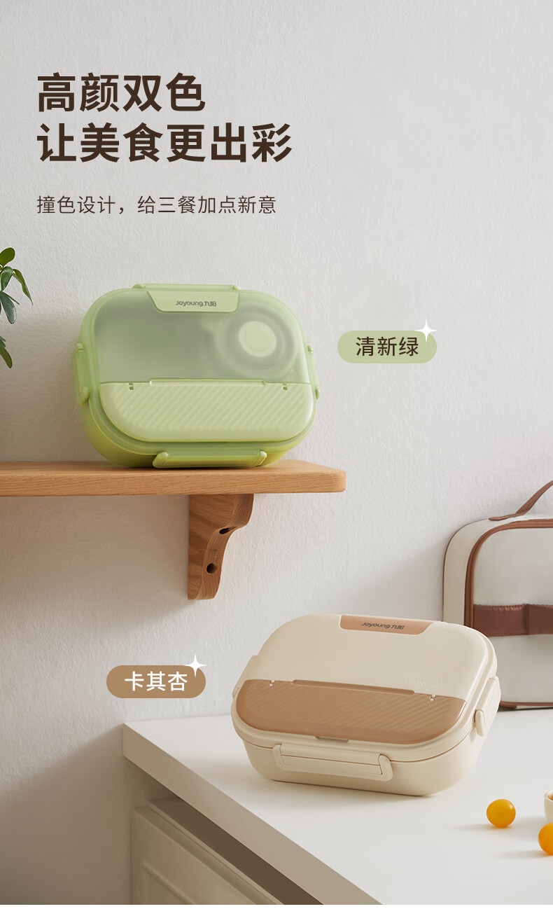 Joyoung 316L lunch box for students and office workers with chopsticks and spoons large capacity four-compartment lunch box 1500ML white