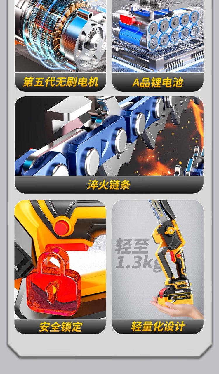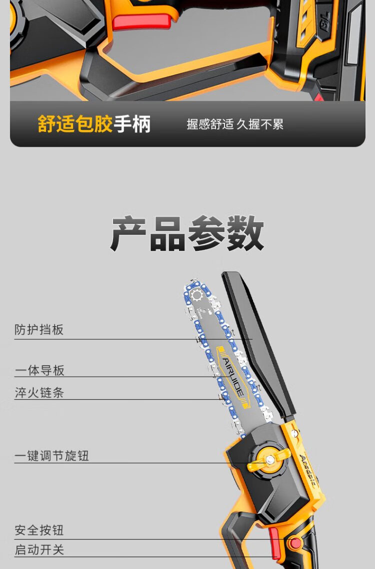Aided brushless rechargeable chainsaw household logging saw lithium battery electric chain saw handheld small saw cutting machine power tool