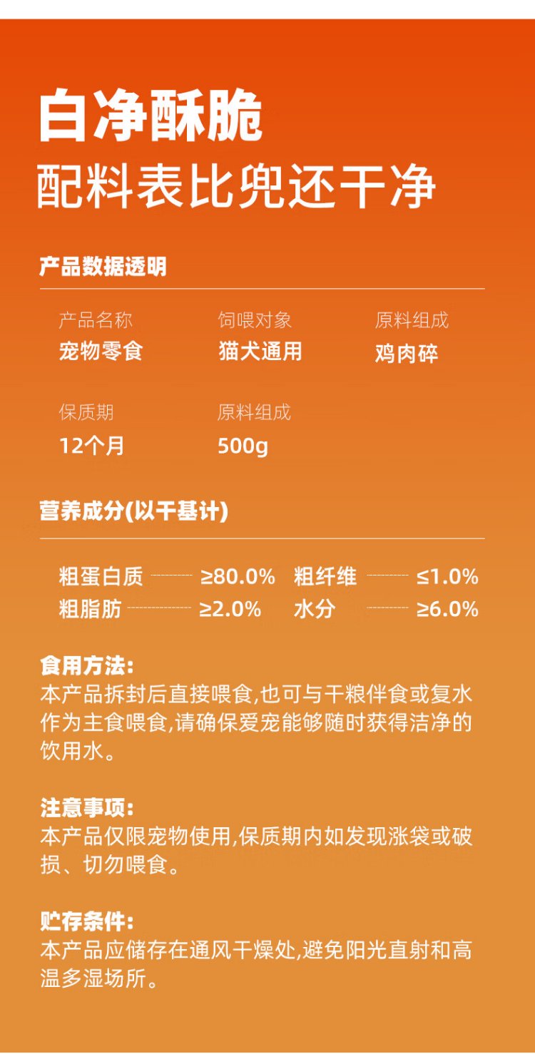 Bein freeze-dried chicken pieces 500g cat snacks chicken cubes freeze-dried chicken pet cat snacks