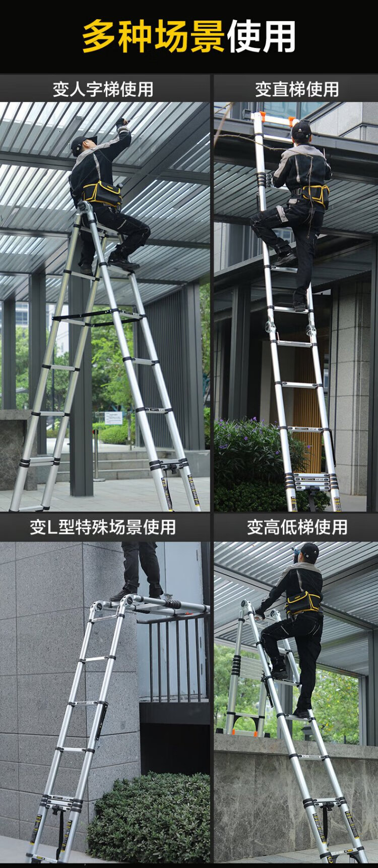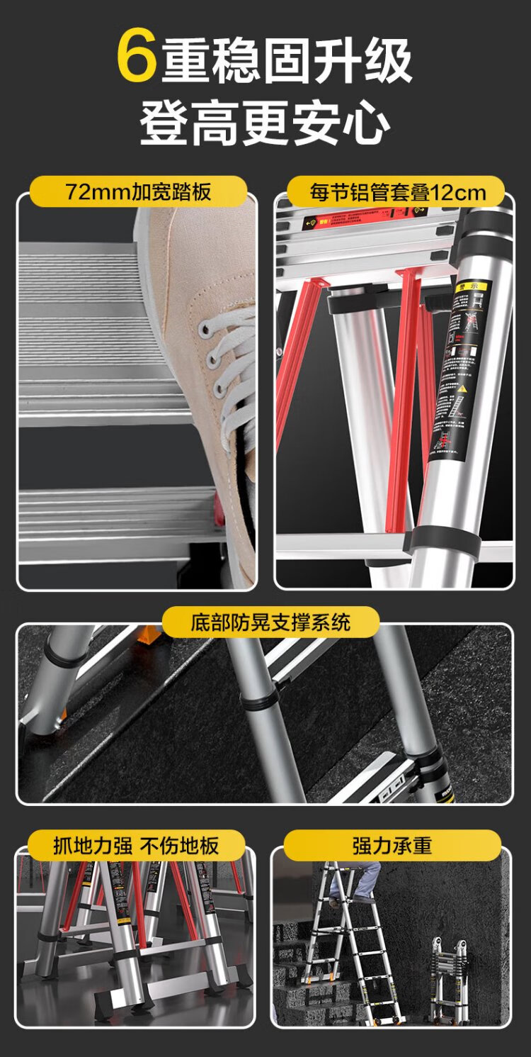 Gulihuang Herringbone Ladder Telescopic Ladder Thickened Multifunctional Aluminum Alloy Engineering Folding Staircase Industrial Grade Ladder Straight Ladder 2.3 Meters