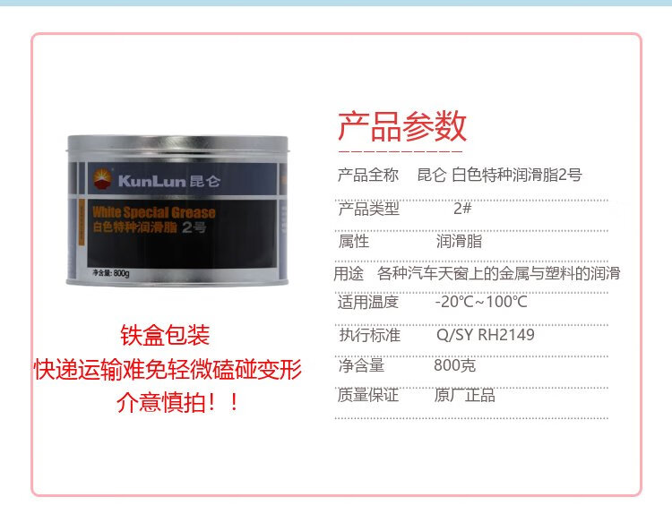 KunLun White Special Grease No. 2 Engineering Machinery Bearing Lubricant Car Skylight Door Hinge Guide Oil White Oil Snow Oil 800g