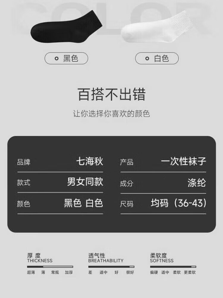 Qihaiqiu disposable socks, no-wash daily disposable mid-calf socks, breathable sweat-absorbent business travel unisex military training socks 10 pairs
