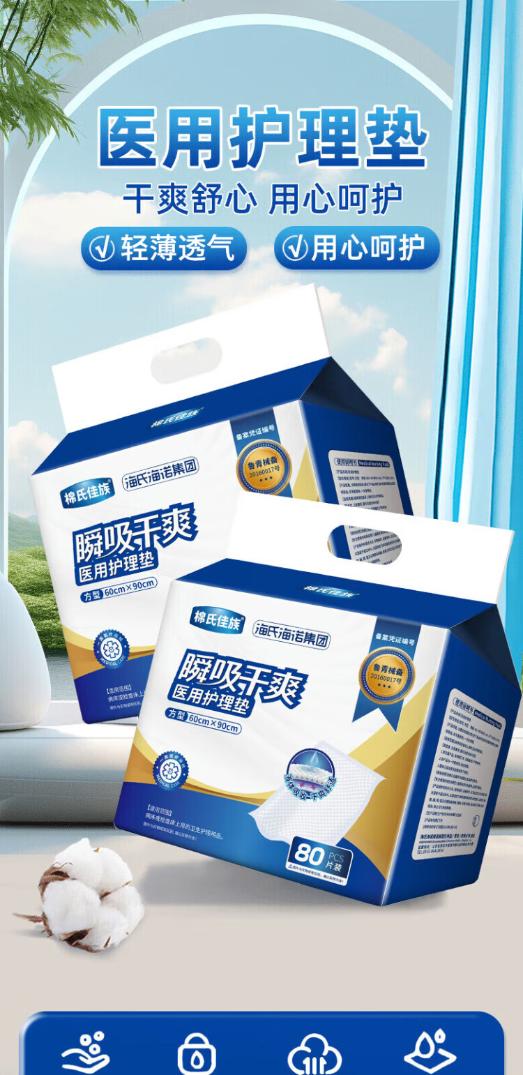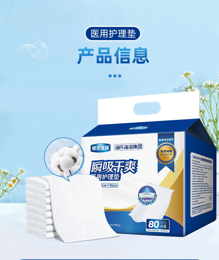 Haishi Hainuo Medical Equipment Size Nursing Pad 60*90cm Elderly Infant Disposable Diaper Pad Maternal Maternity Mat 80 Pieces