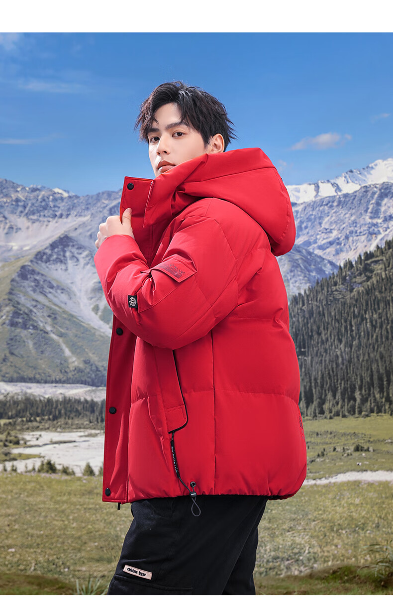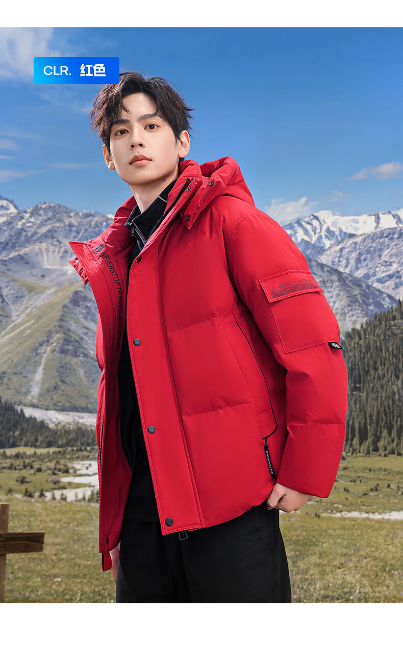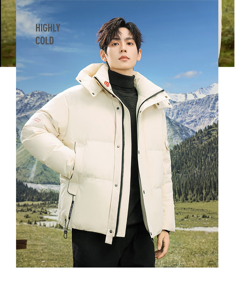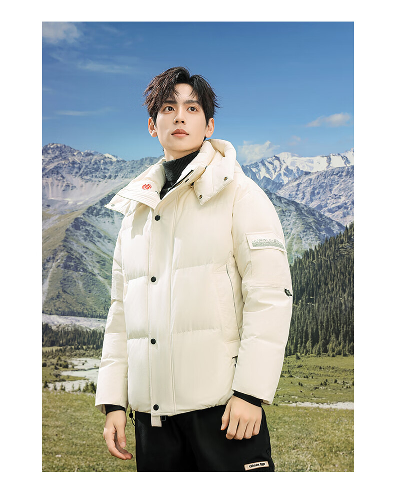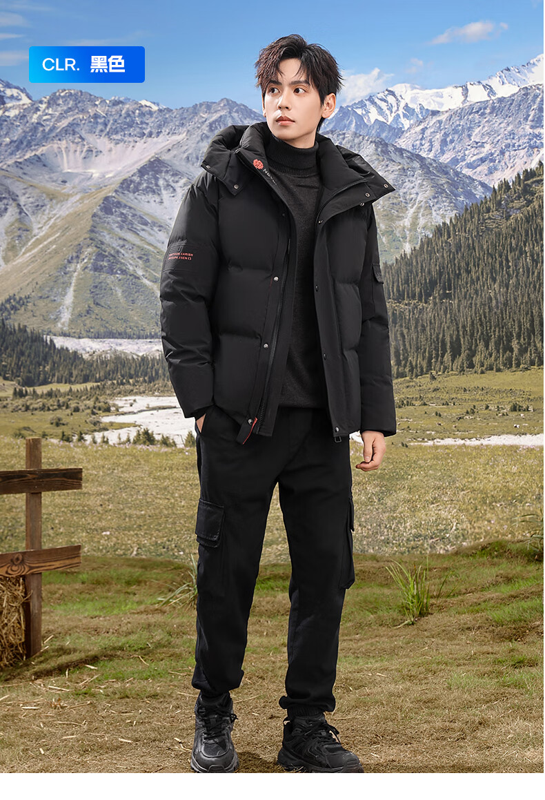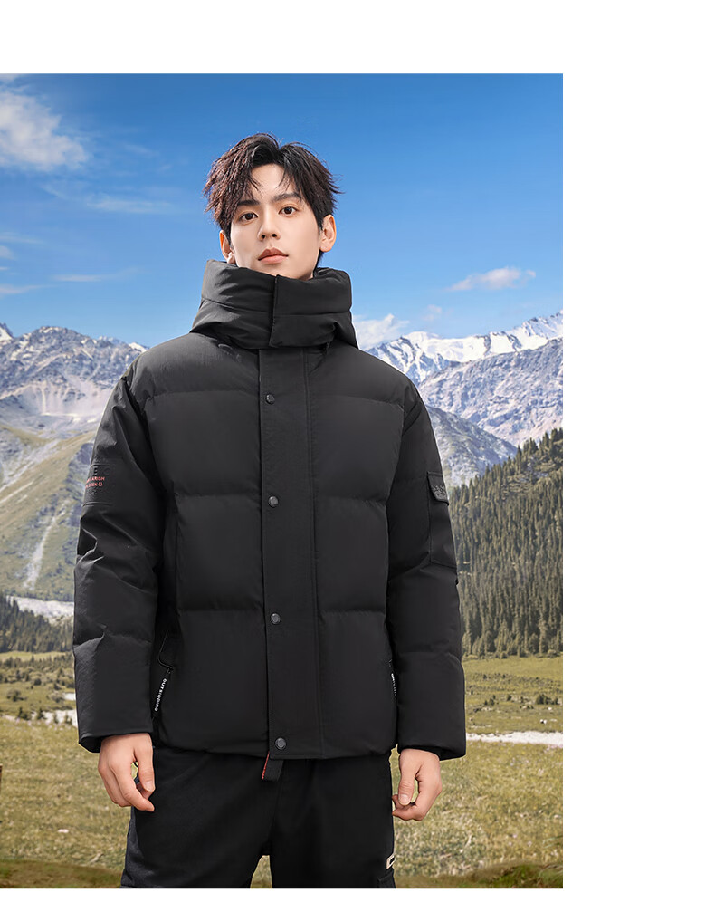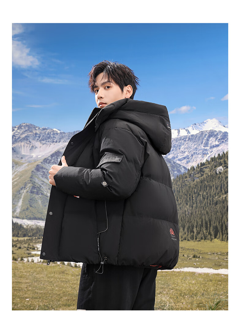 Flying in the Snow 90 Down Jacket Men's Removable Hat Thickened Fashion Casual Autumn and Winter Warm and Coldproof Jacket Men's Black 180