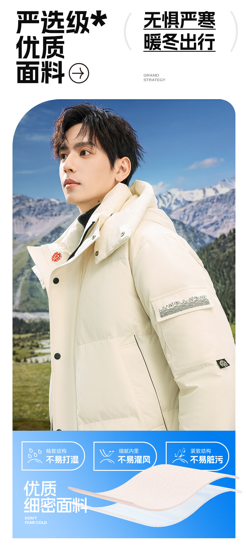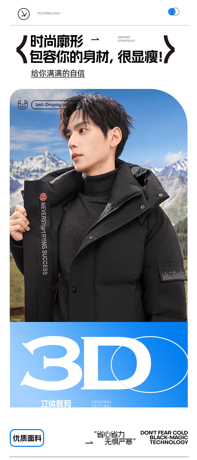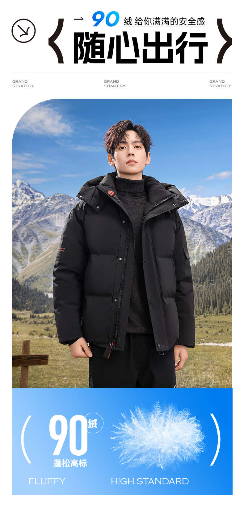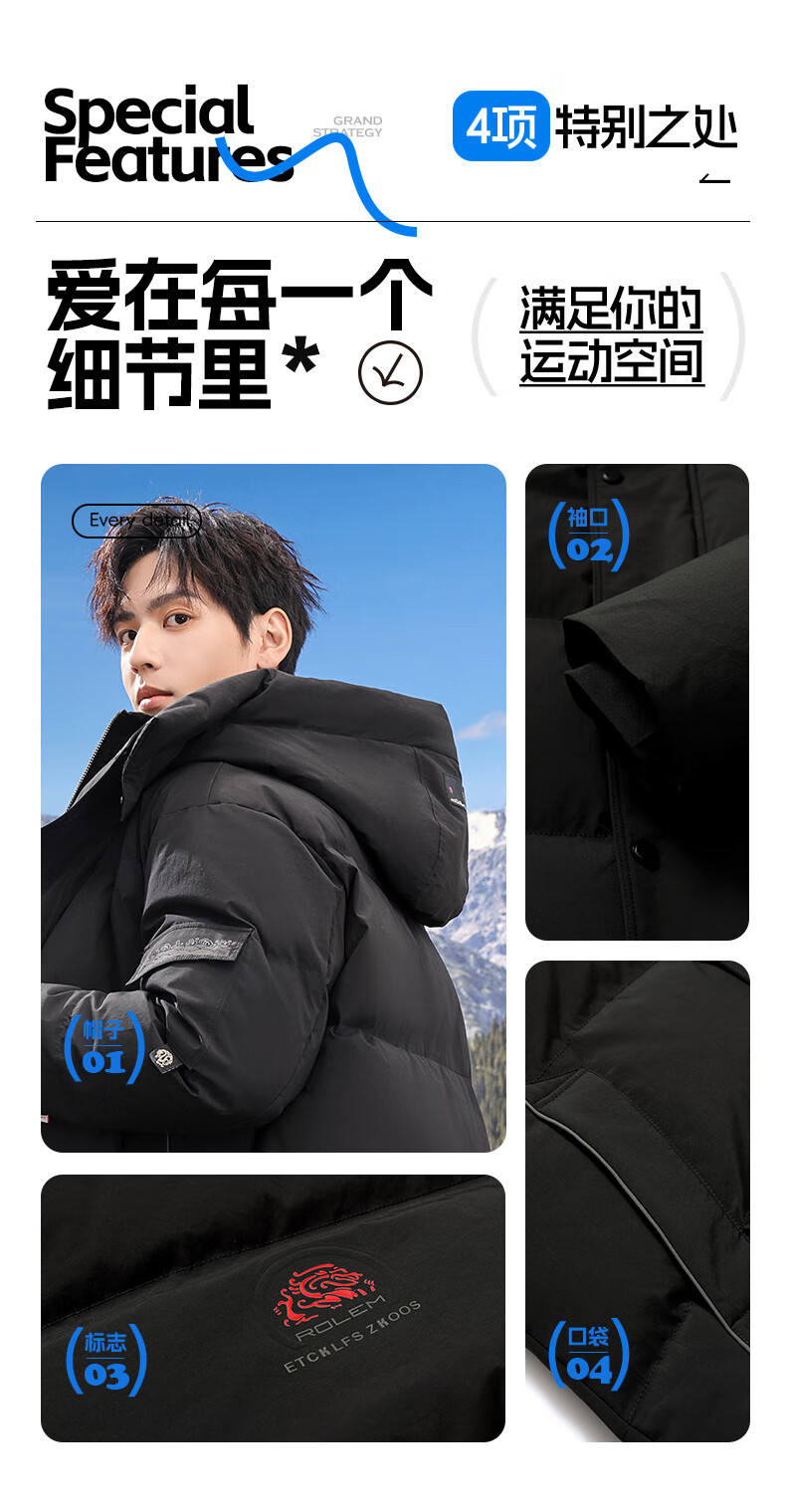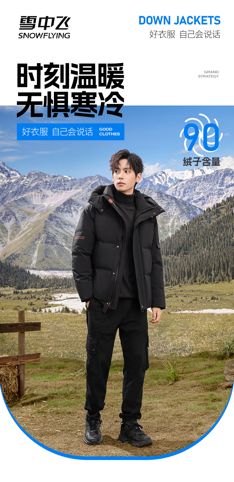 Flying in the Snow 90 Down Jacket Men's Removable Hat Thickened Fashion Casual Autumn and Winter Warm and Coldproof Jacket Men's Black 180