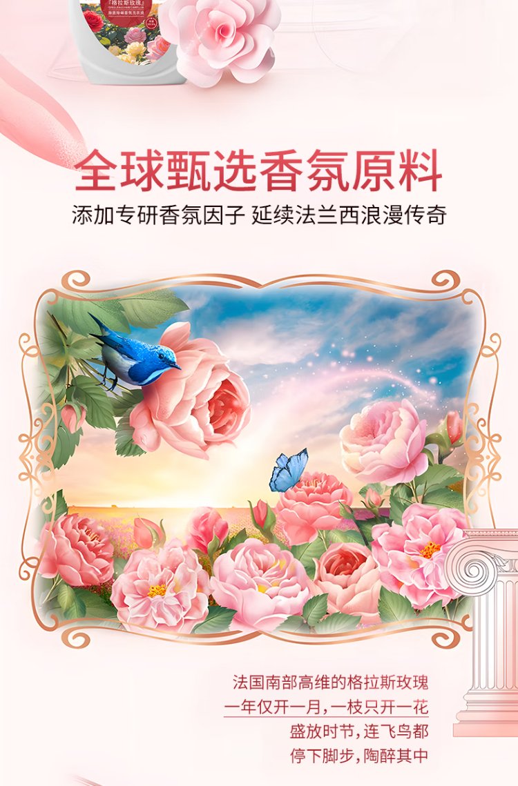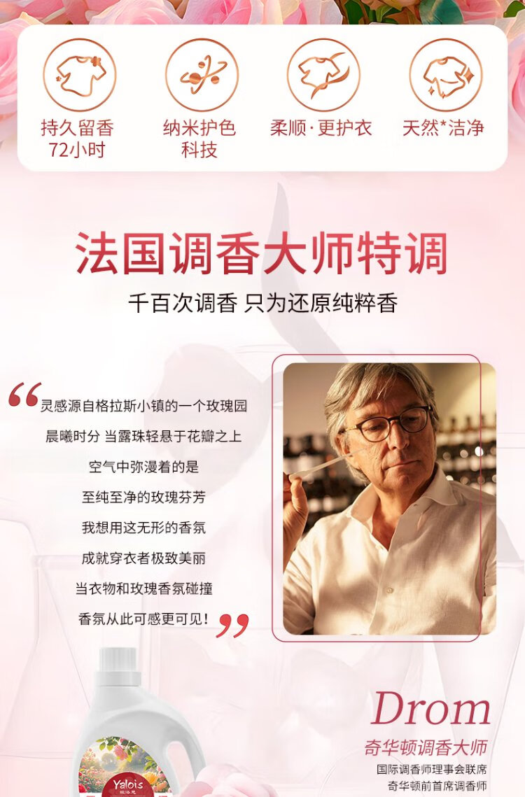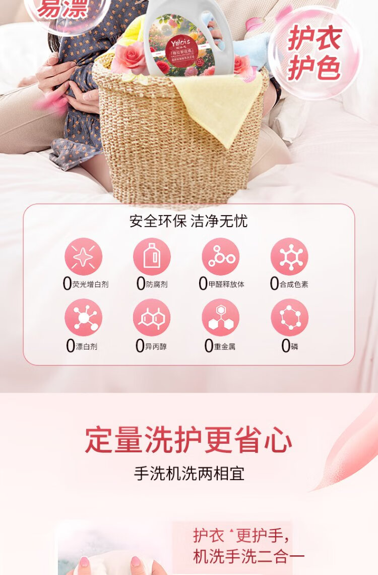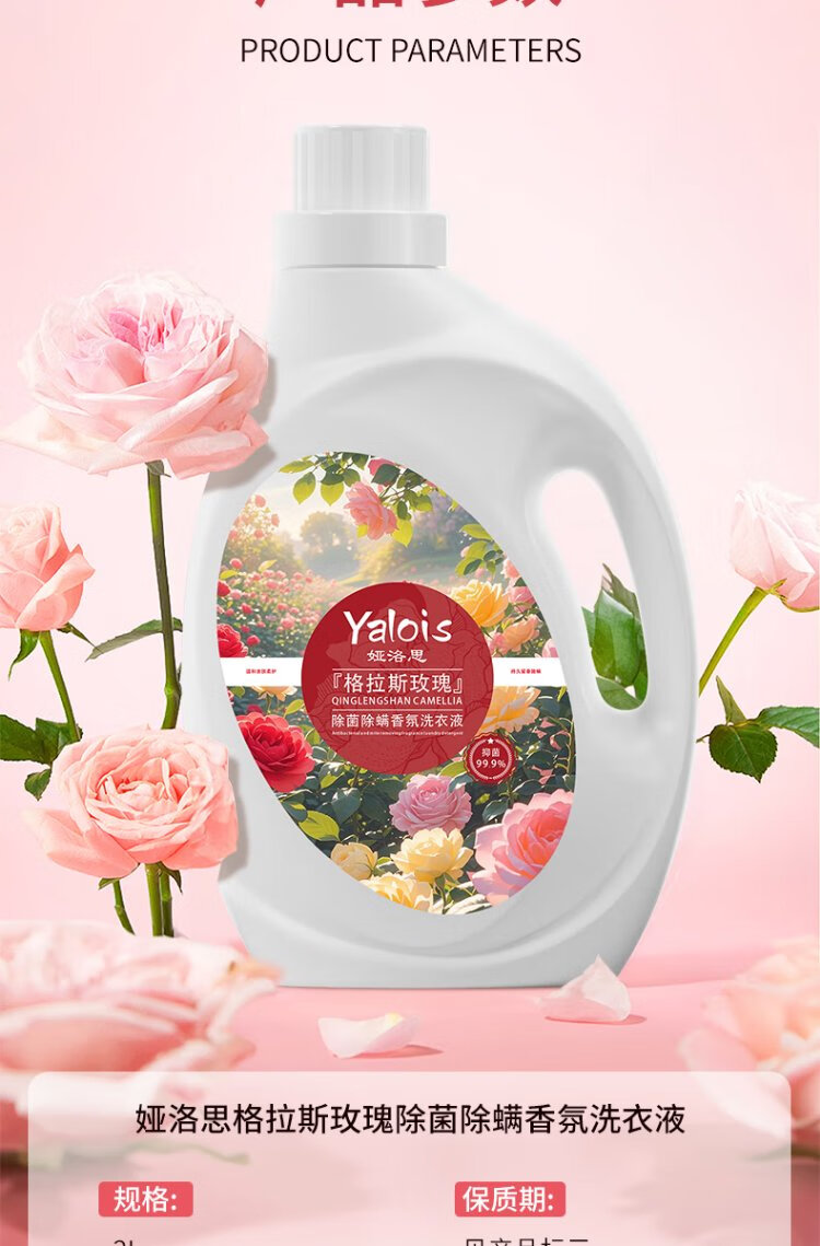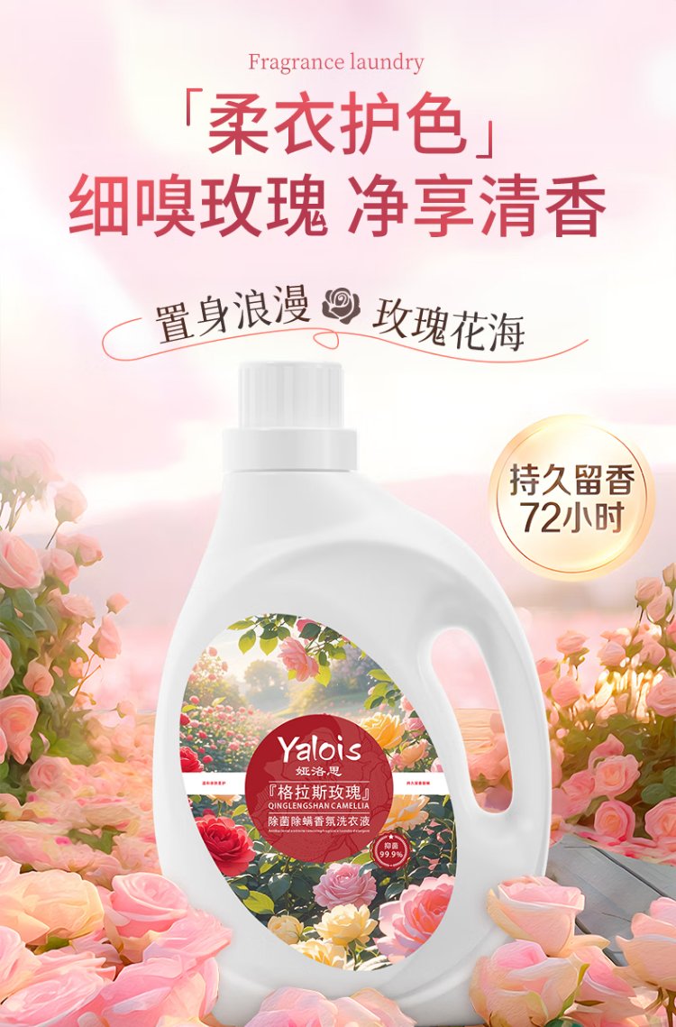 Yaros rose fragrance laundry detergent, sterilizing and removing mites, deep cleansing, long-lasting fragrance, smooth and protective clothing, 4 pounds of underwear