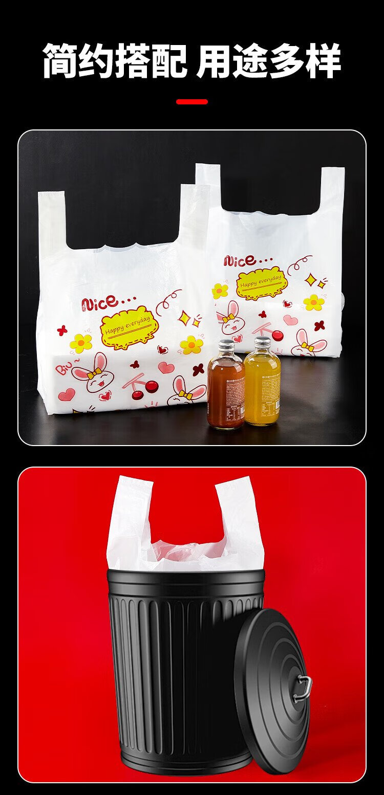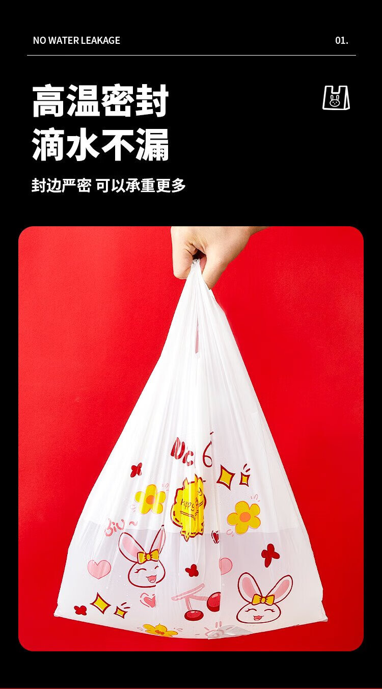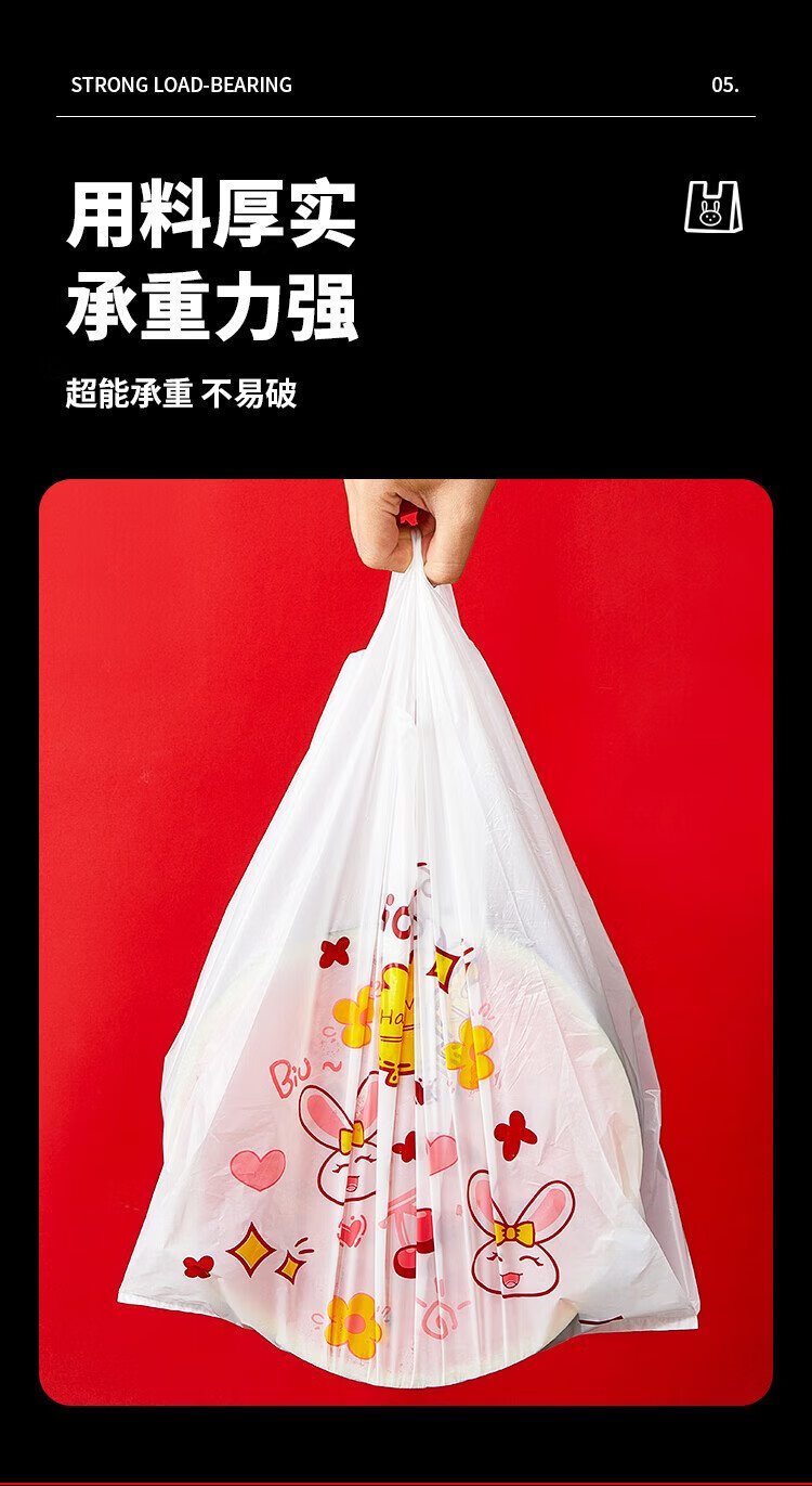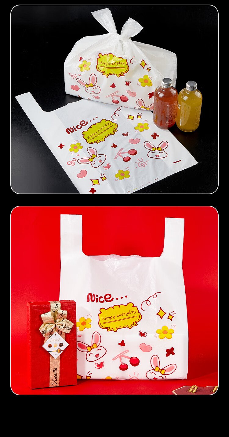 Youao plastic bag vest bag large rabbit shopping bag food bag convenience bag packing bag 32cm*50cm*50 pieces