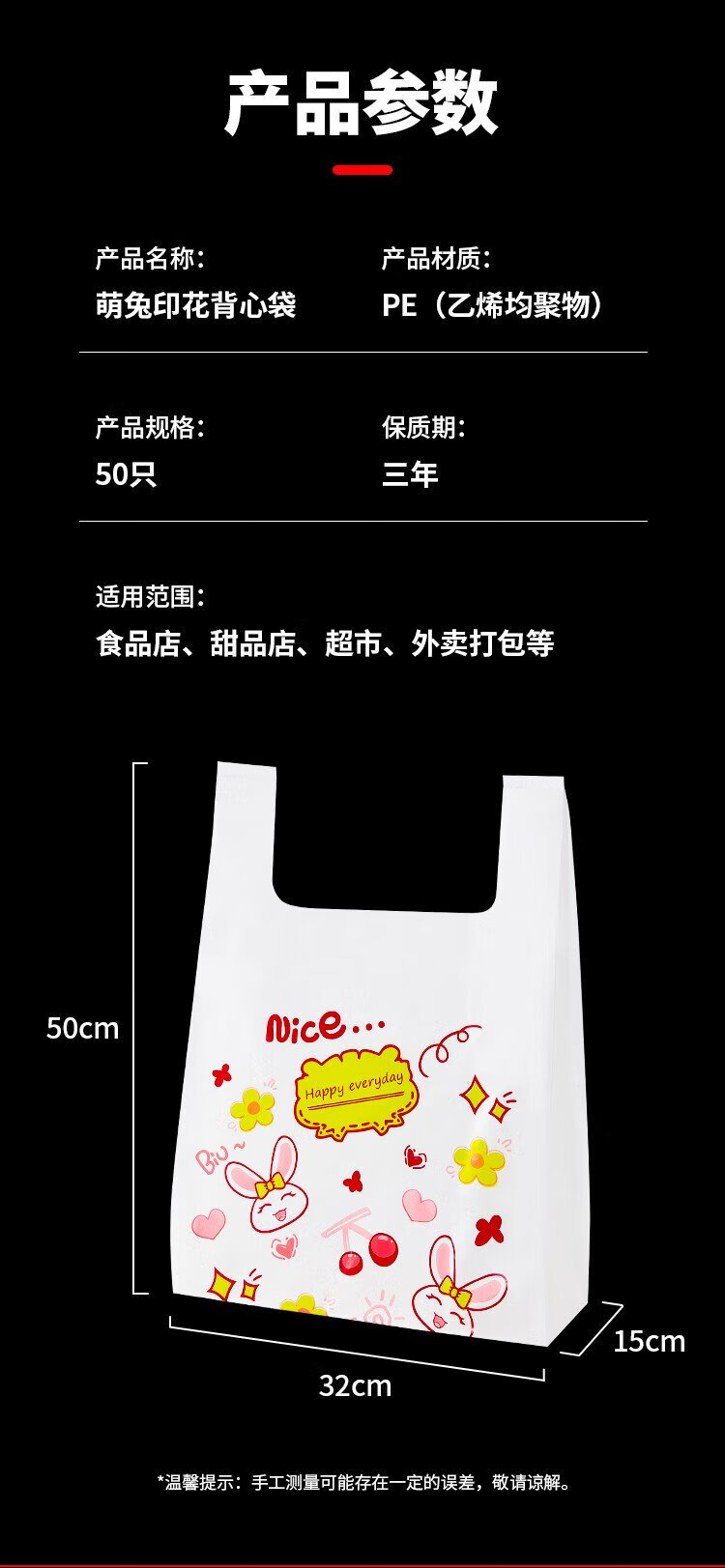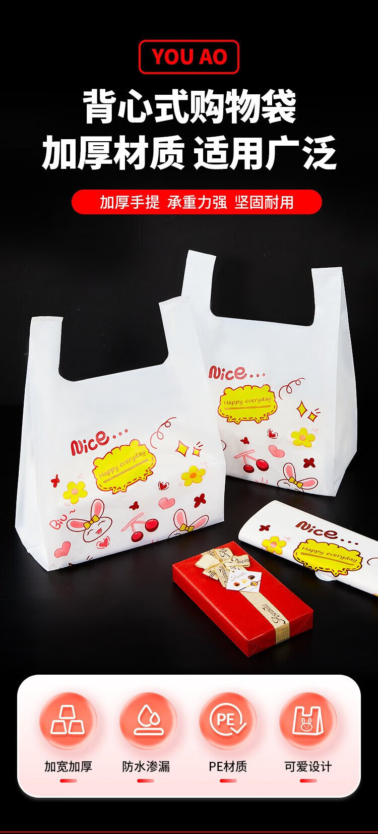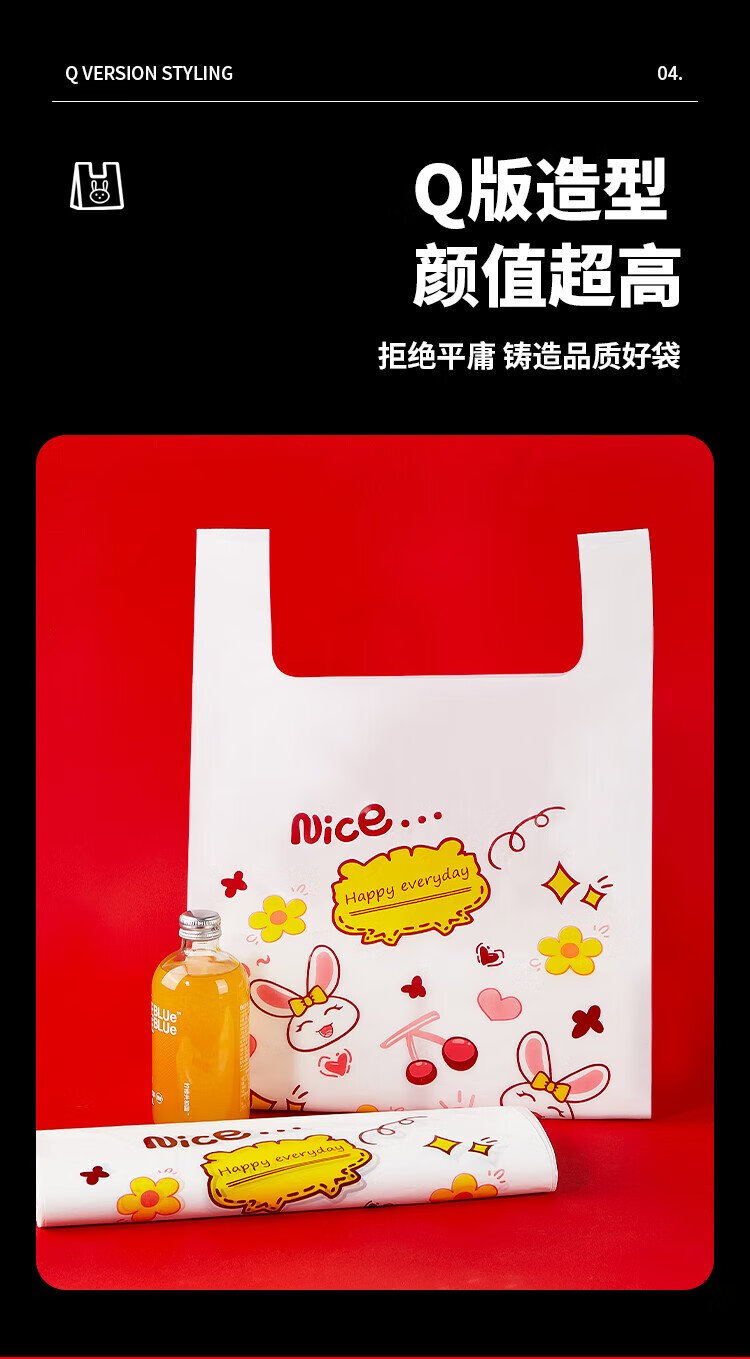 Youao plastic bag vest bag large rabbit shopping bag food bag convenience bag packing bag 32cm*50cm*50 pieces
