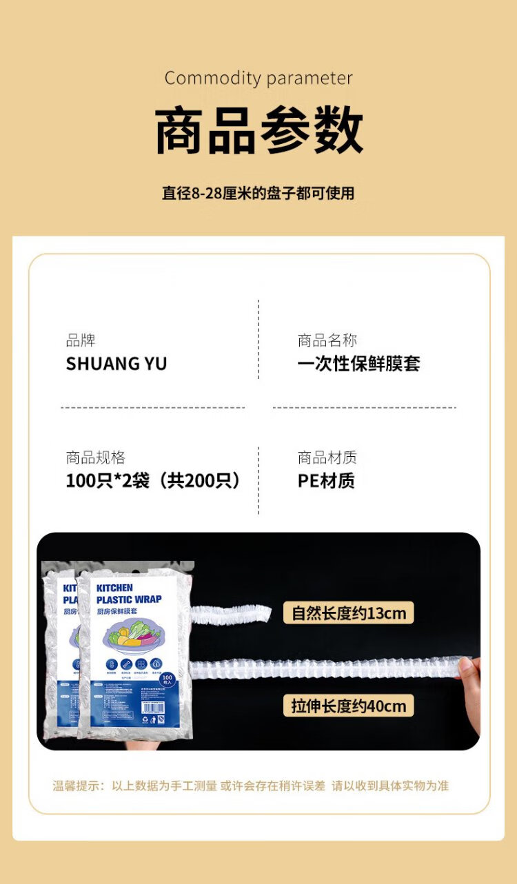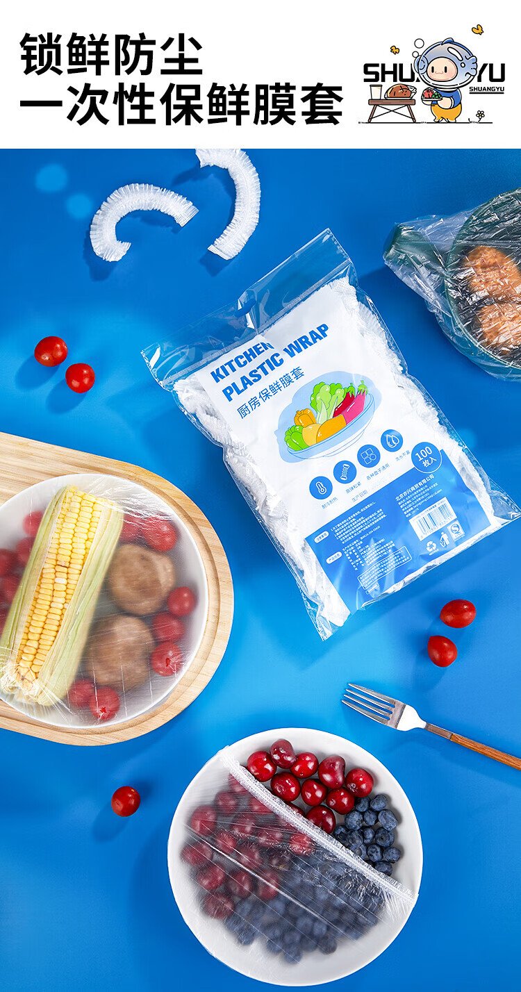 SHUANG YU cling film cover 200 food grade leftover food preservation cover kitchen refrigerator bowl cover elastic mouth preservation bag