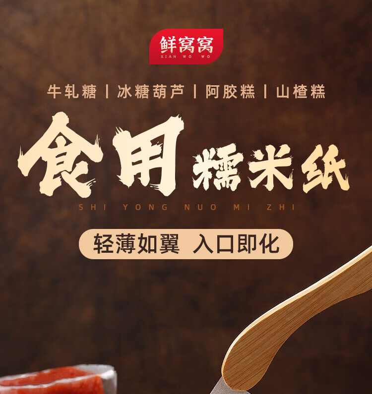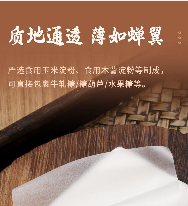 Xianwowo glutinous rice paper about 500 sheets edible sugar paper snowflake crispy nougat donkey hide gelatin cake packaging 100g6.5*10cm