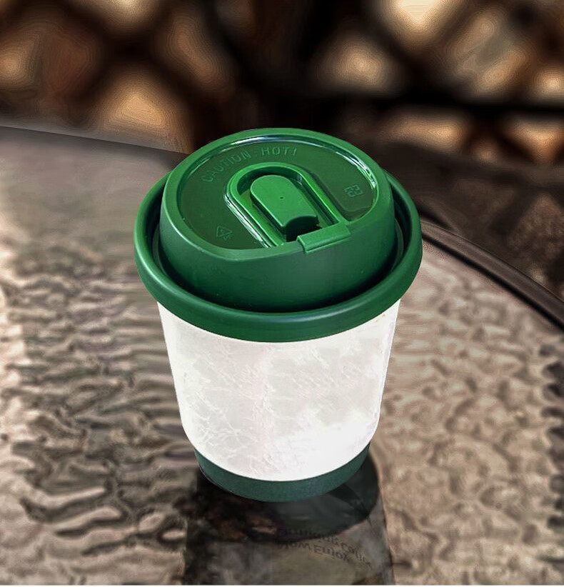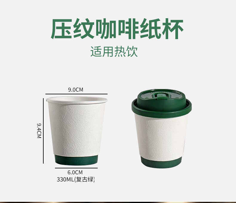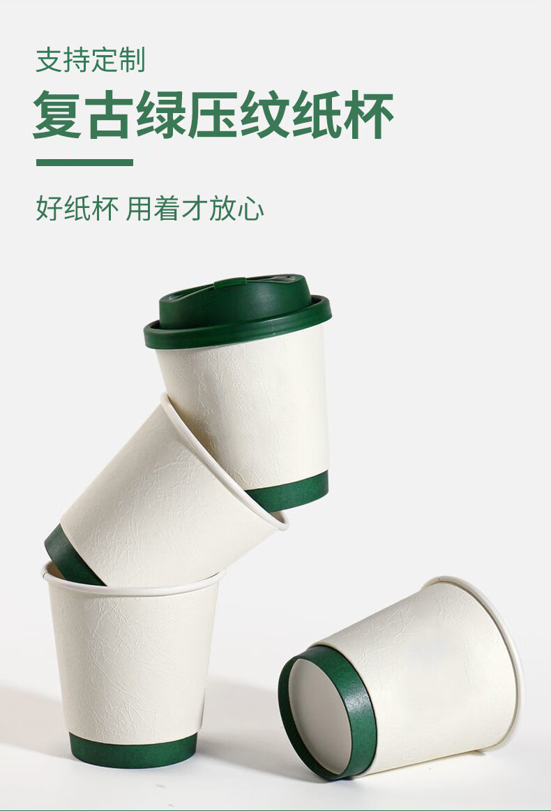 Forty thousand kilometers (40000KM) coffee cup paper cup with lid water cup household commercial packaging cup hot drink paper cup thickened double layer retro green 330ml + butterfly green lid - 50 sets