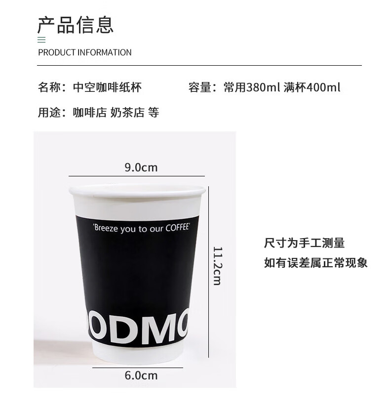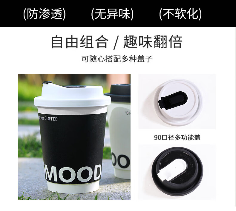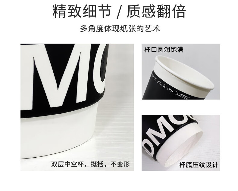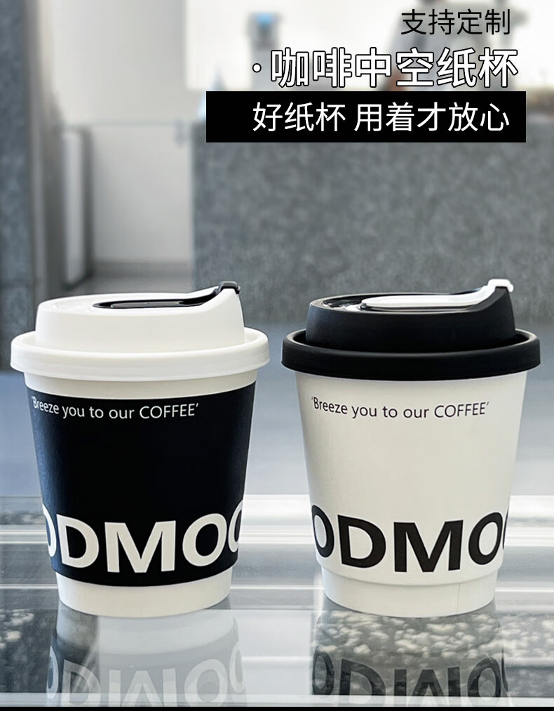 Forty thousand kilometers coffee cup double-layered paper cup with lid water cup household commercial packaging cup hot drink paper cup thickened double-layered milk tea cup black 280ml + butterfly white lid 25 sets