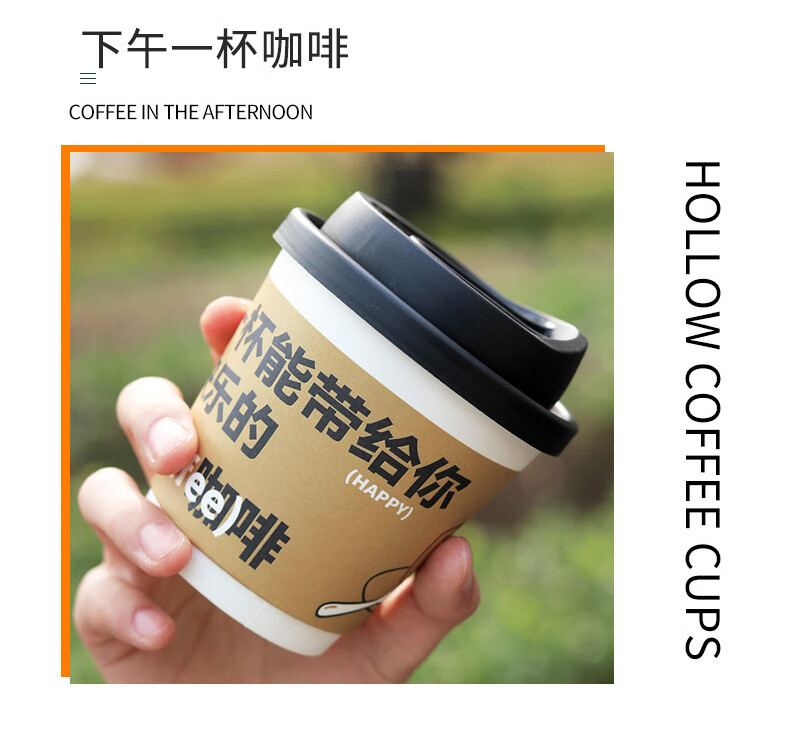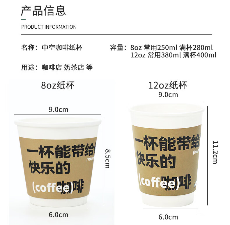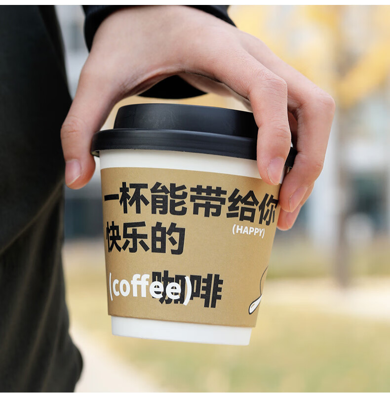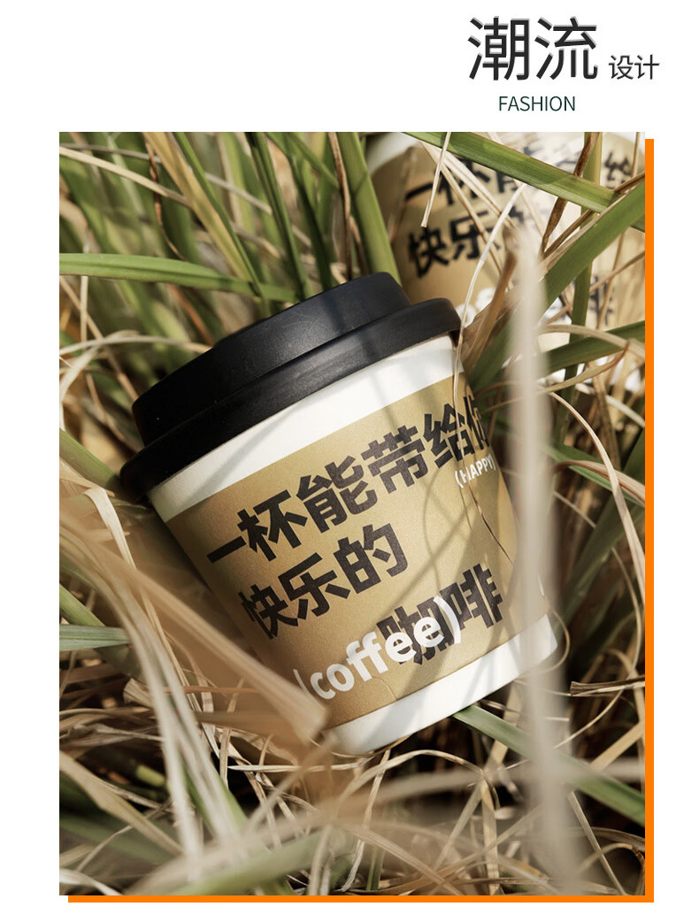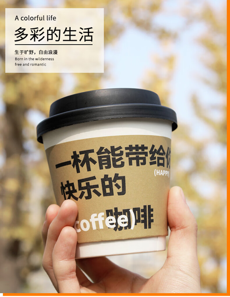 Forty thousand kilometers coffee cup double-layer paper cup with lid water cup household commercial packaging cup hot drink paper cup thickened double happiness 280ml + butterfly black lid 25 sets