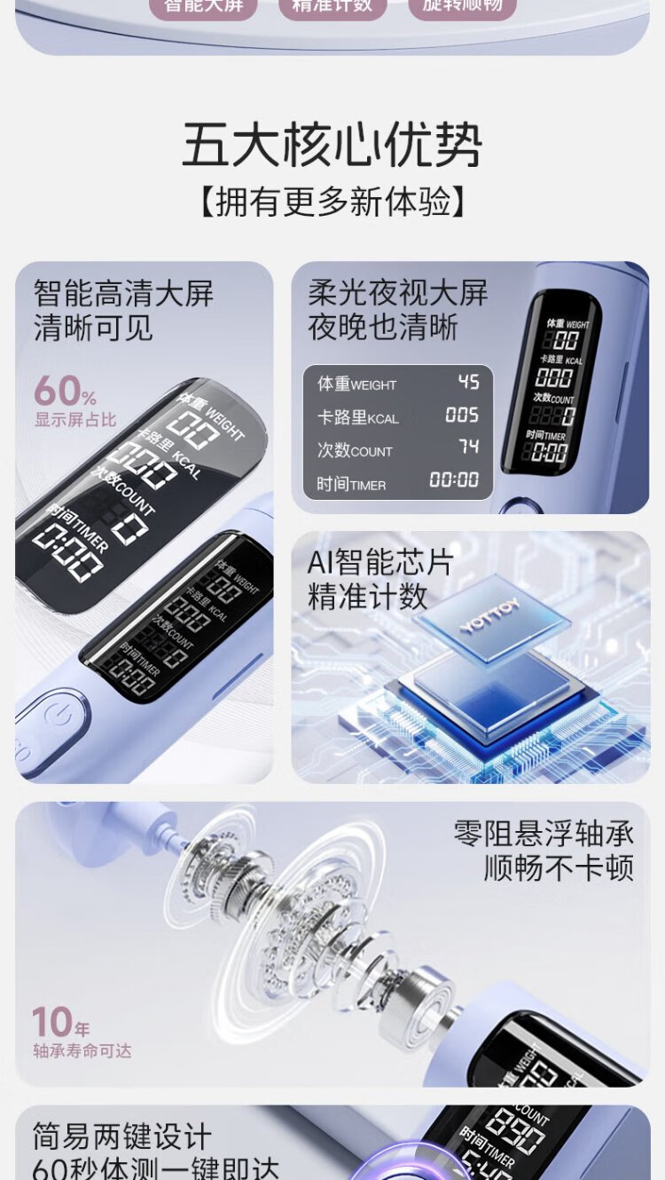 Yottoy ropeless skipping rope smart counting skipping rope adult weight loss fat burning sports professional skipping rope blue