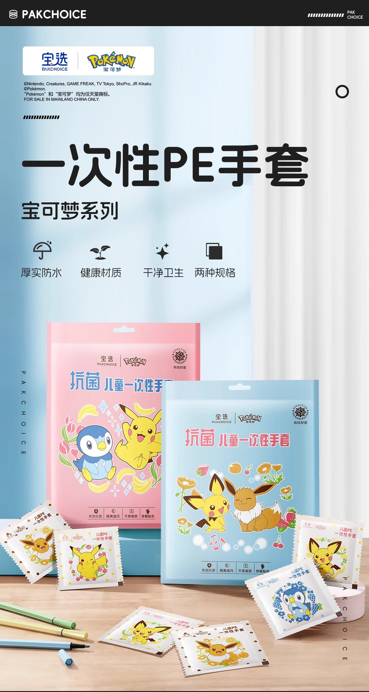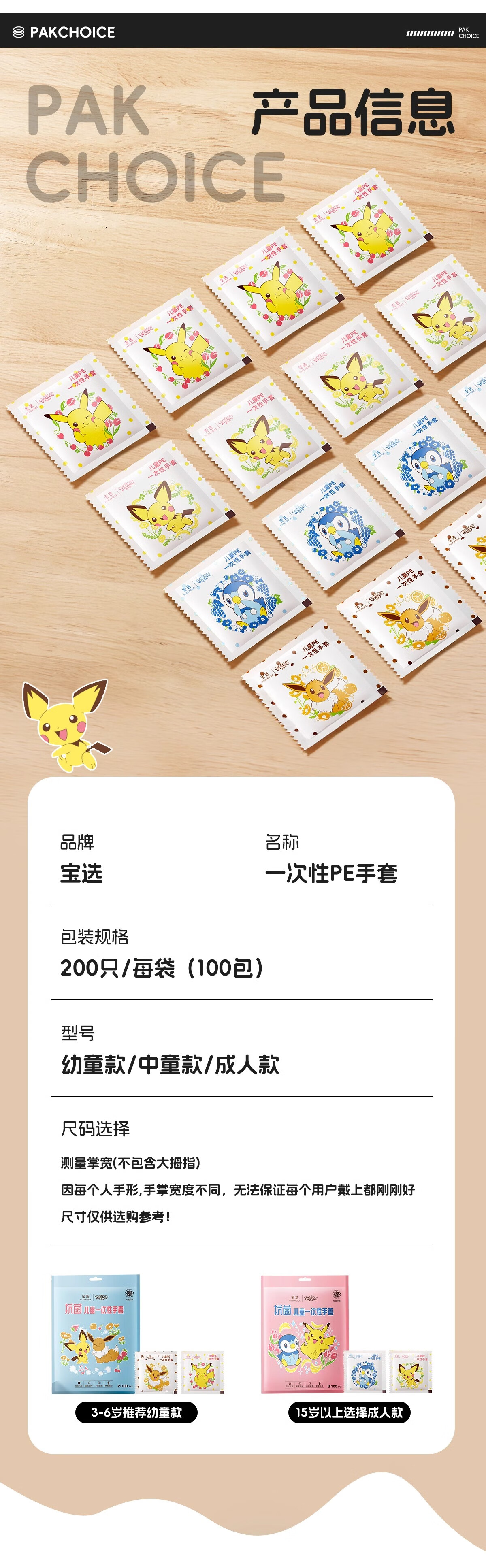 PAKCHOICE children's disposable gloves antibacterial grade PE individually packaged thickened protective gloves for children aged 5-14 years old