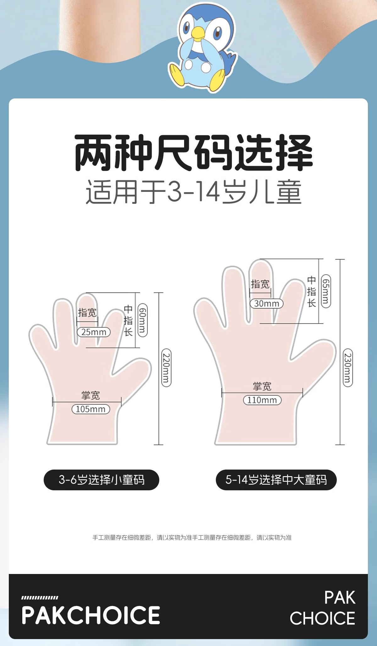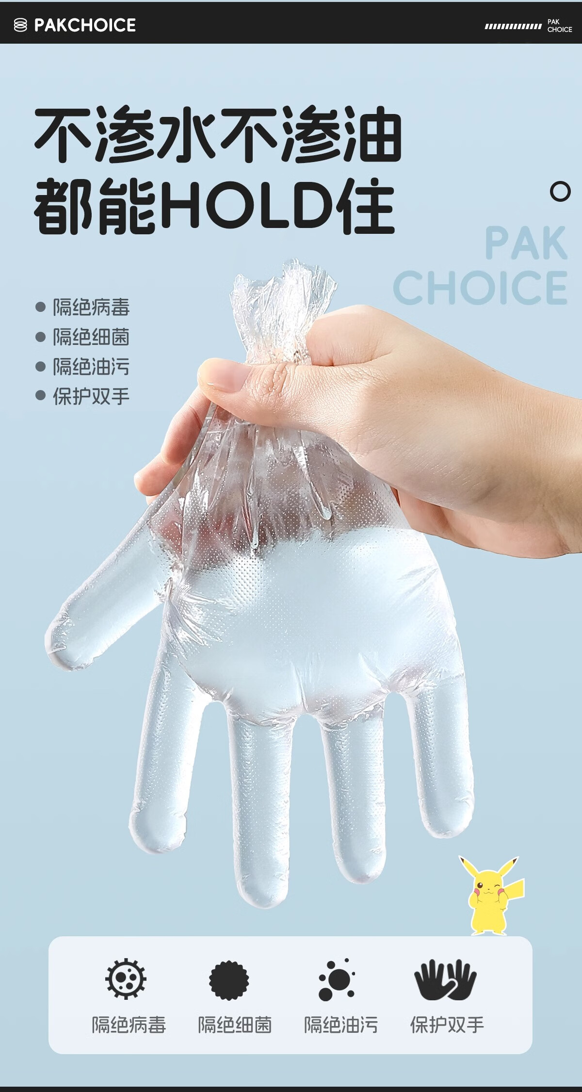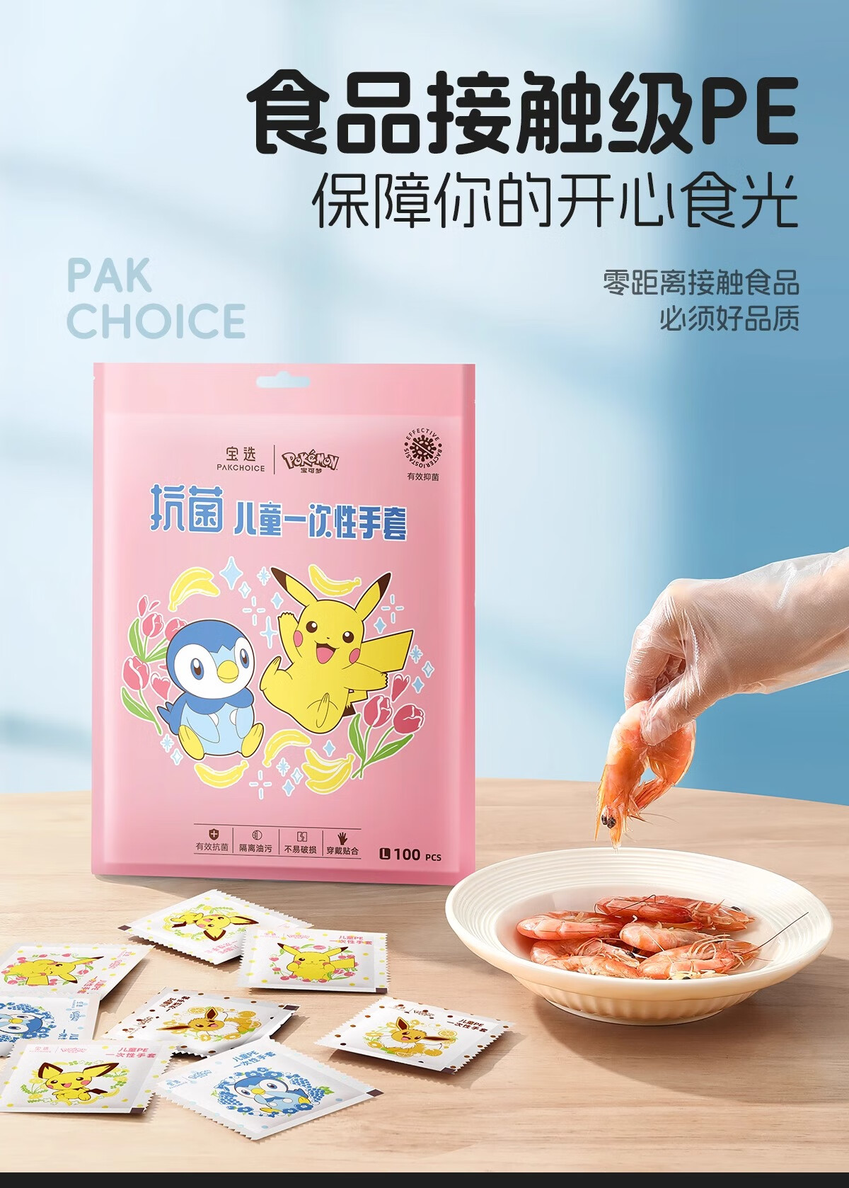 PAKCHOICE children's disposable gloves Pokémon co-branded independent packaging baby 3-6 years old food grade thickened antibacterial grade PE
