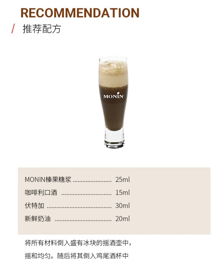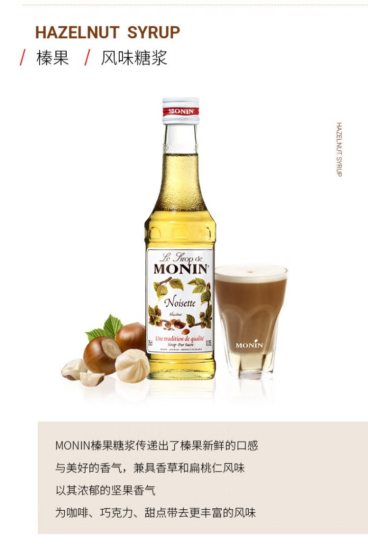 MONIN imported from Malaysia hazelnut flavored syrup glass bottle 250ml coffee mixing companion