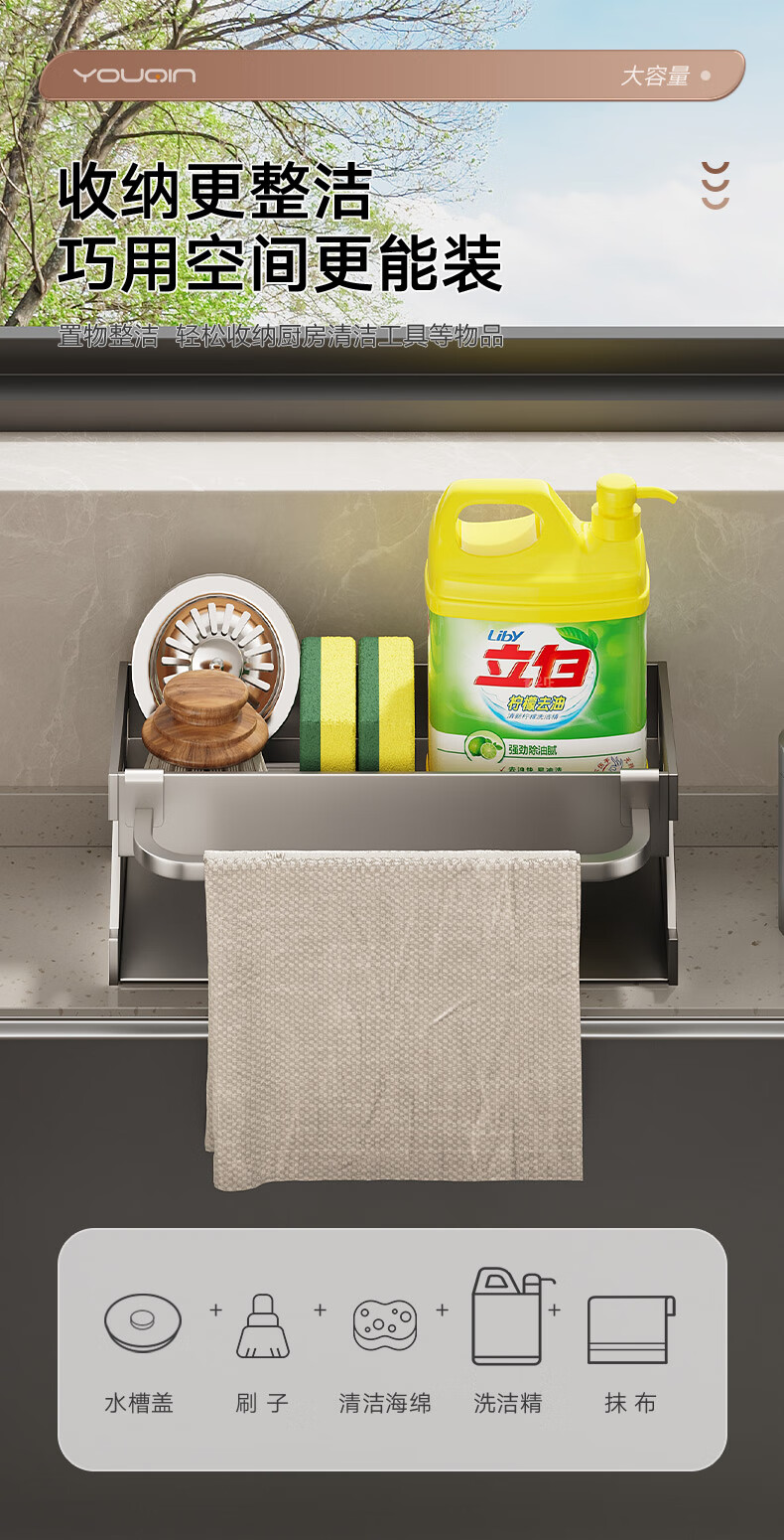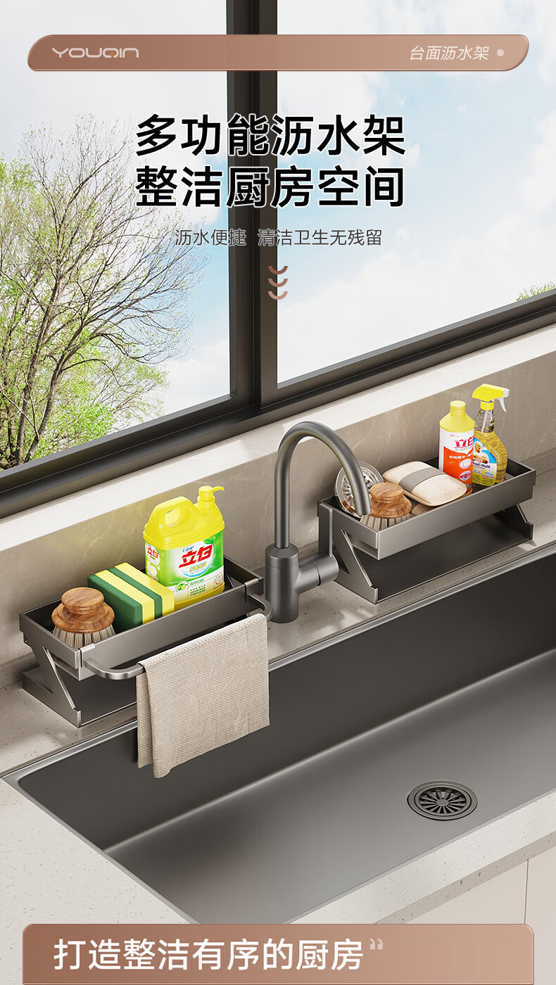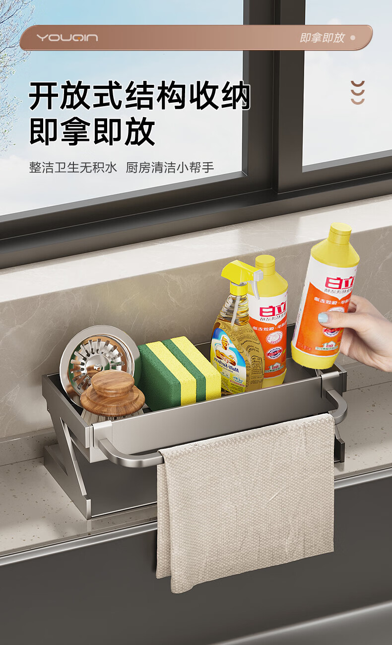 MUYA kitchen stainless steel storage rack sink rag rack faucet sink dishwashing steel ball storage drain rack