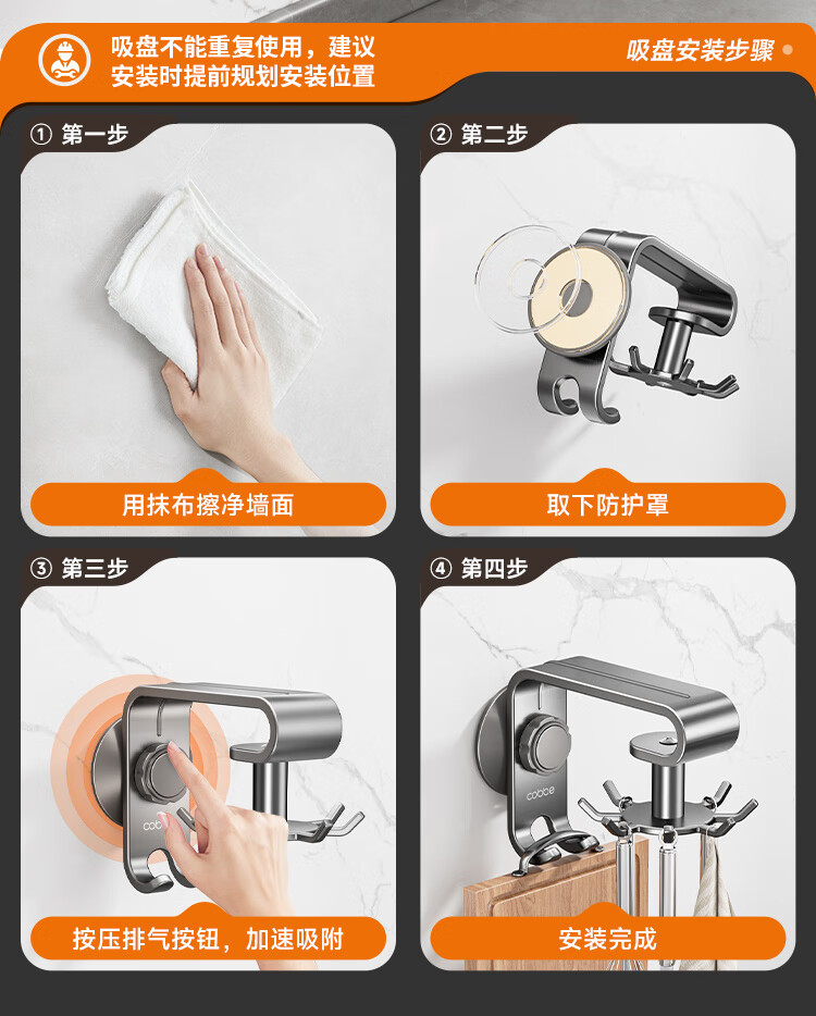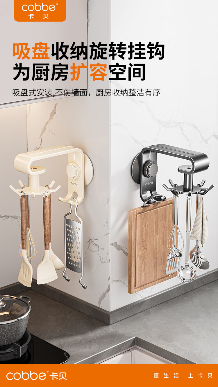 Cobbe kitchen rotating hook wall-mounted punch-free storage rack spatula cutting board hanger adhesive wall nail-free suction cup
