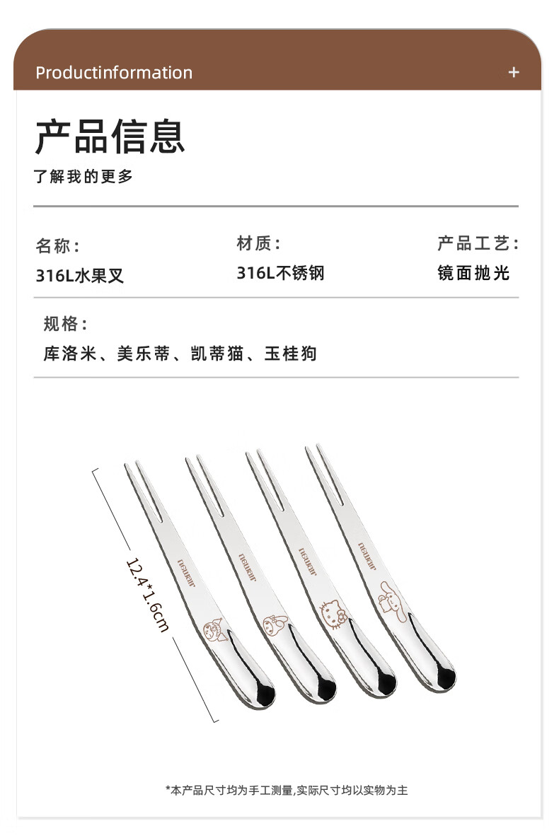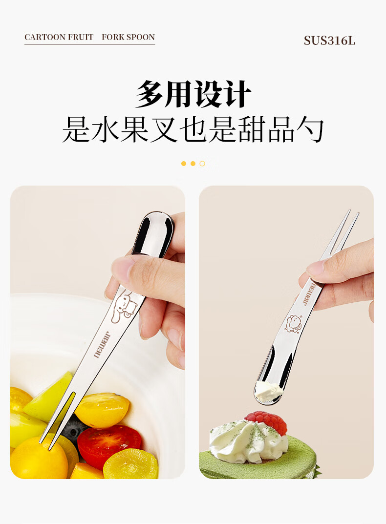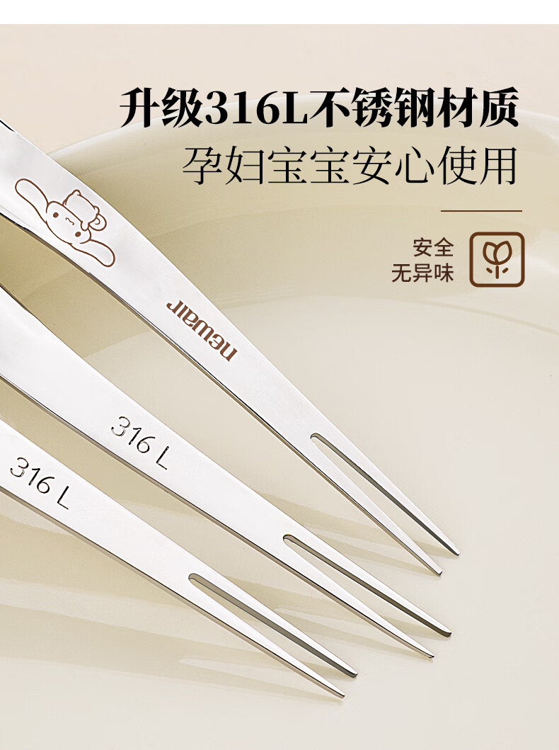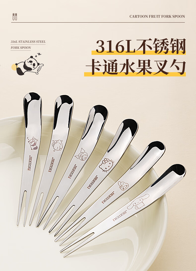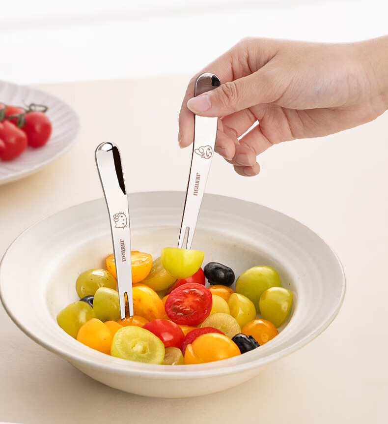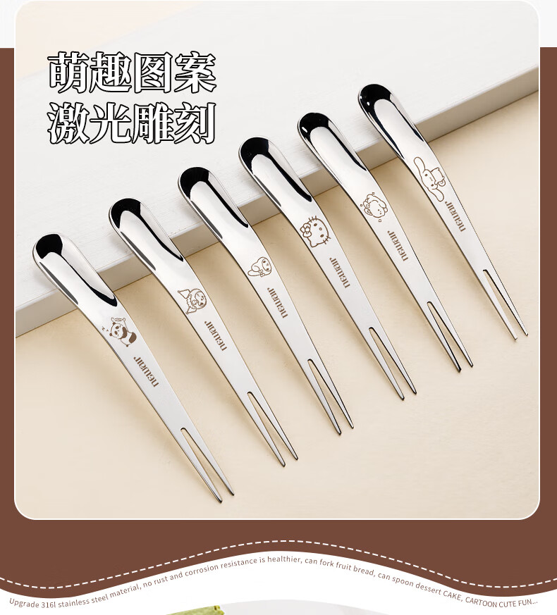 Newair 316L stainless steel fruit fork integrated thickened dessert fork fruit pick household tableware cartoon children's fork 4 pieces