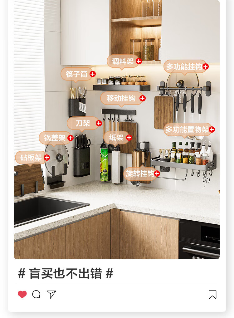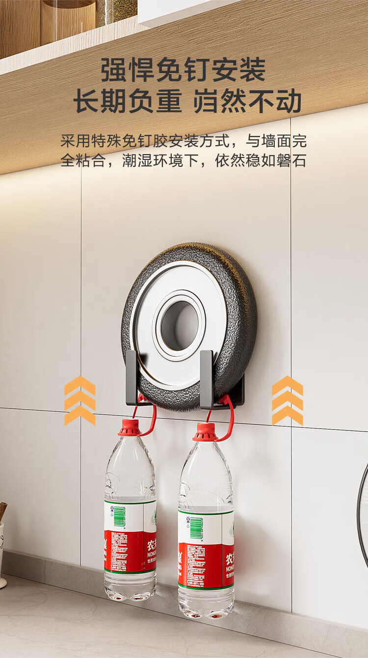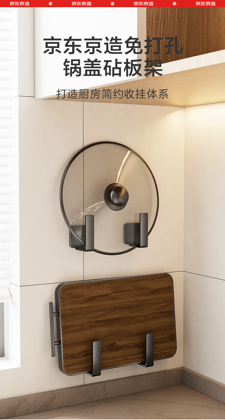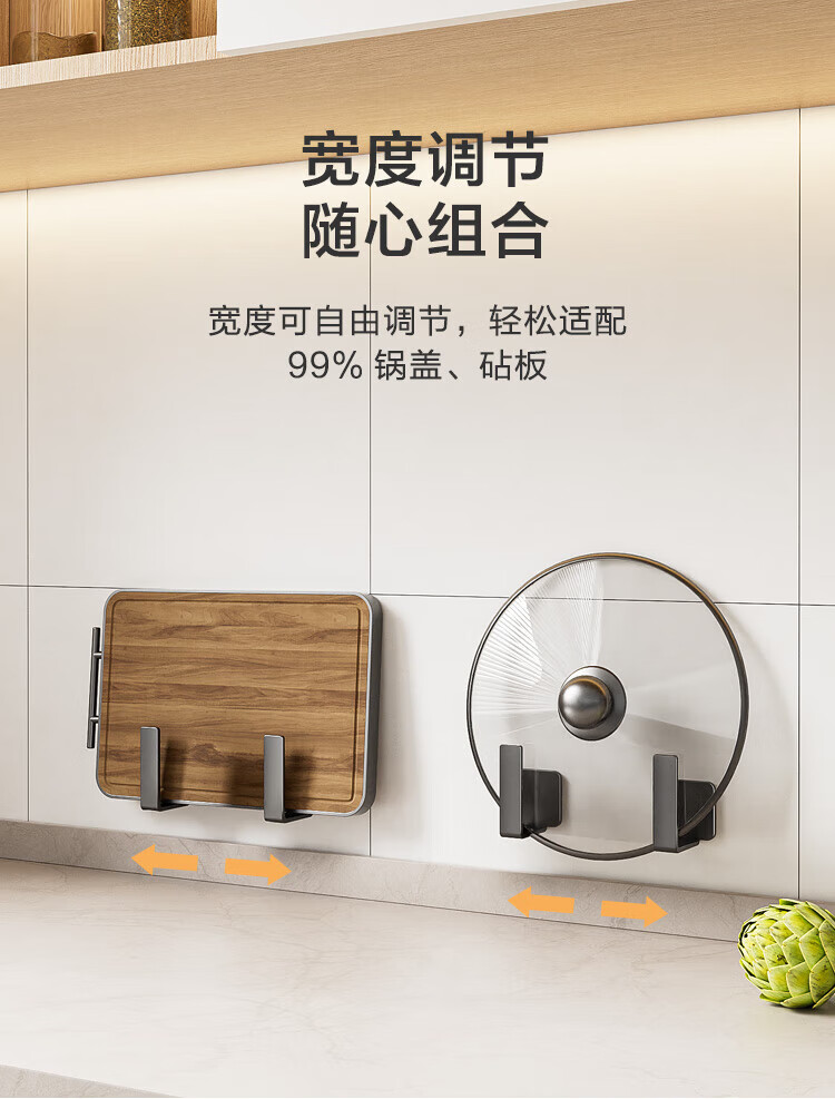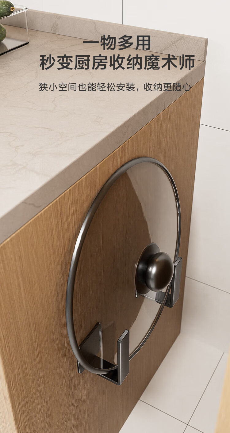 Made in Tokyo, kitchen storage rack, hole-free wall-mounted pot lid and chopping board rack, multi-functional storage hook