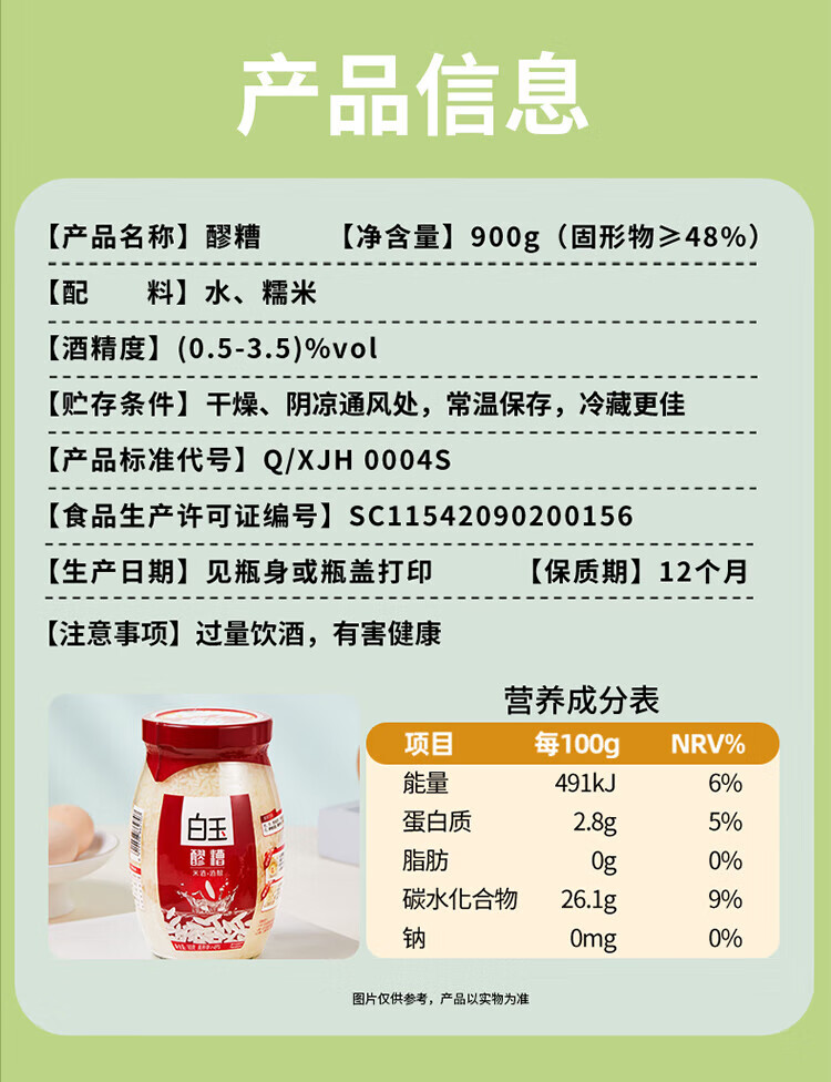 White corn wine fermented glutinous rice 900g