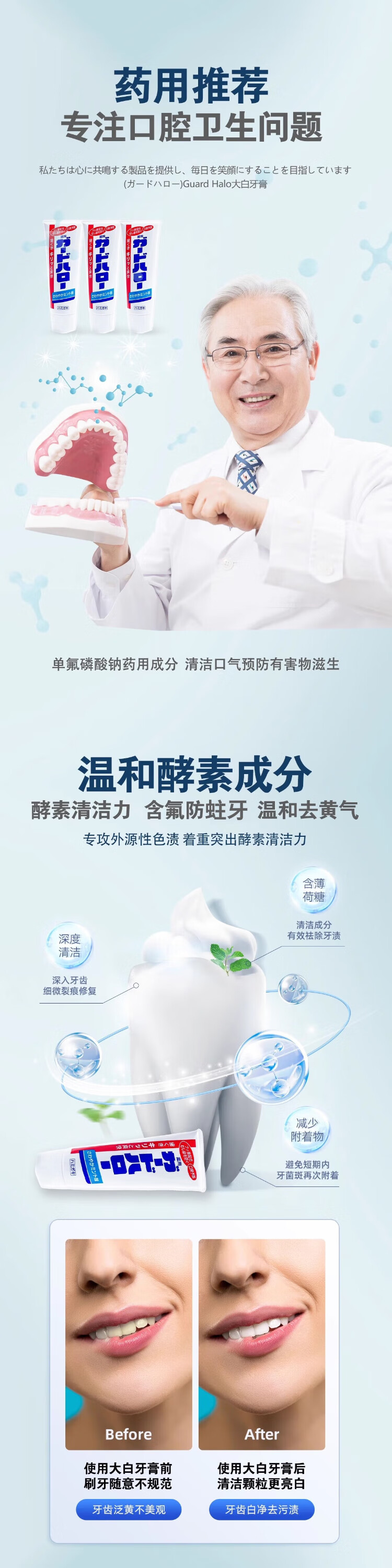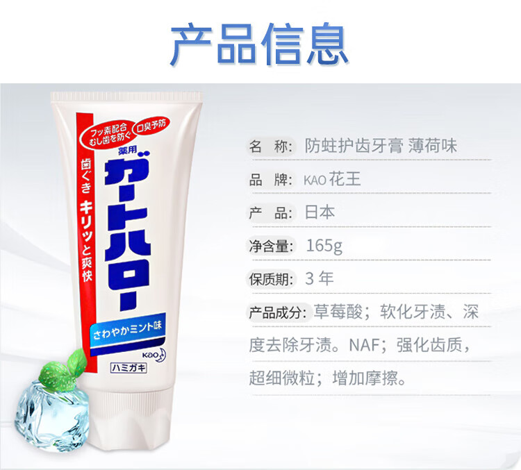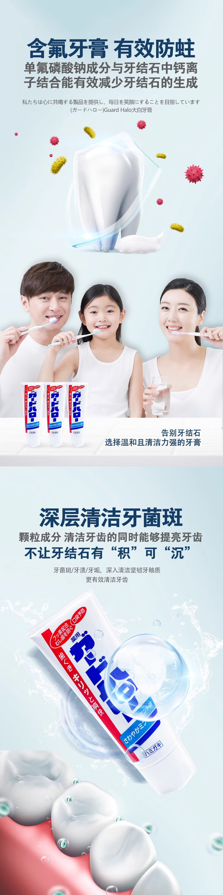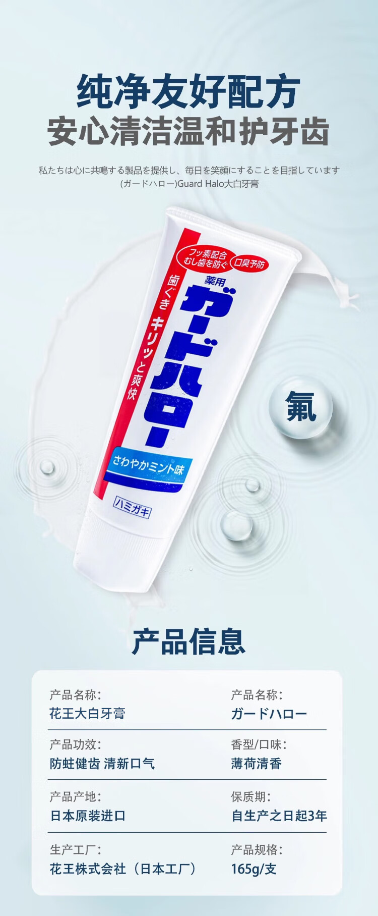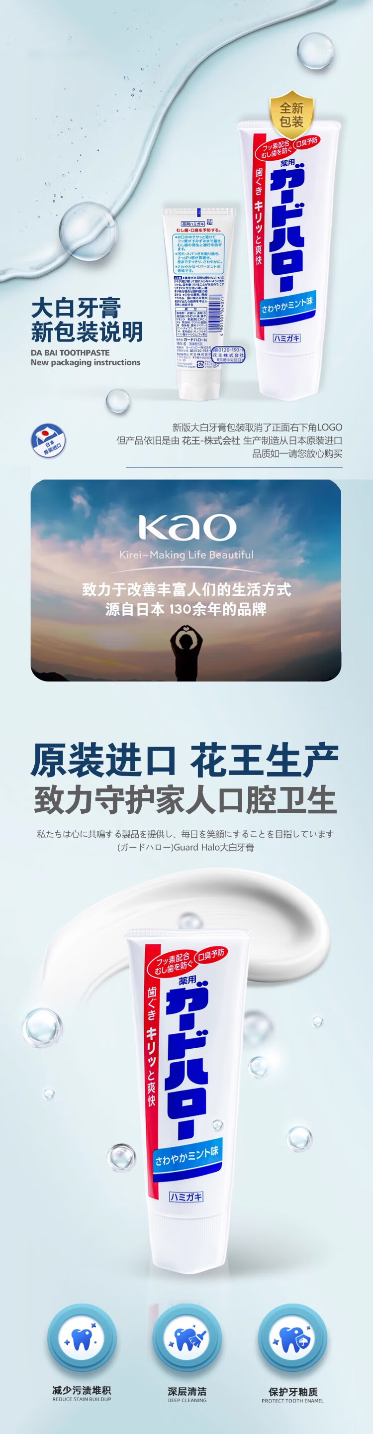 Kao (KAO) toothpaste 165g*3 classic large white toothpaste fresh breath, anti-cavity, solid tooth stain removal, original imported