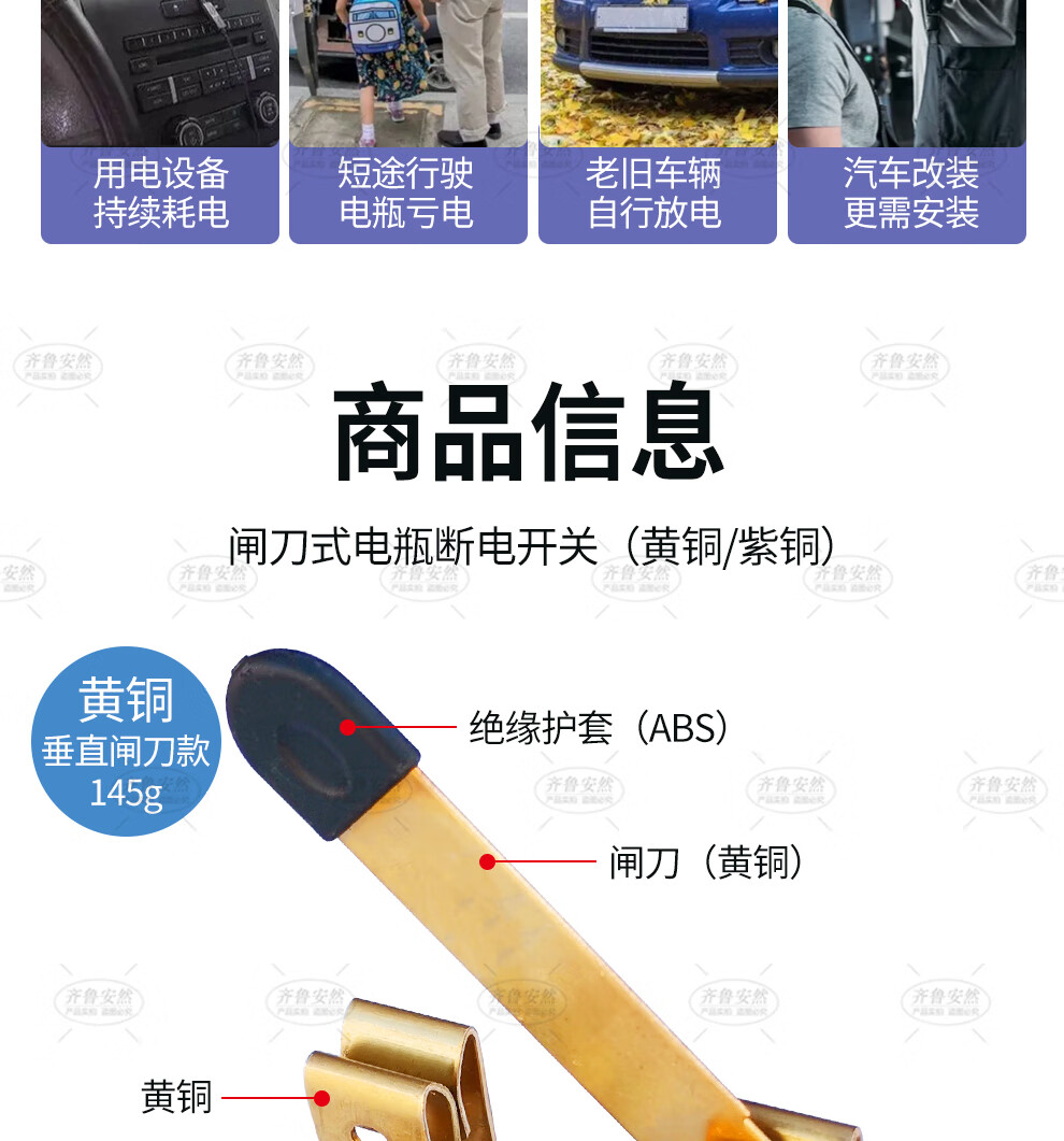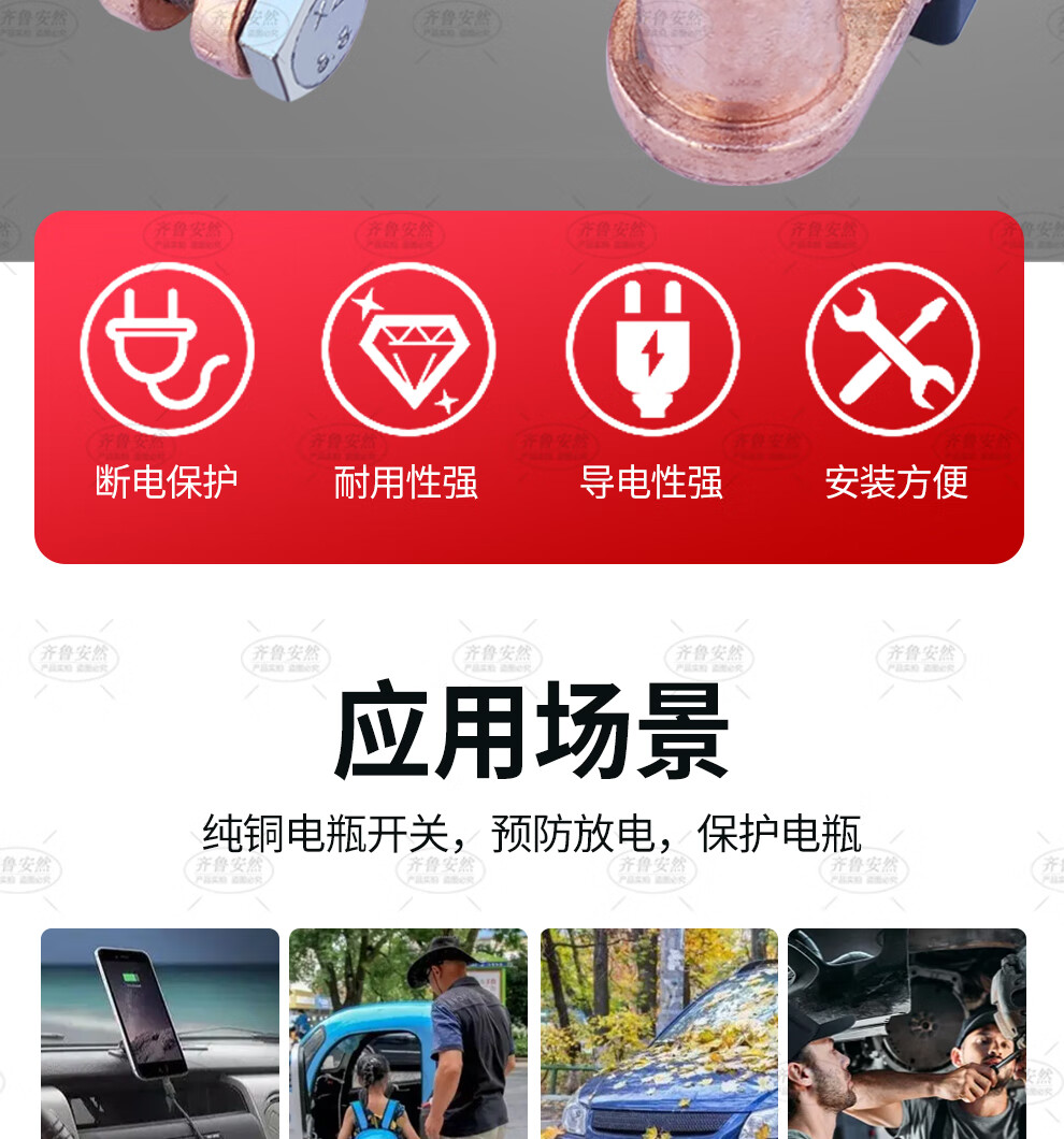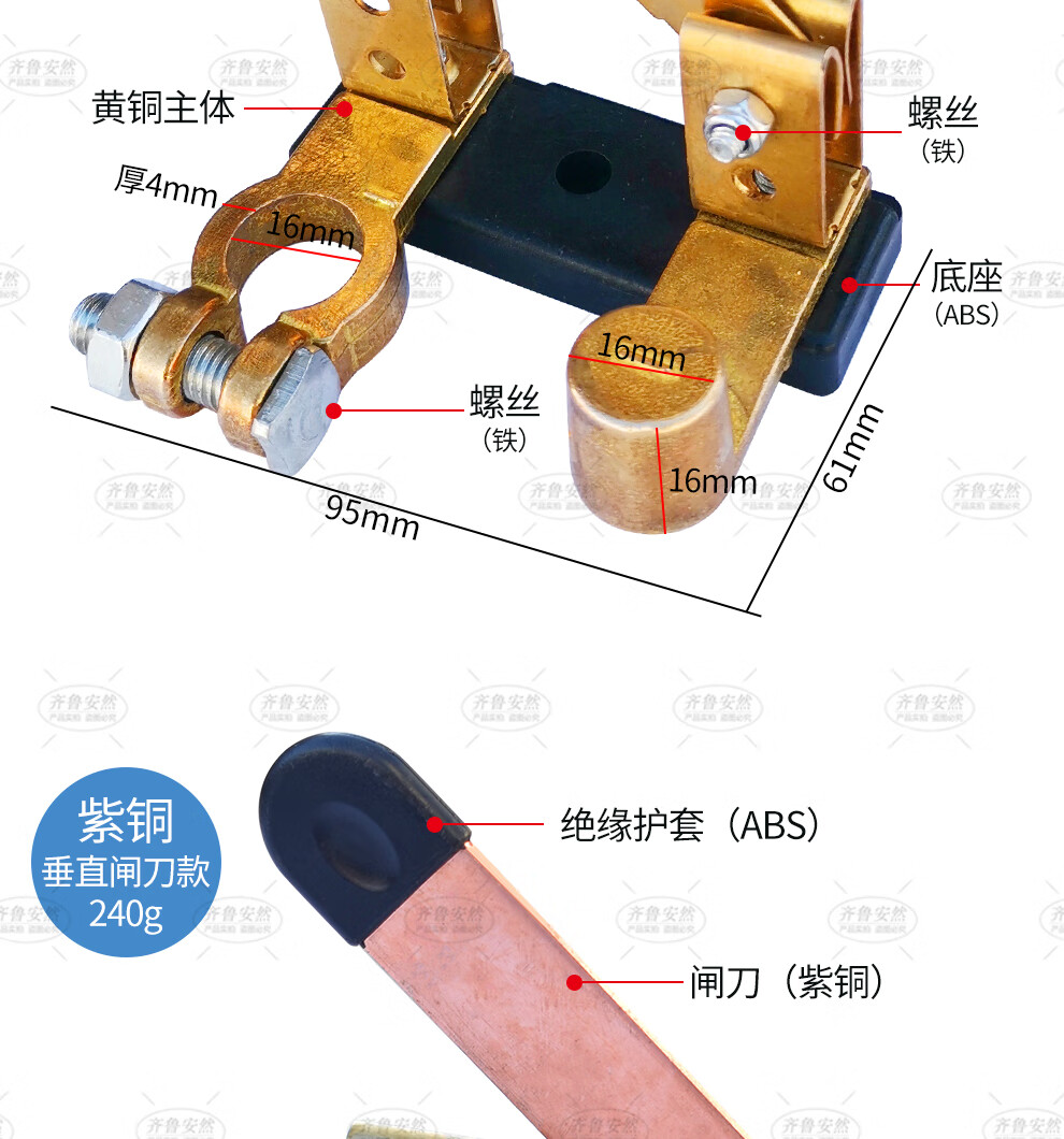 Qilu Anran knife type car battery switch anti-leakage breaker anti-loss artifact battery pile head red copper 16mm