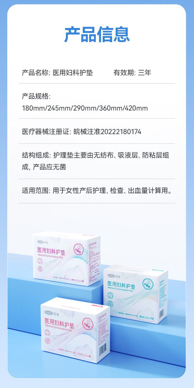 Corfu medical pads, sanitary napkins, size, sterile grade, nursing pads, mini pads, 180mm, 12 pieces/box