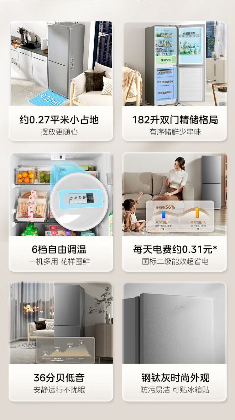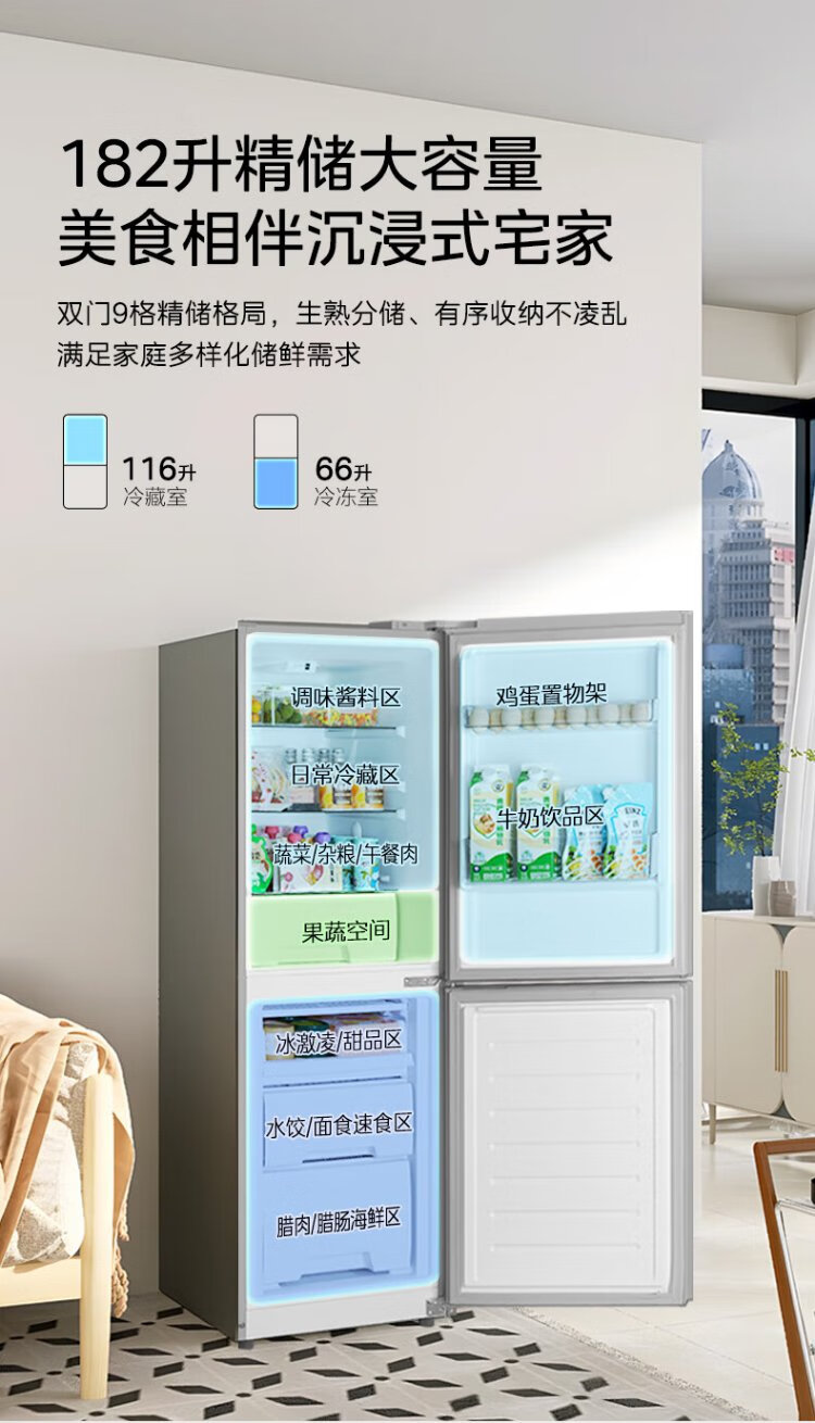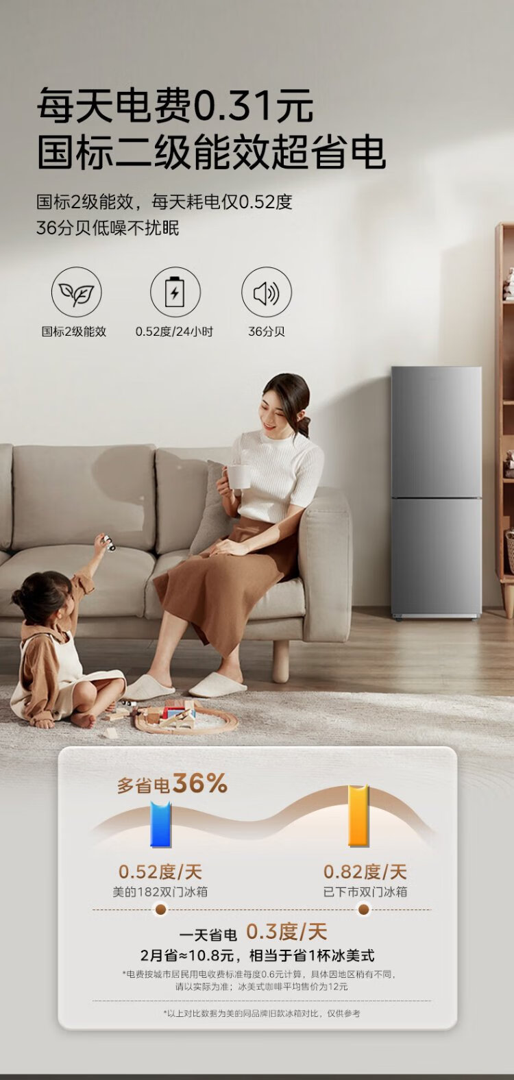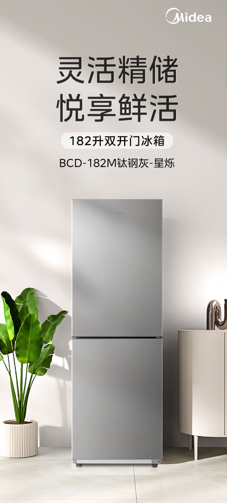 Midea 182-liter double-door two-door small apartment living room rental dormitory refrigerator can be refrigerated and frozen dual temperature compact does not occupy space and operates with bass BCD-182M