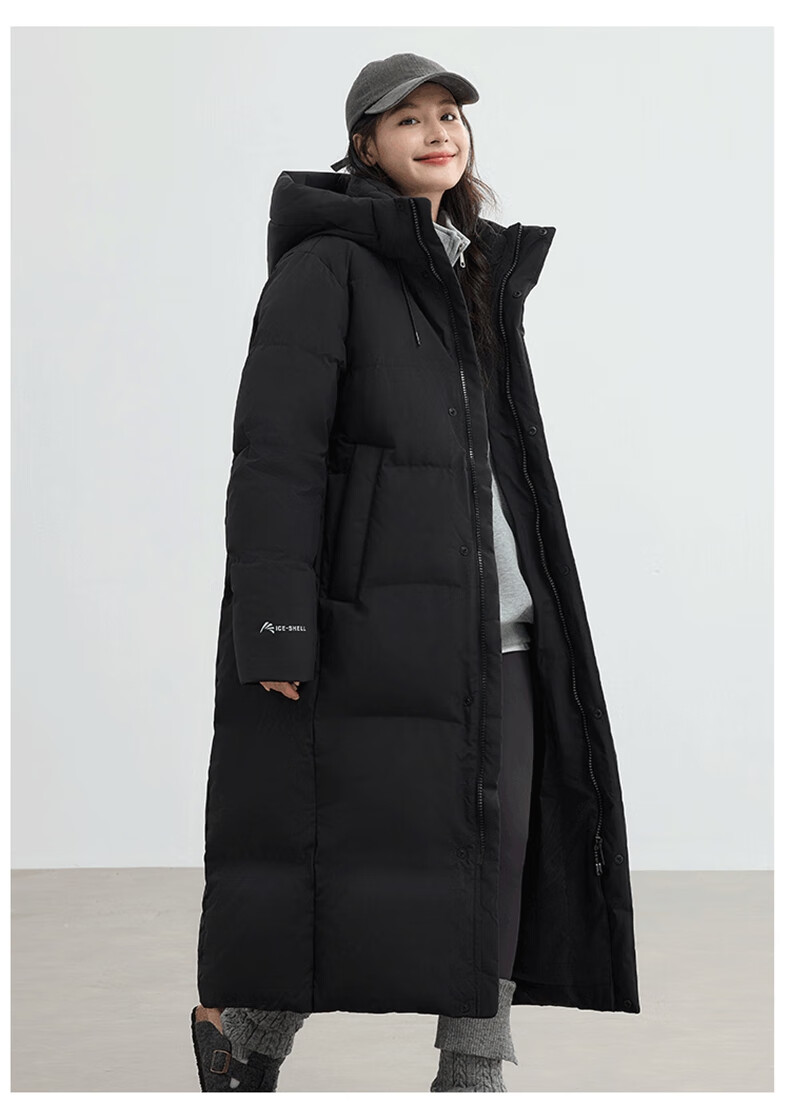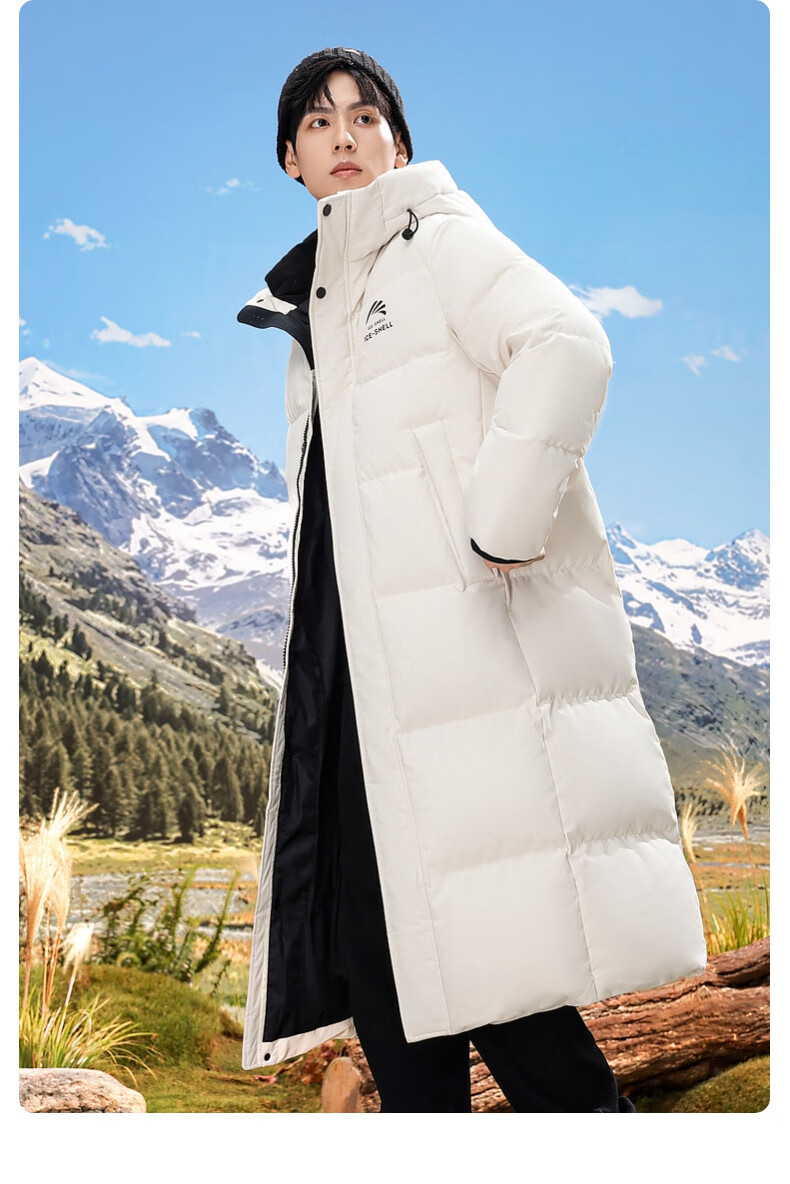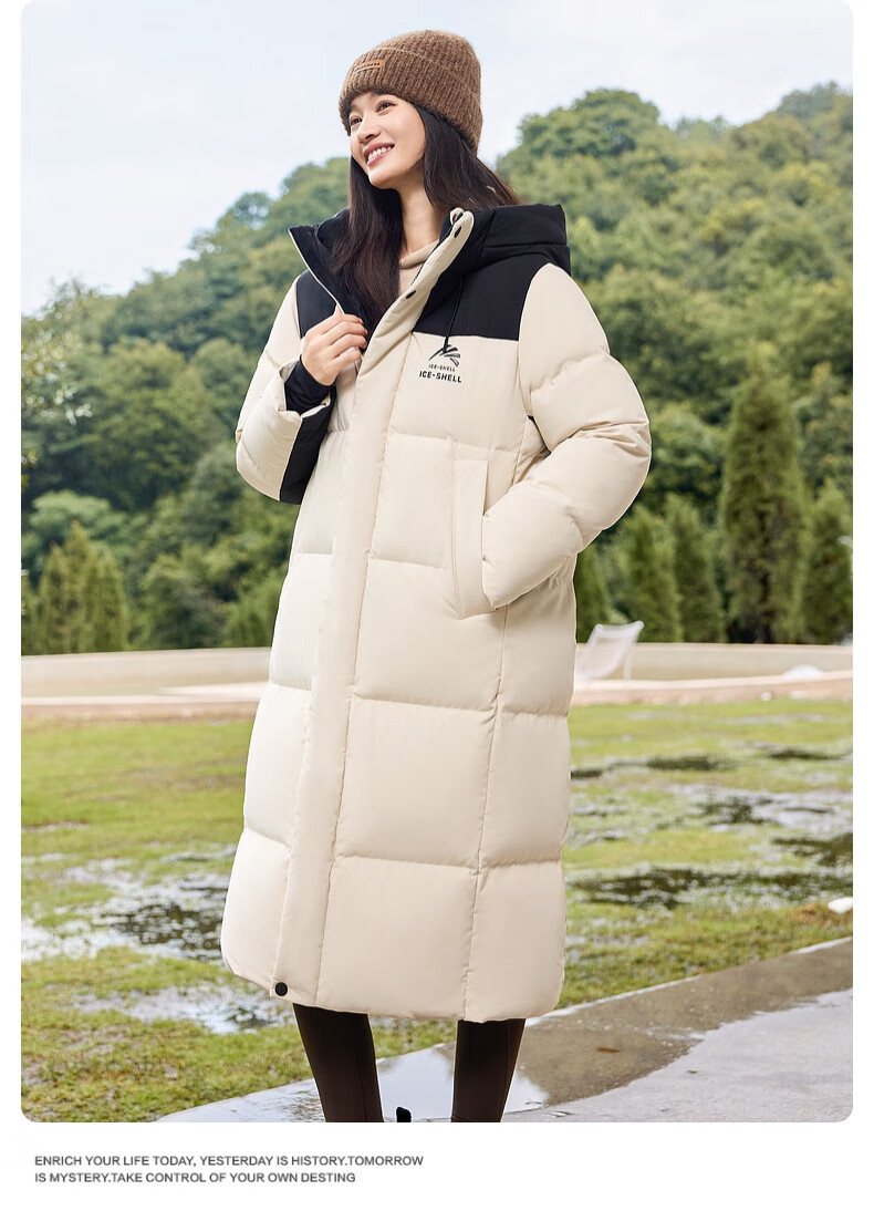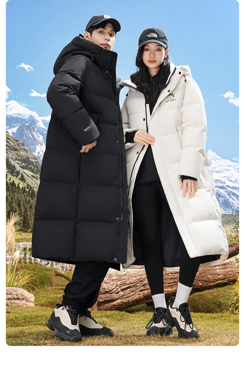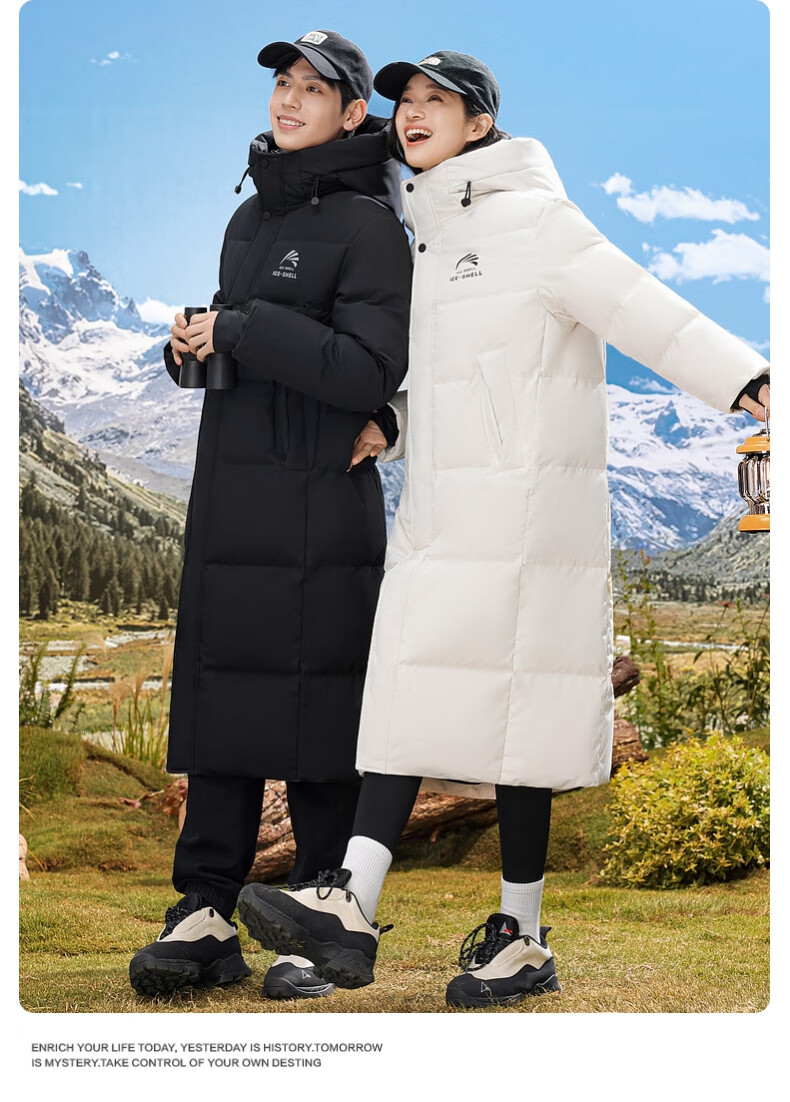 Yaya (YAYA) Wang Yibo's same ice shell down jacket for men and women, long over-the-knee couple's extreme cold thickened warm hooded jacket