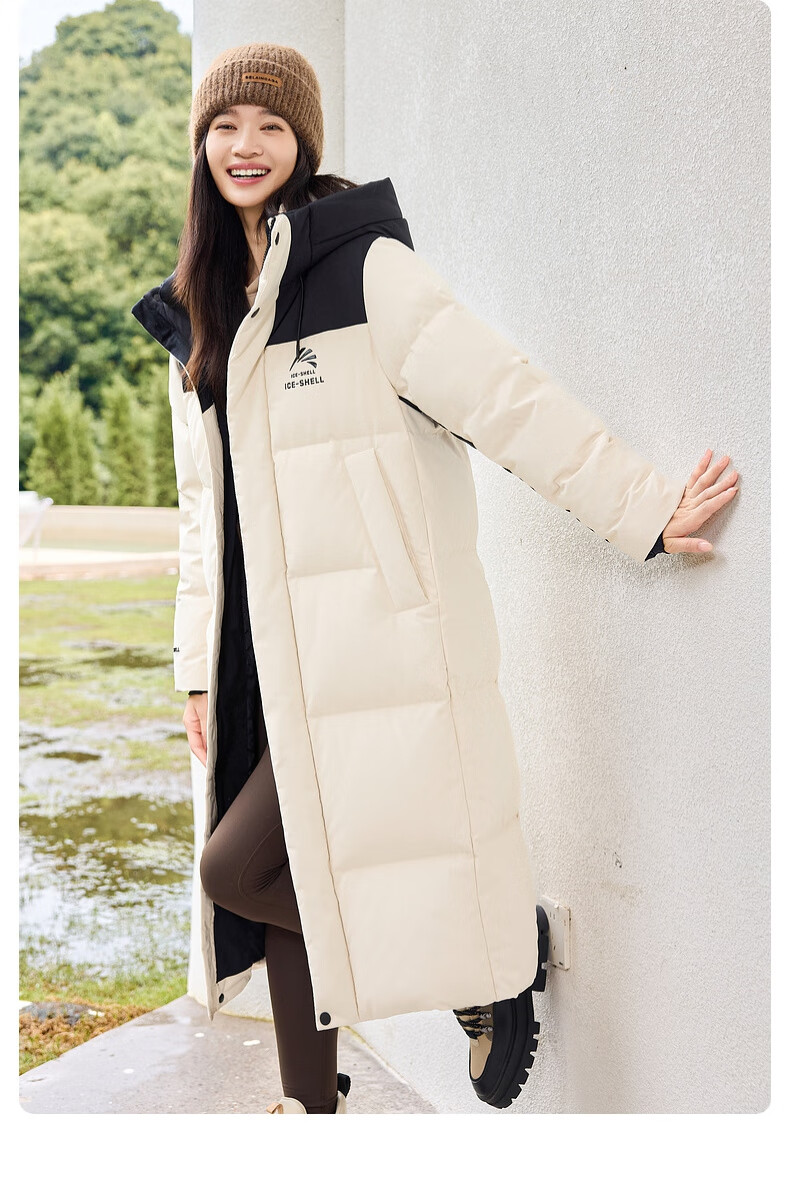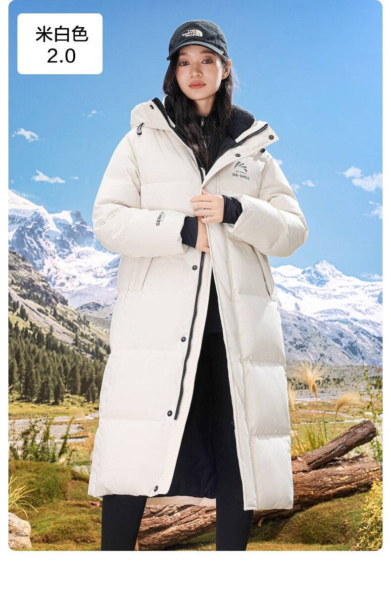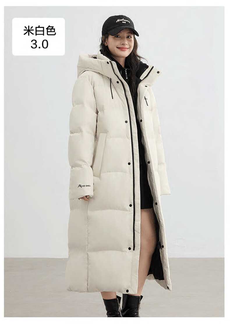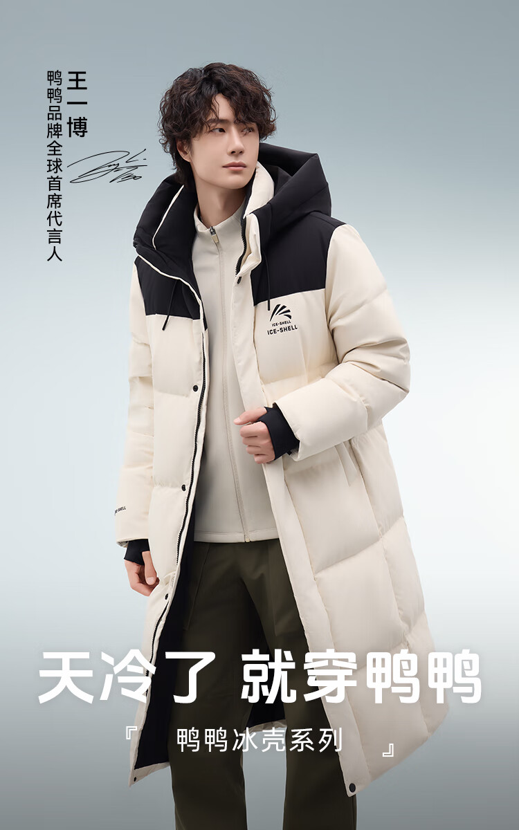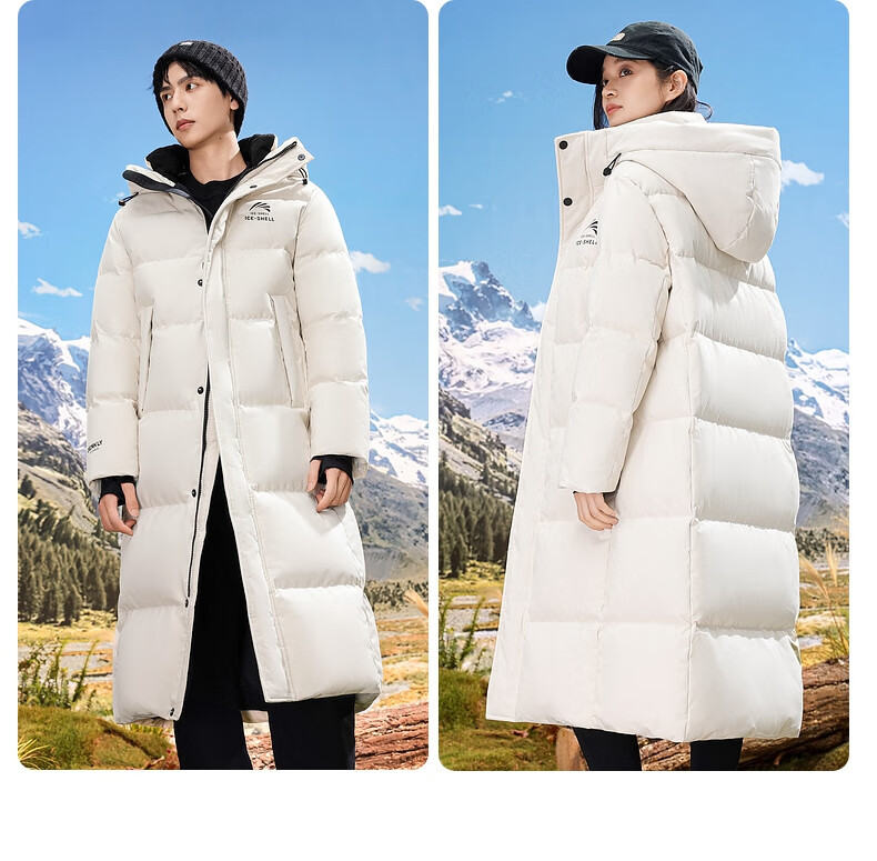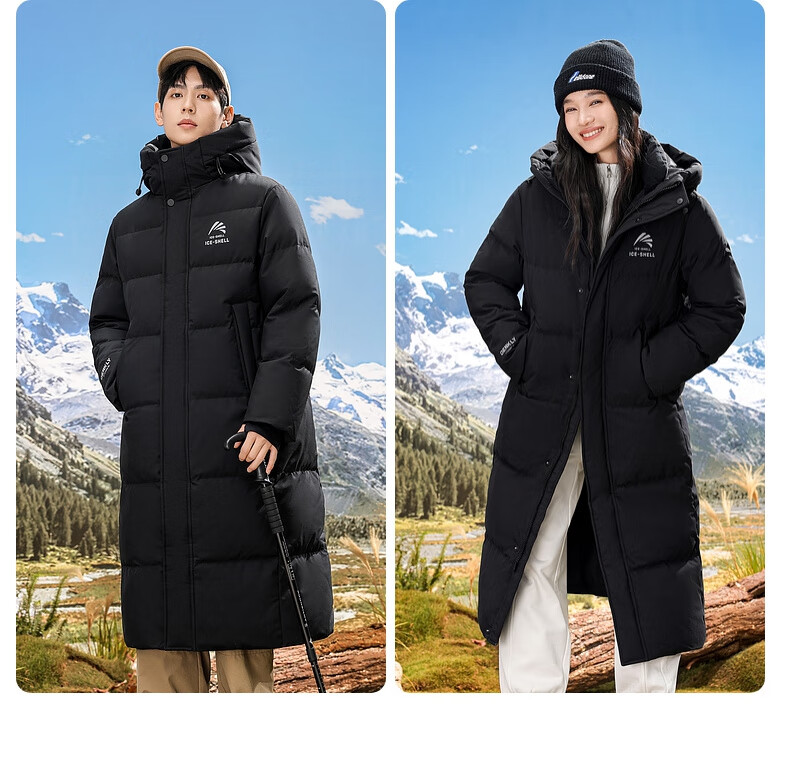Yaya (YAYA) Wang Yibo's same ice shell down jacket for men and women, long over-the-knee couple's extreme cold thickened warm hooded jacket