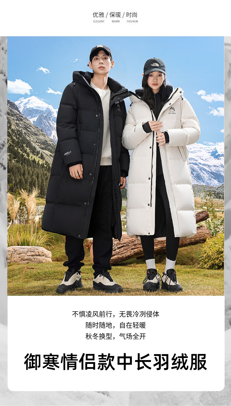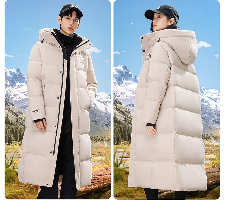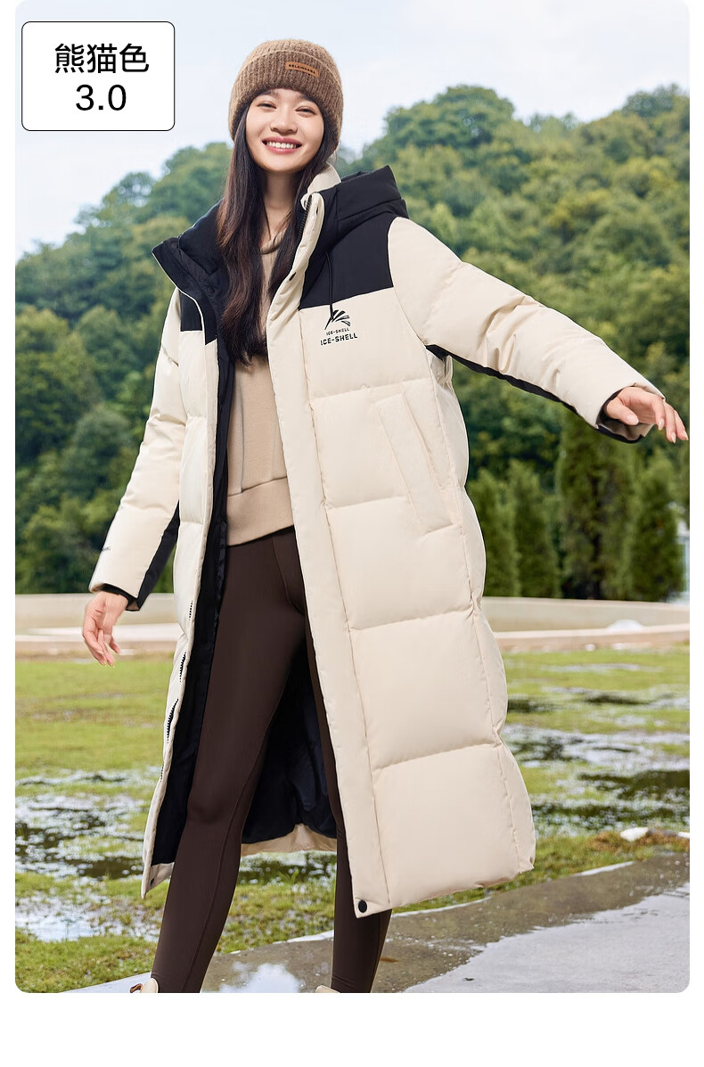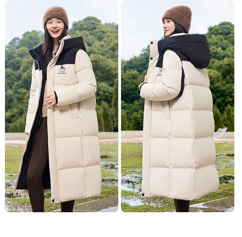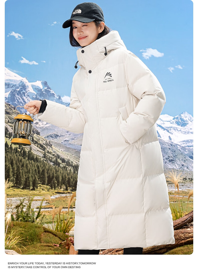 Yaya (YAYA) Wang Yibo's same ice shell down jacket for men and women, long over-the-knee couple's extreme cold thickened warm hooded jacket