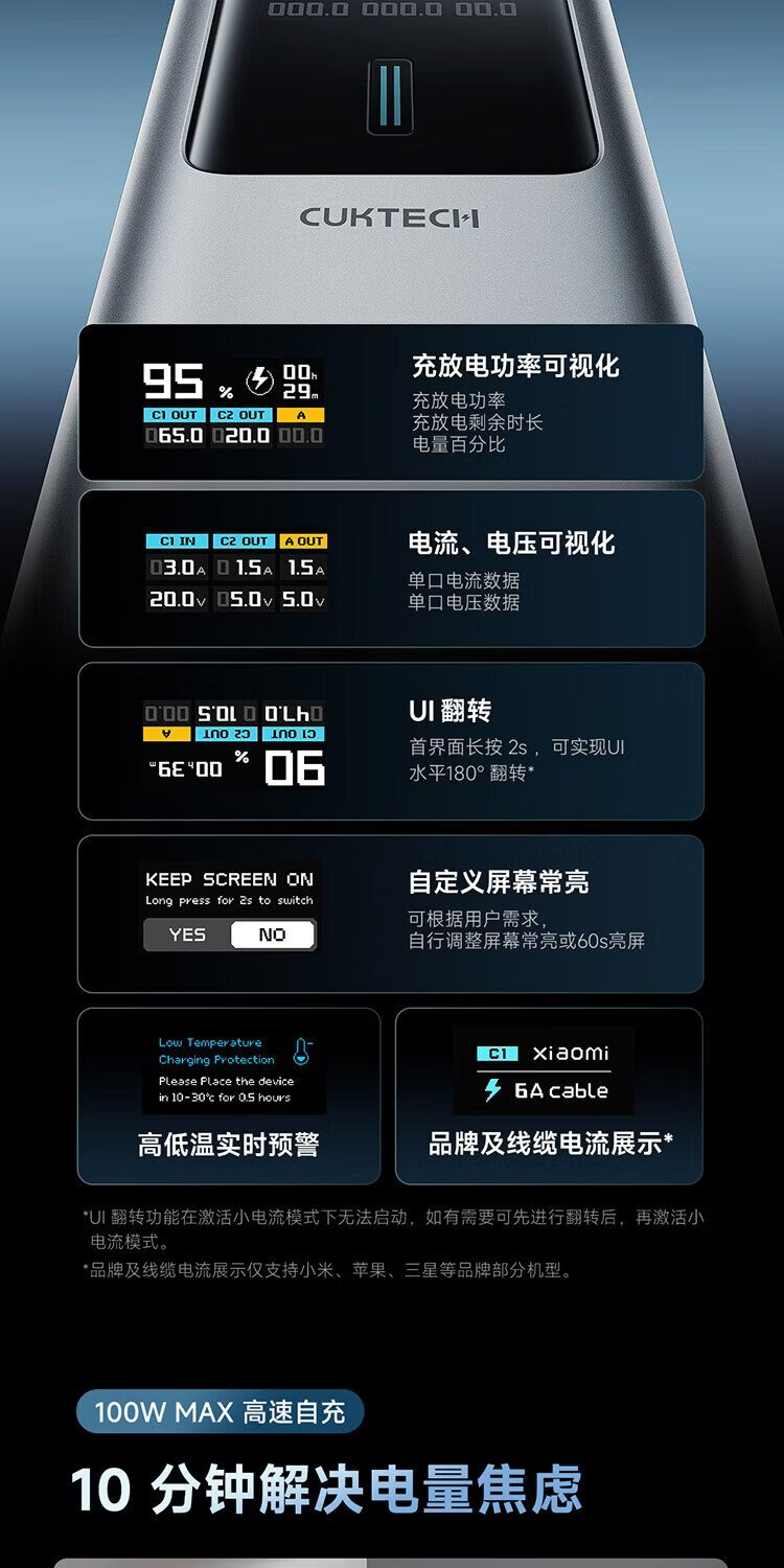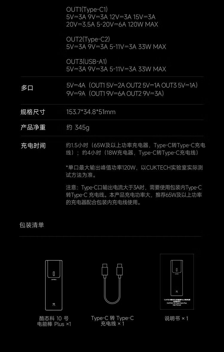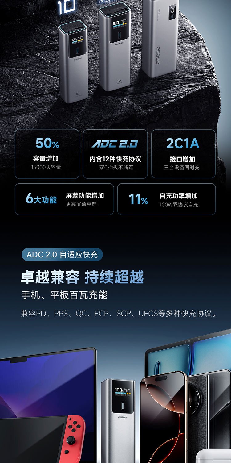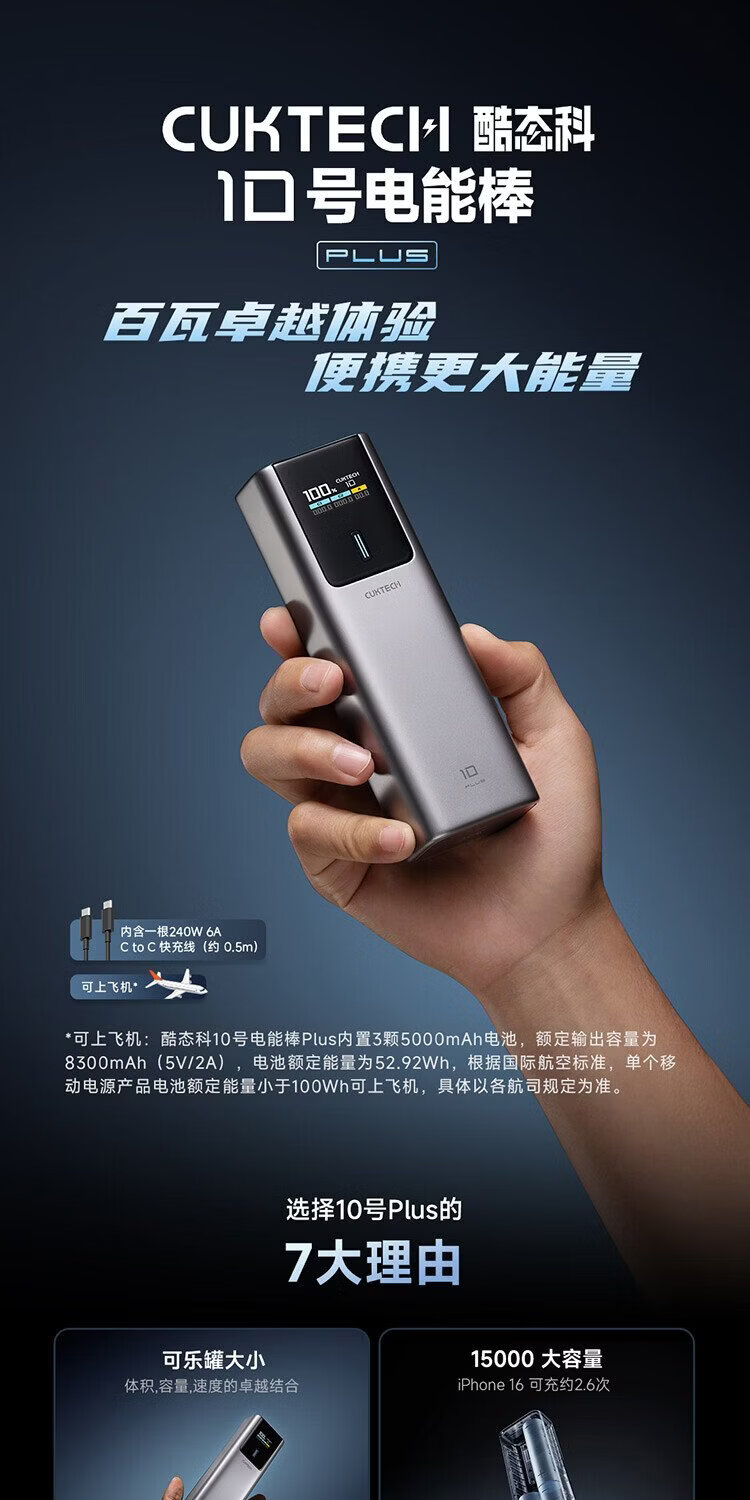 CUKTECH 3C certified for boarding aircraft No. 10 super power stick Plus battery 15000 mAh power bank 120WMAX fast charging suitable for notebooks Xiaomi Apple