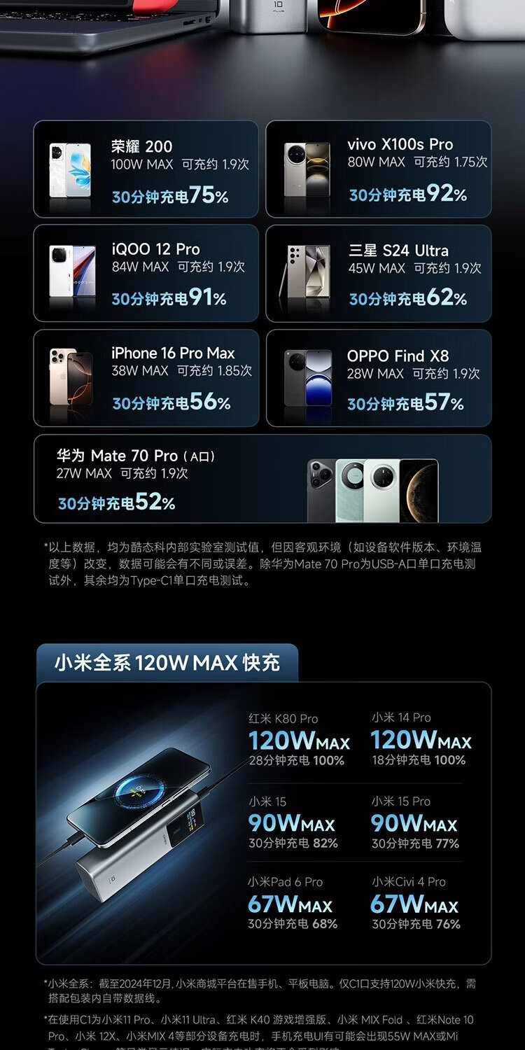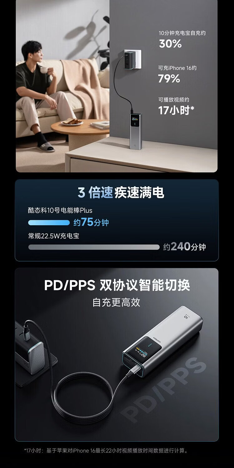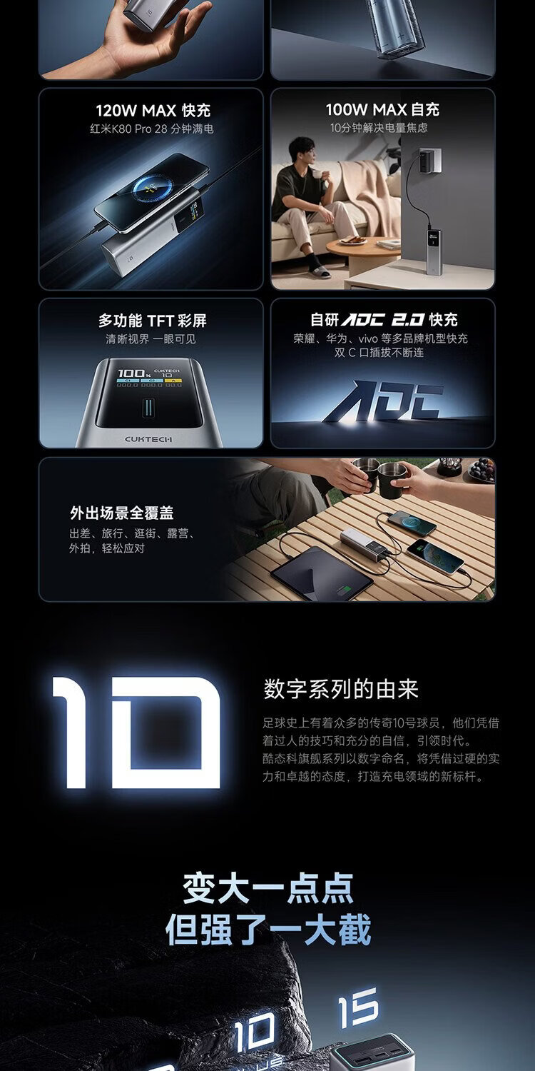 CUKTECH 3C certified for boarding aircraft No. 10 super power stick Plus battery 15000 mAh power bank 120WMAX fast charging suitable for notebooks Xiaomi Apple