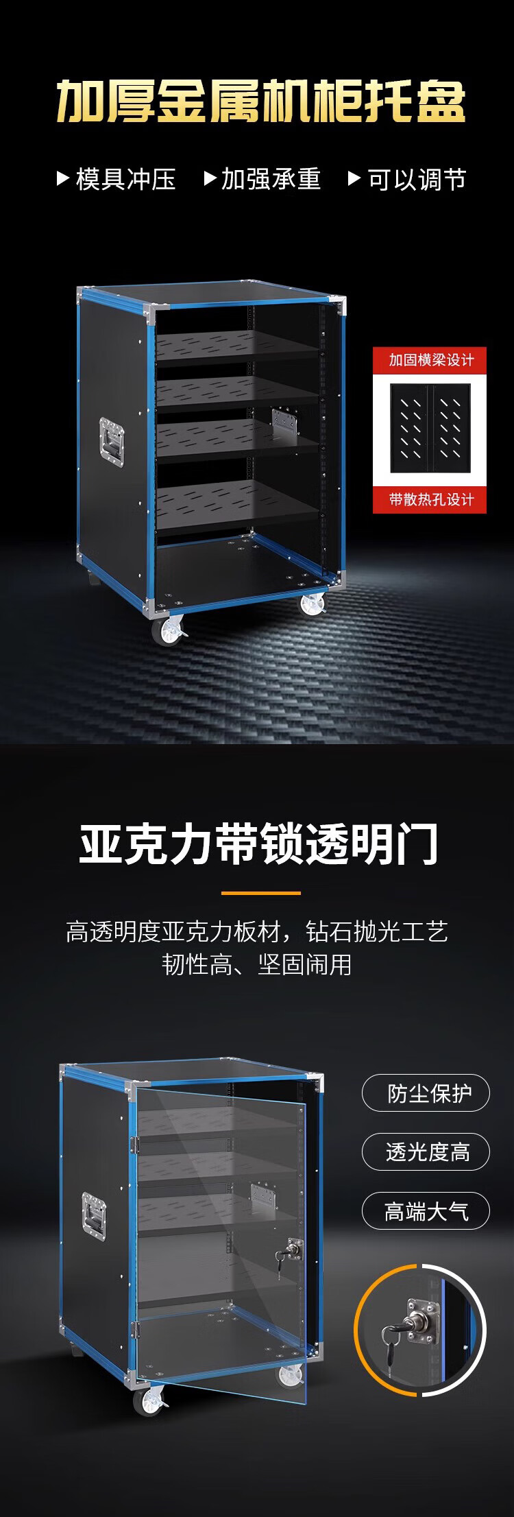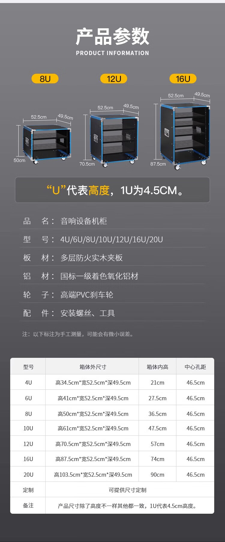 Jingsheng Fengbo amplifier cabinet 20U 525*495*1025mm mobile audio equipment simple chassis performance mixer shelf aluminum alloy solid wood flight case 4 pallets at the front door