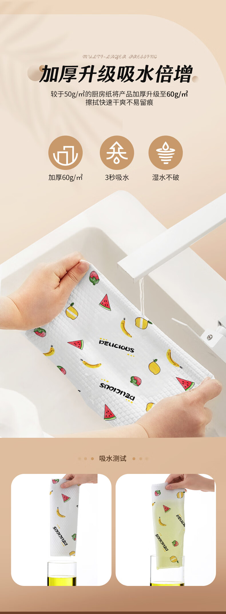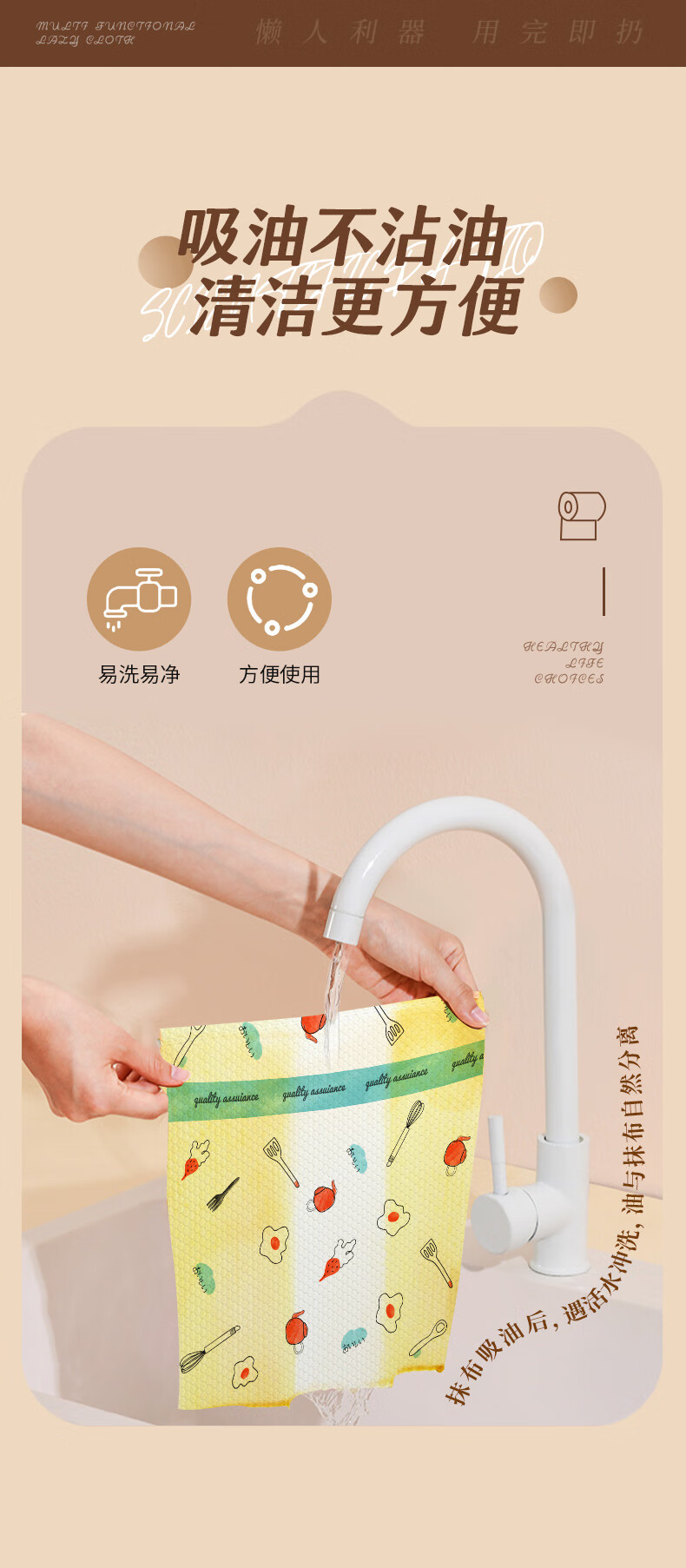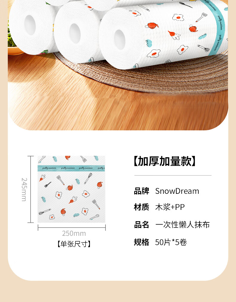 SnowDream Japanese lazy rags thickened 50 pieces * 5 rolls wet and dry kitchen paper oil-absorbing paper disposable rags