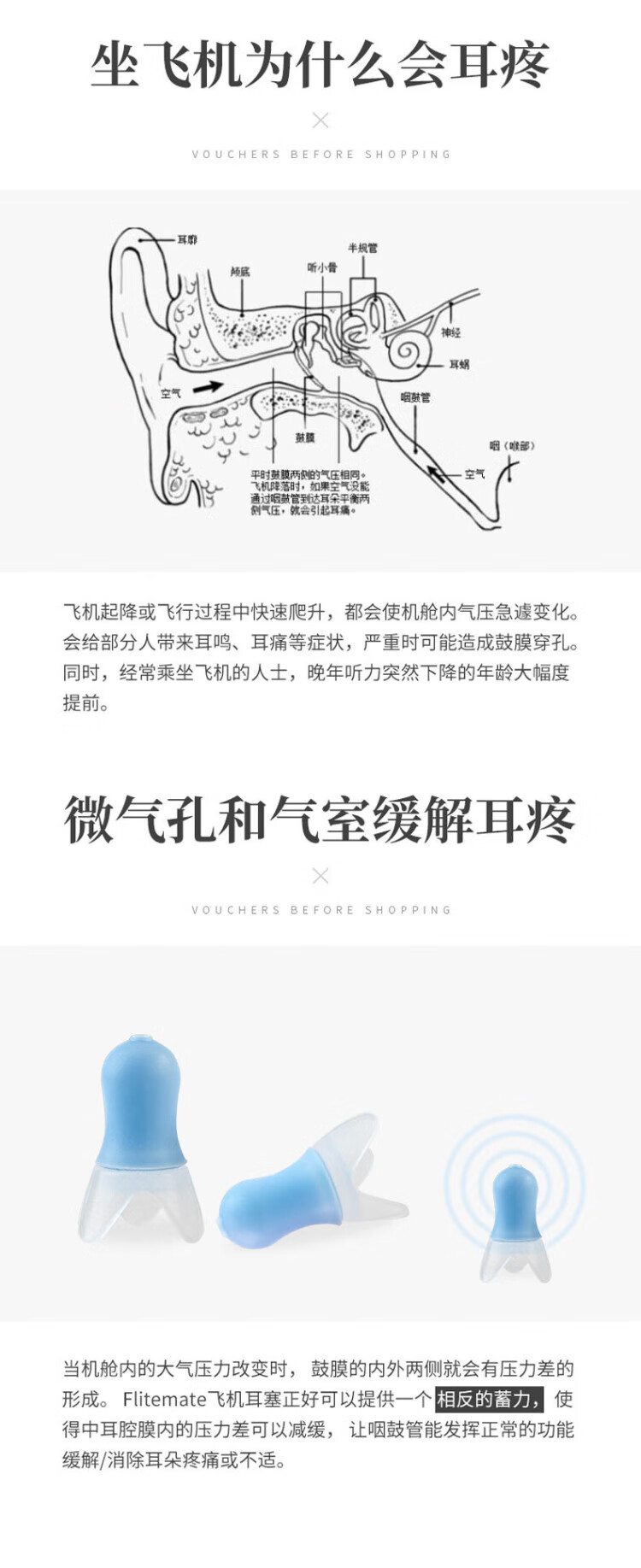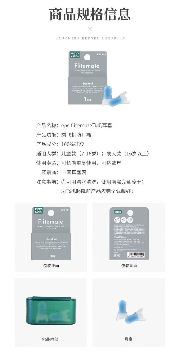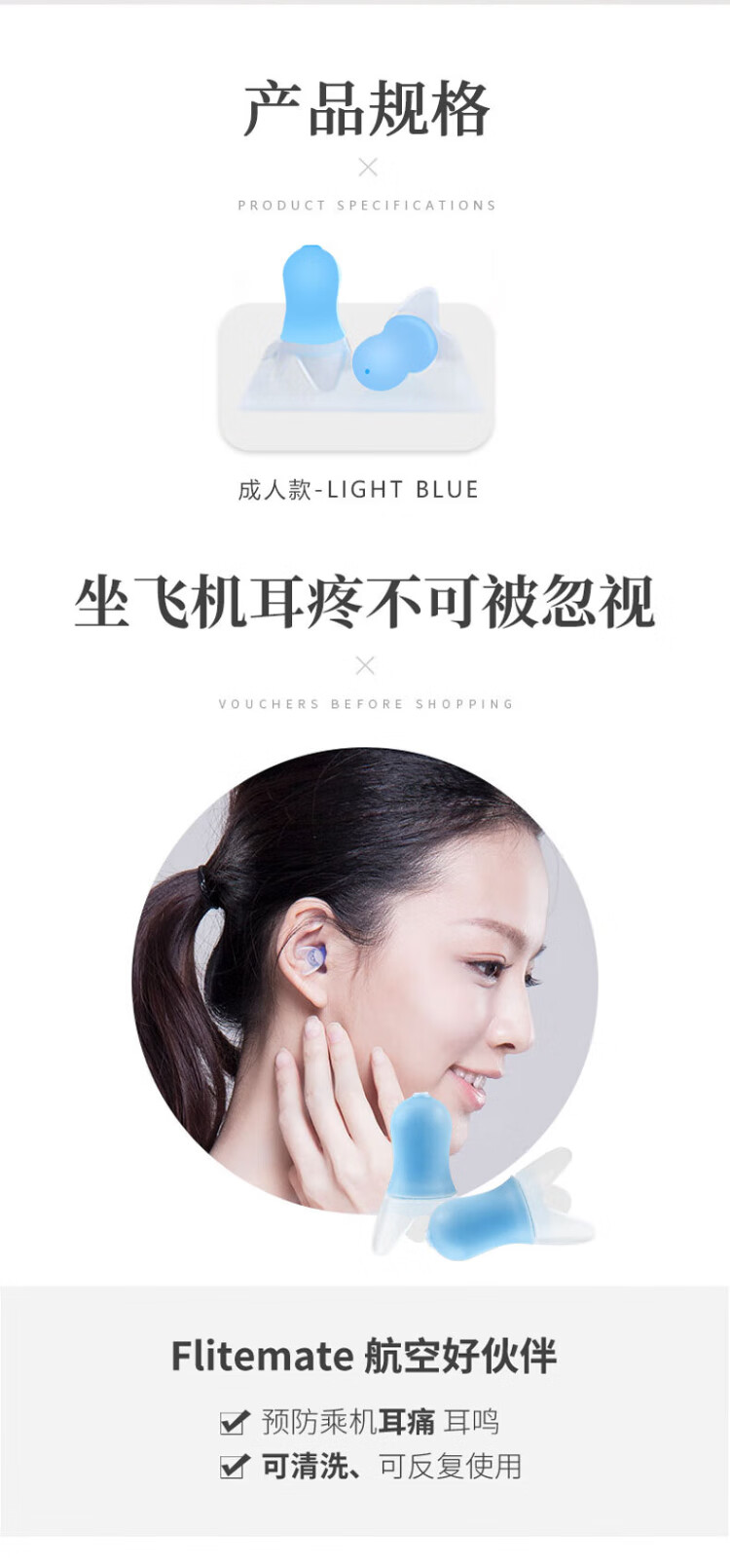 Epc flight decompression earplugs silicone noise reduction and soundproofing for aircraft and high-speed rail adult standard size sea salt blue