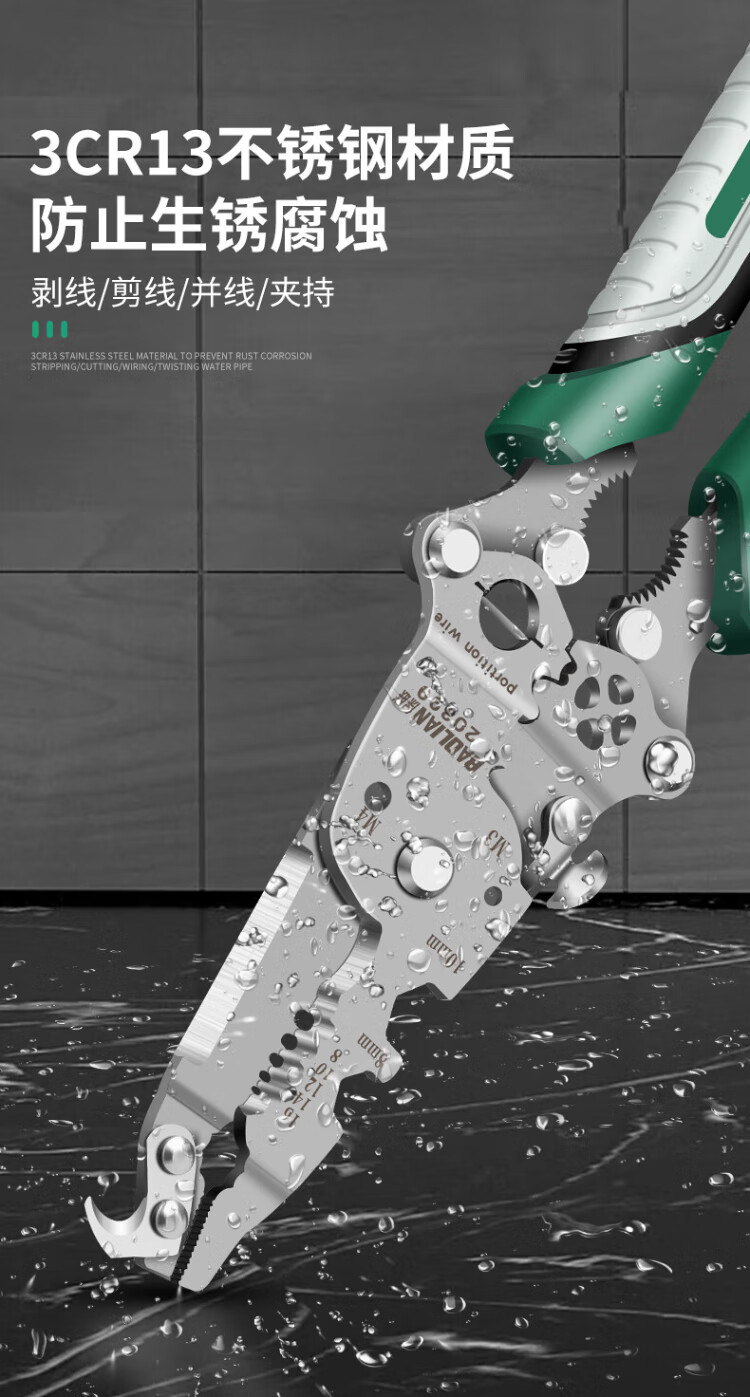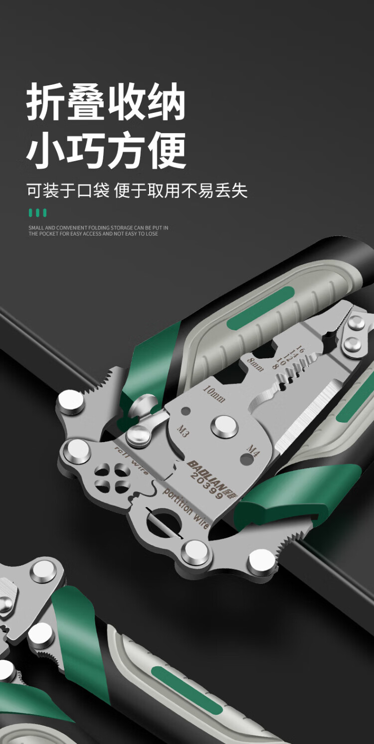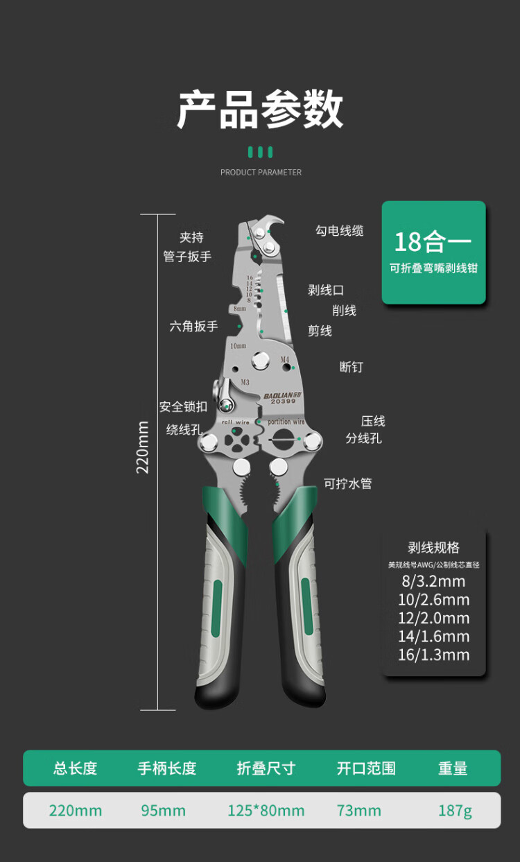 Baolian 18-in-1 wire stripping pliers, multi-functional electrician special pliers, wire splitting, stripping, wire removal, wire crimping, wire winding, wire cutting pliers