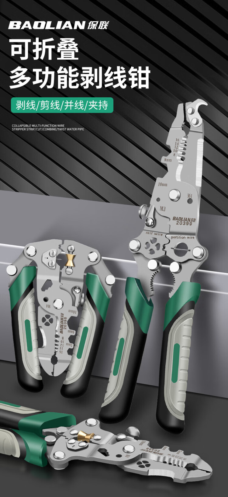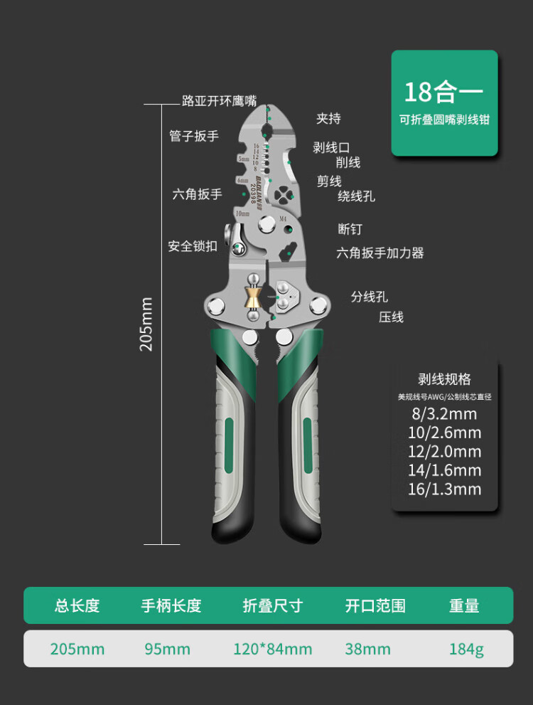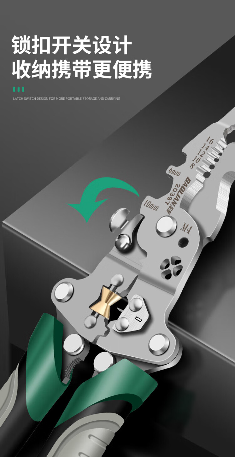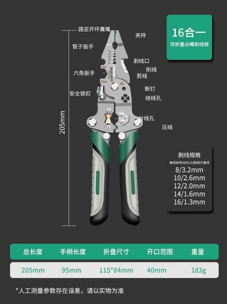 Baolian 18-in-1 wire stripping pliers, multi-functional electrician special pliers, wire splitting, stripping, wire removal, wire crimping, wire winding, wire cutting pliers
