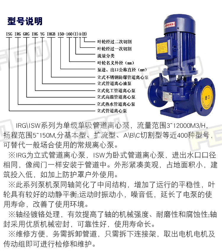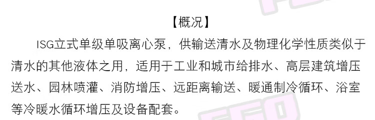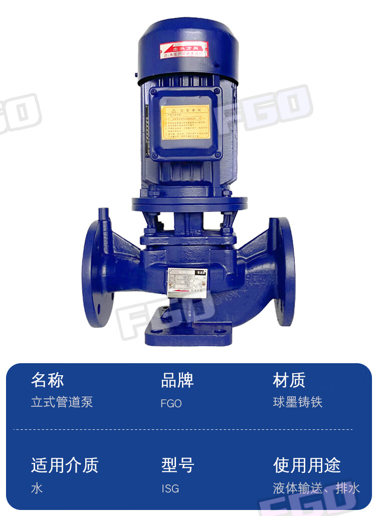 FGO vertical pipeline pump ISG32-200A/4.5m3/h/lift 44 meters 2.2kw
