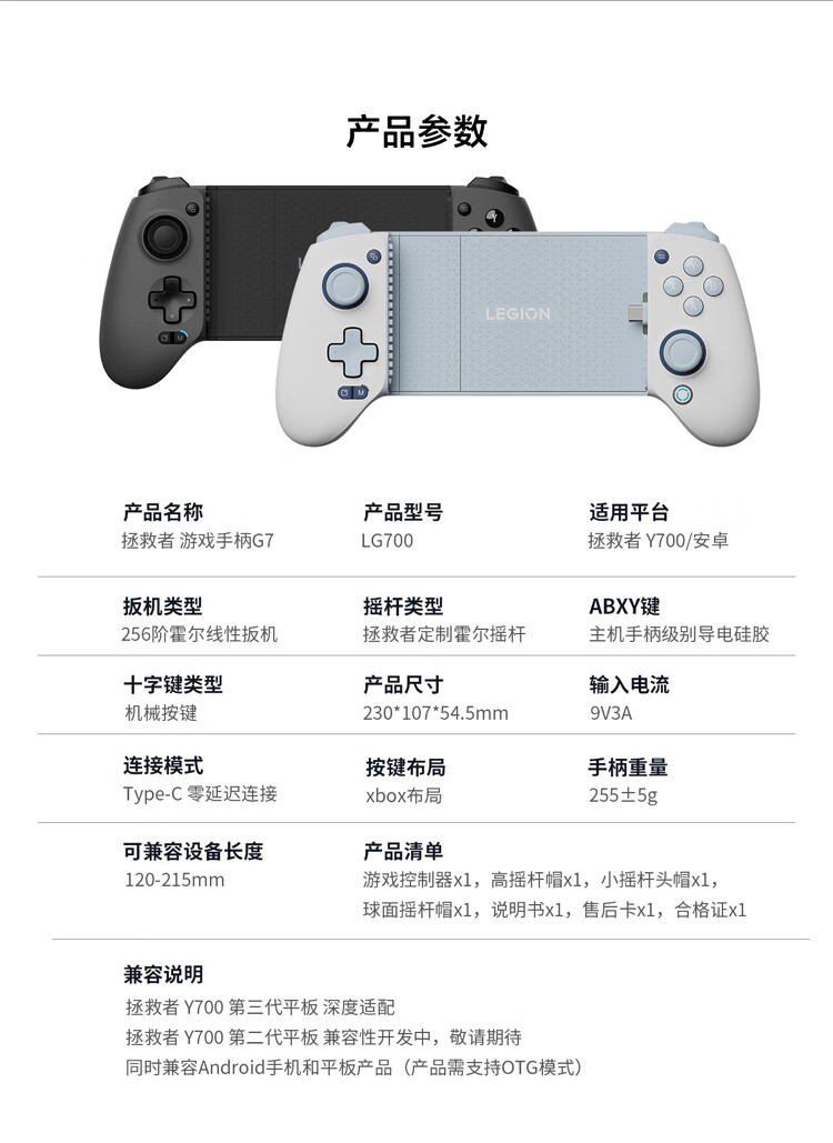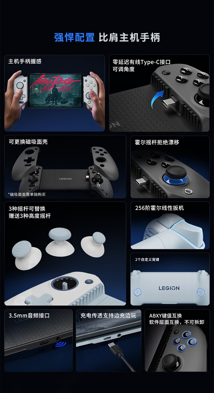 99% new Lenovo Savior Y700 game controller G7 wired direct connection adjustable angle zero delay hall rocker replaceable height linear trigger black suitable for Y700 third generation