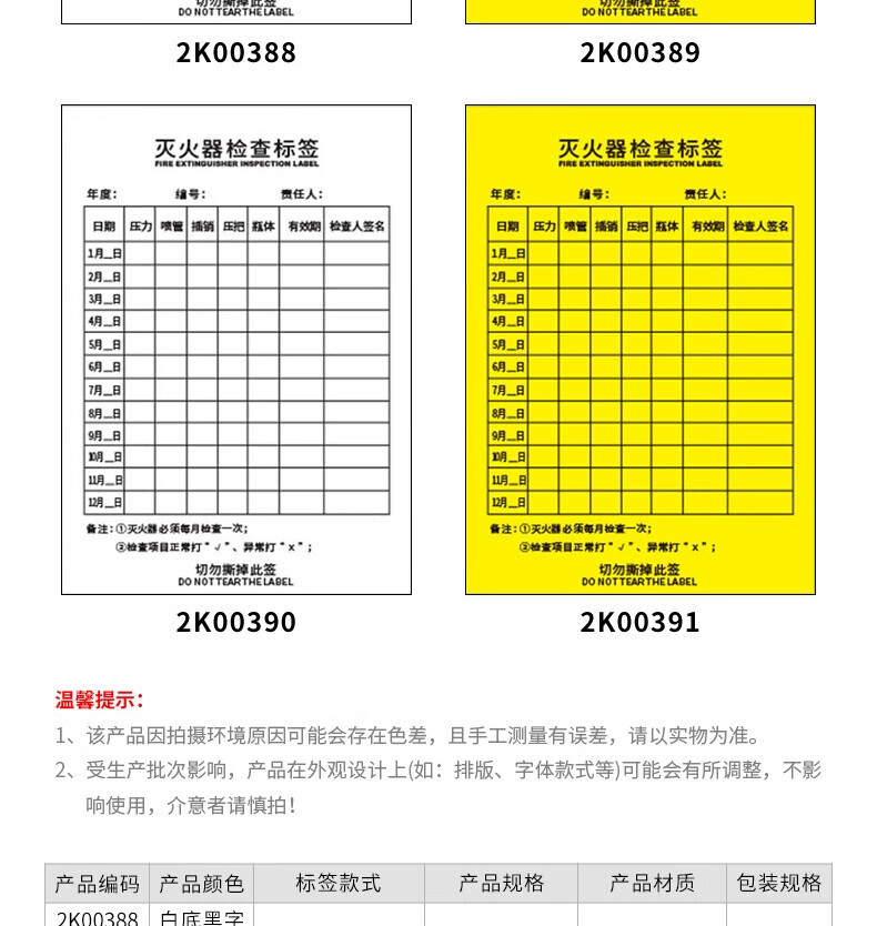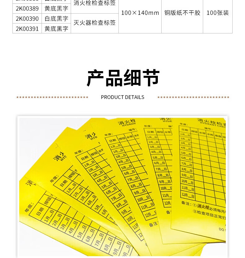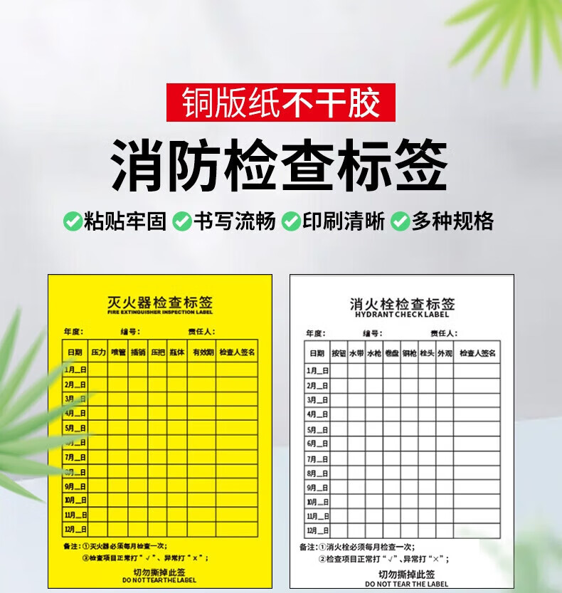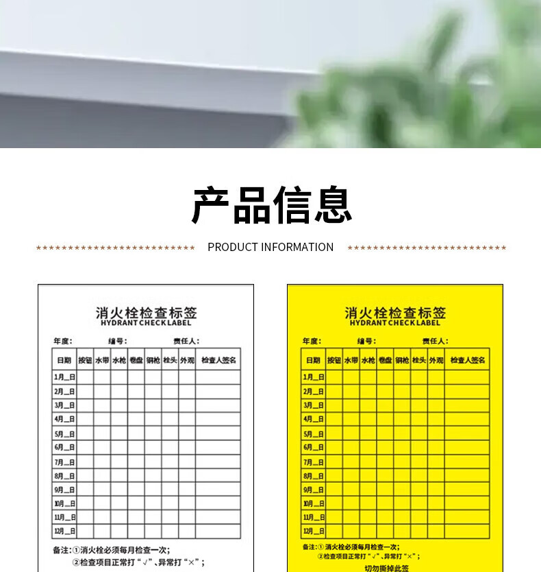 Masifu Fire Hydrant Inspection Form Record Card Monthly Regular Inspection Record Form Self-Adhesive Sticker 14x10cm (100 sheets/pack) Yellow - Fire Hydrant Inspection Form