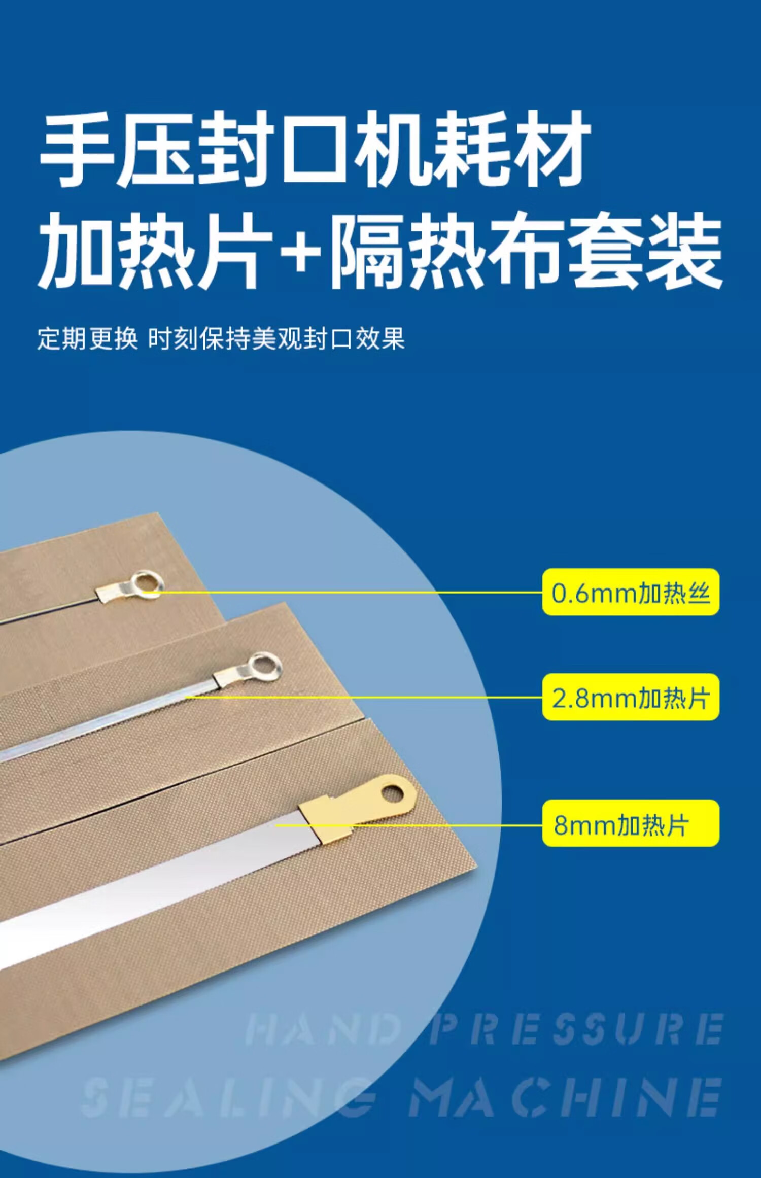 Blueberry blueberry hand pressure sealing machine with six sets of heating wire consumables and film cutting set in a box FR-400 heating wire 0.6mm