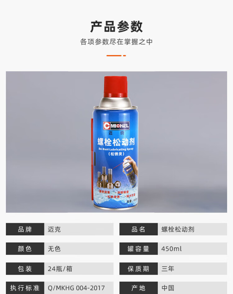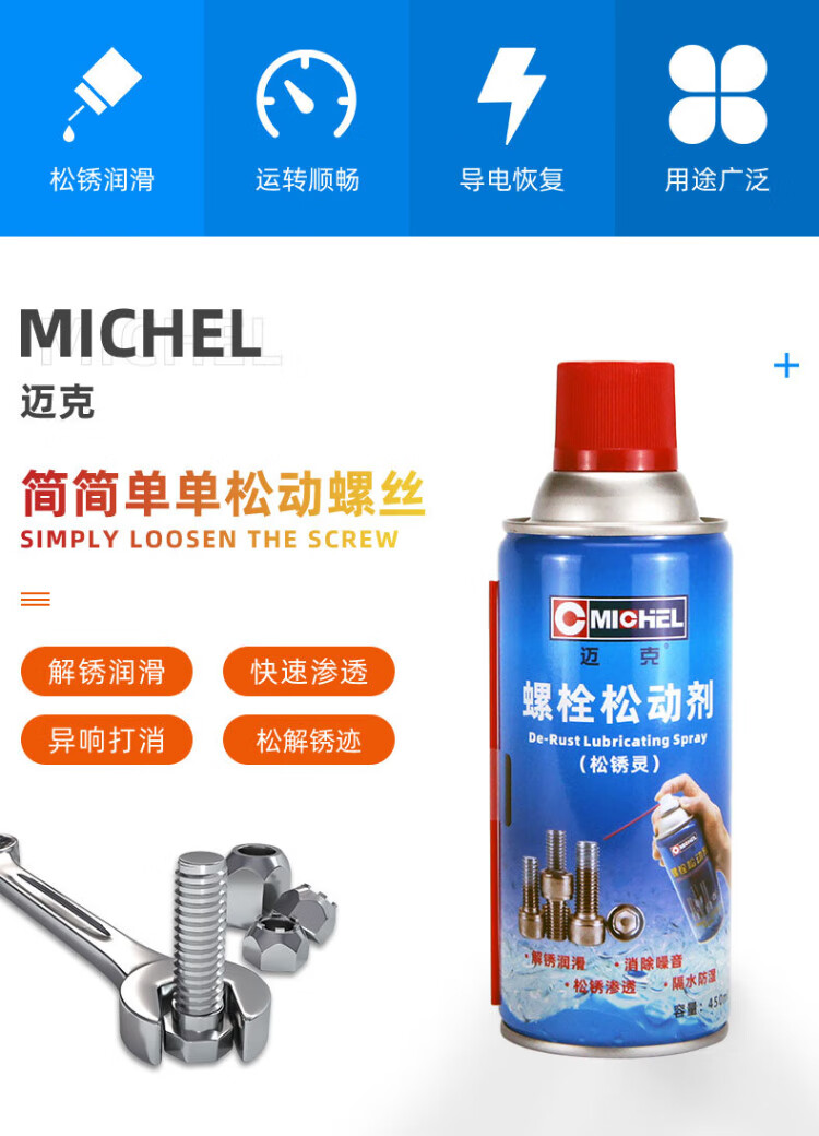 Mike bolt loosening agent, rust remover, metal mechanical door and window hinge multi-purpose rust lubrication and anti-rust agent 450ml