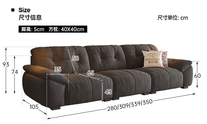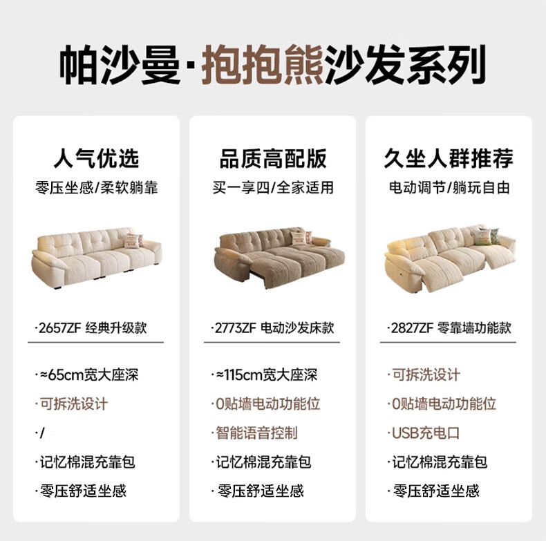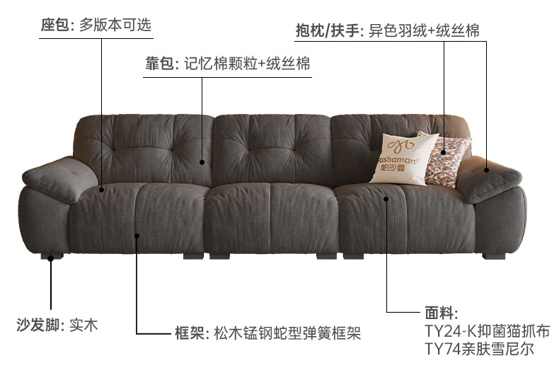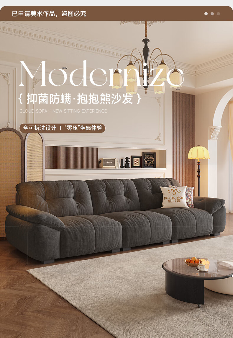 Pashaman domestic subsidized fabric sofa living room removable and washable cat scratch cloth cream cloud sofa luxury 2.8 meters 2657ZF