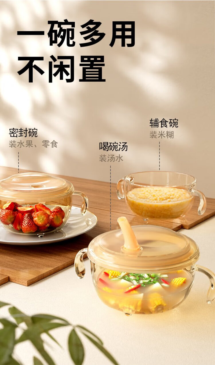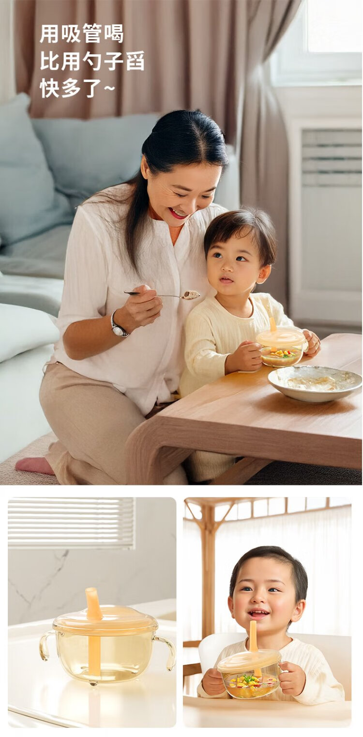 COOKSS baby food bowl, newborn water bowl, baby soup, straw bowl, rice flour and rice cereal water bowl, children's tableware