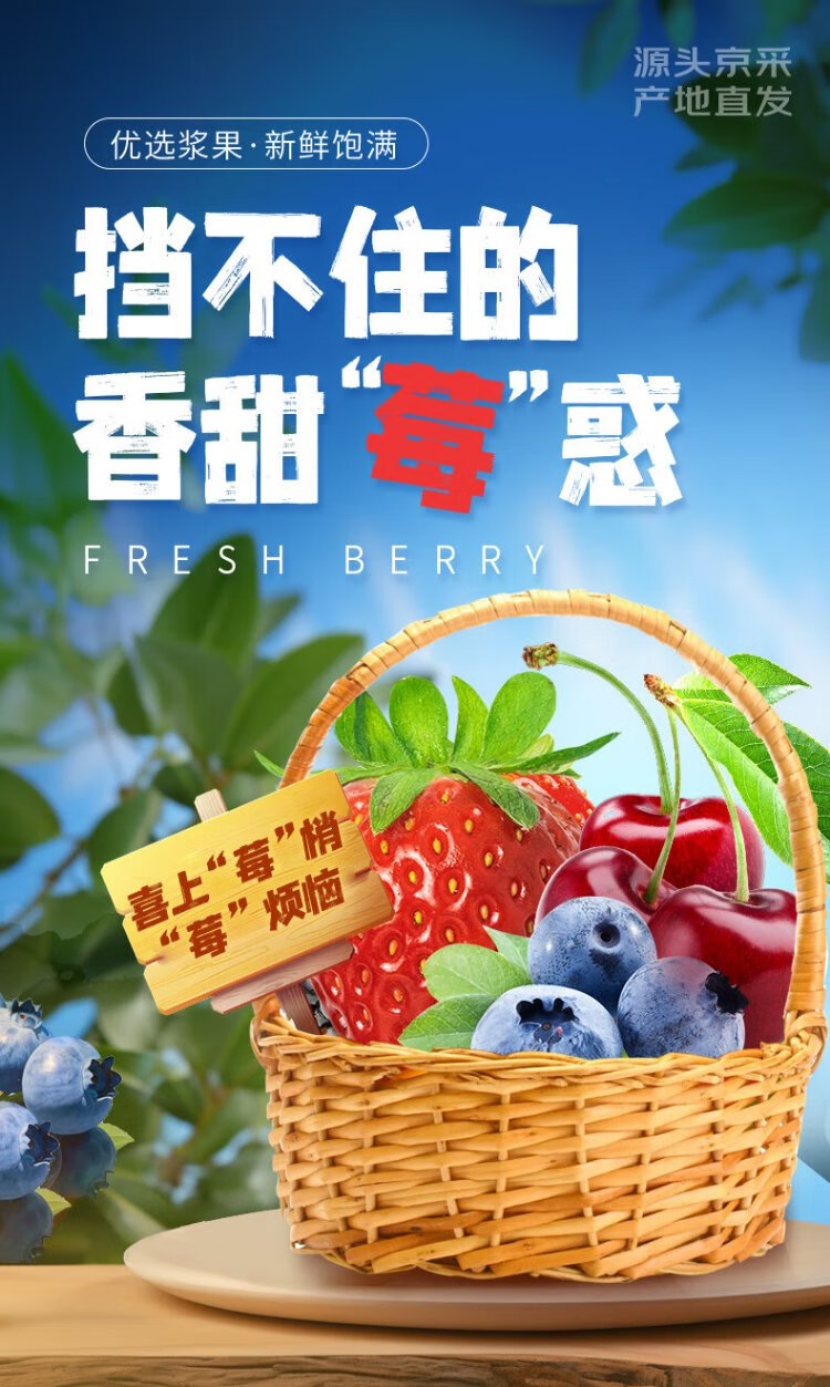Jingxiansheng Yunnan blueberries 18mm + 2 boxes + Dandong strawberries 1 jin + Chilean cherries 3J grade 2 jins fresh fruit