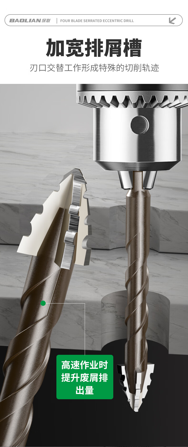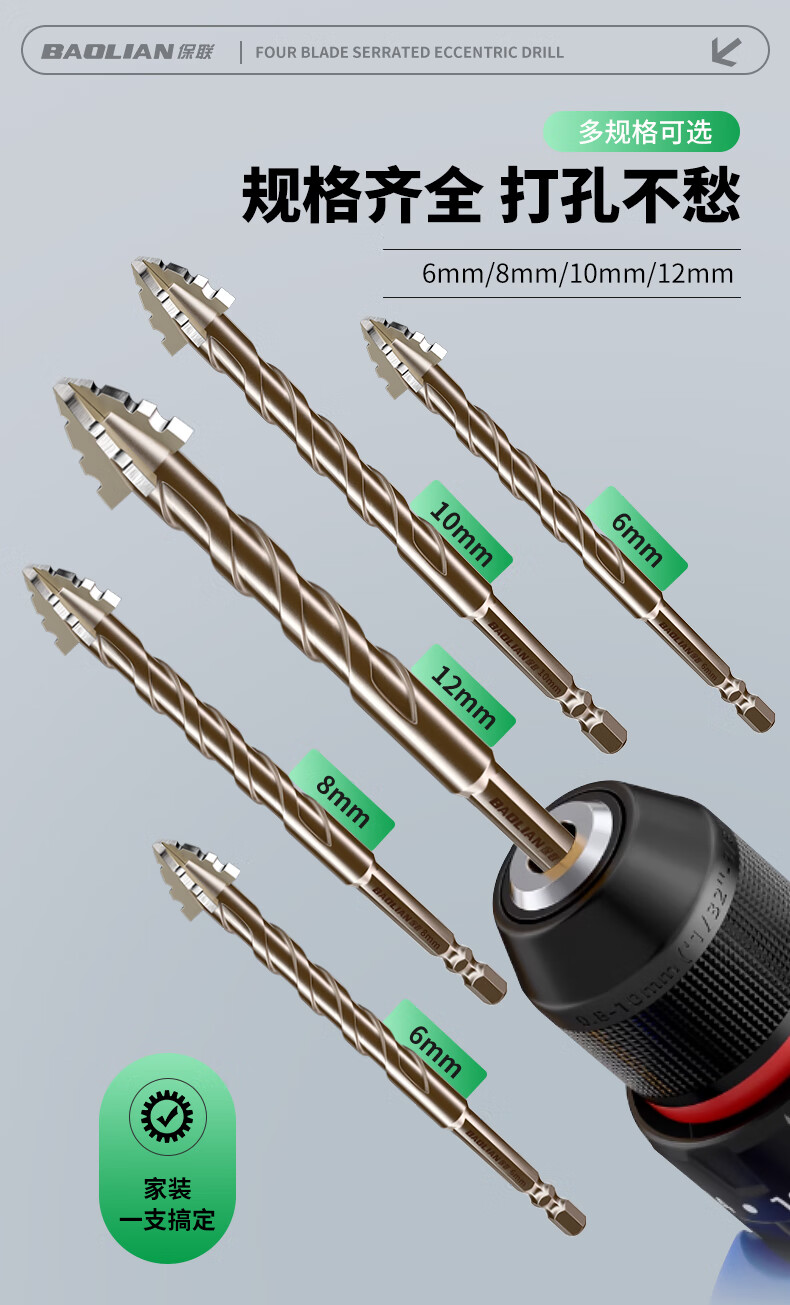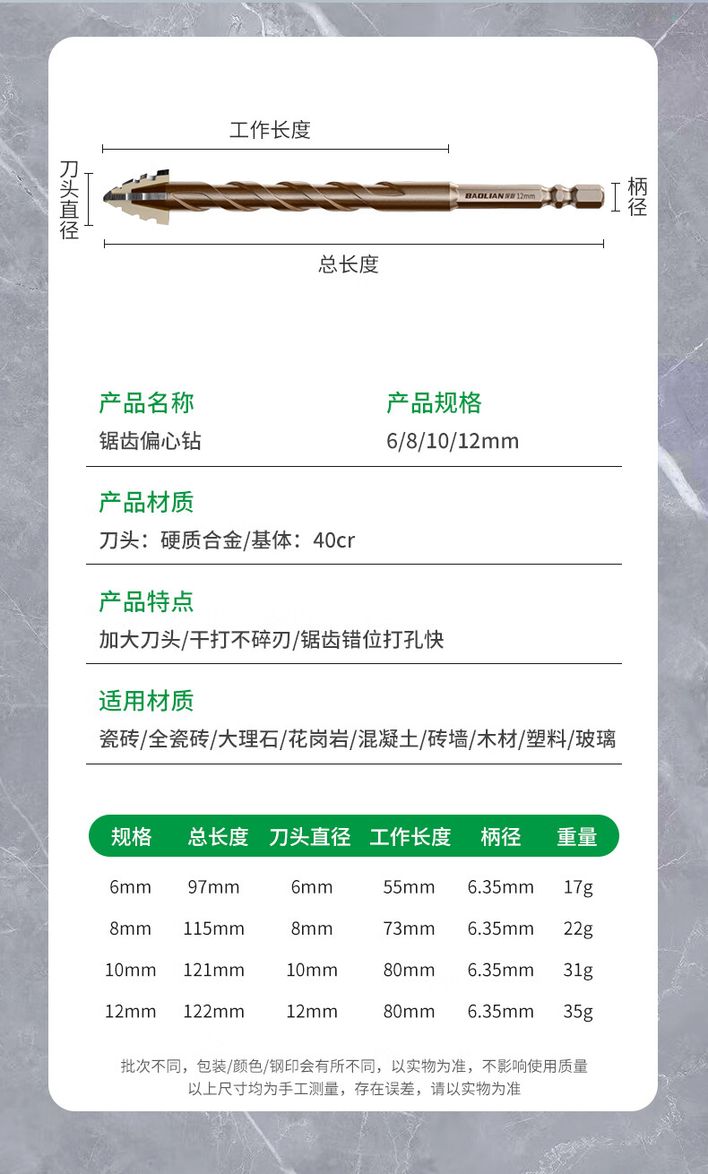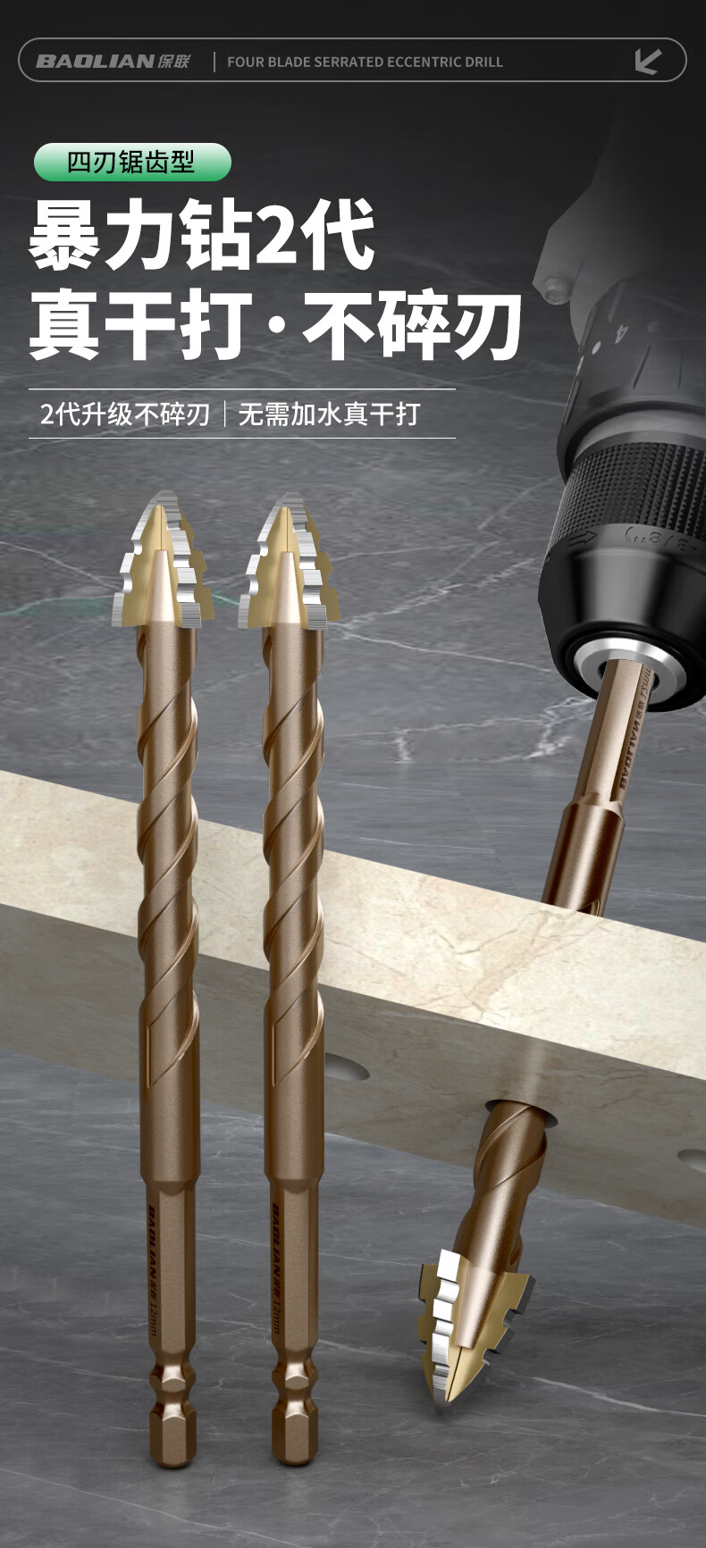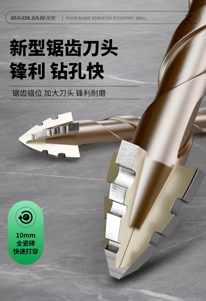 Baolian four-edged serrated eccentric dry drilling full ceramic tile ceramic glass marble concrete stainless steel drill bit
