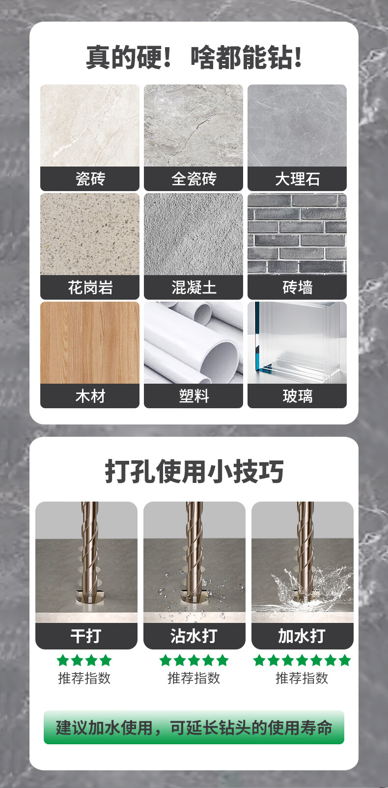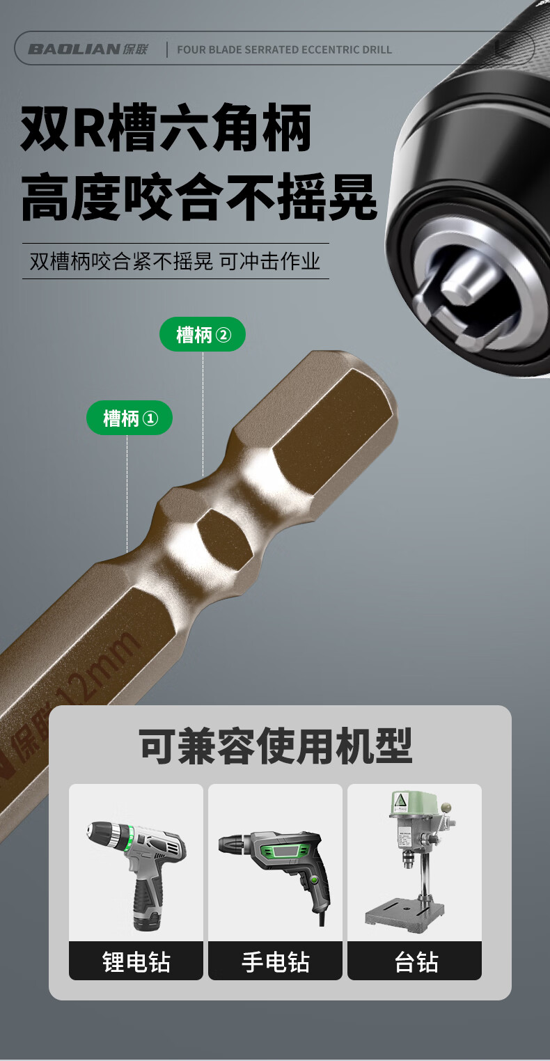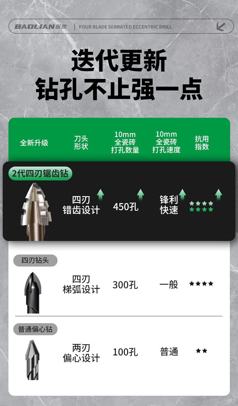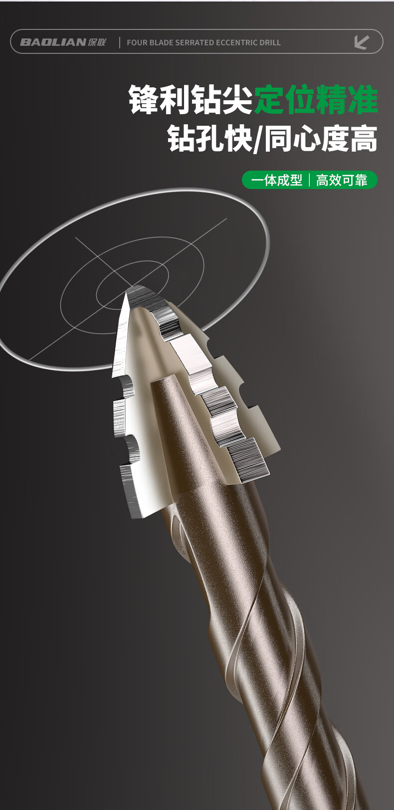 Baolian four-edged serrated eccentric dry drilling full ceramic tile ceramic glass marble concrete stainless steel drill bit